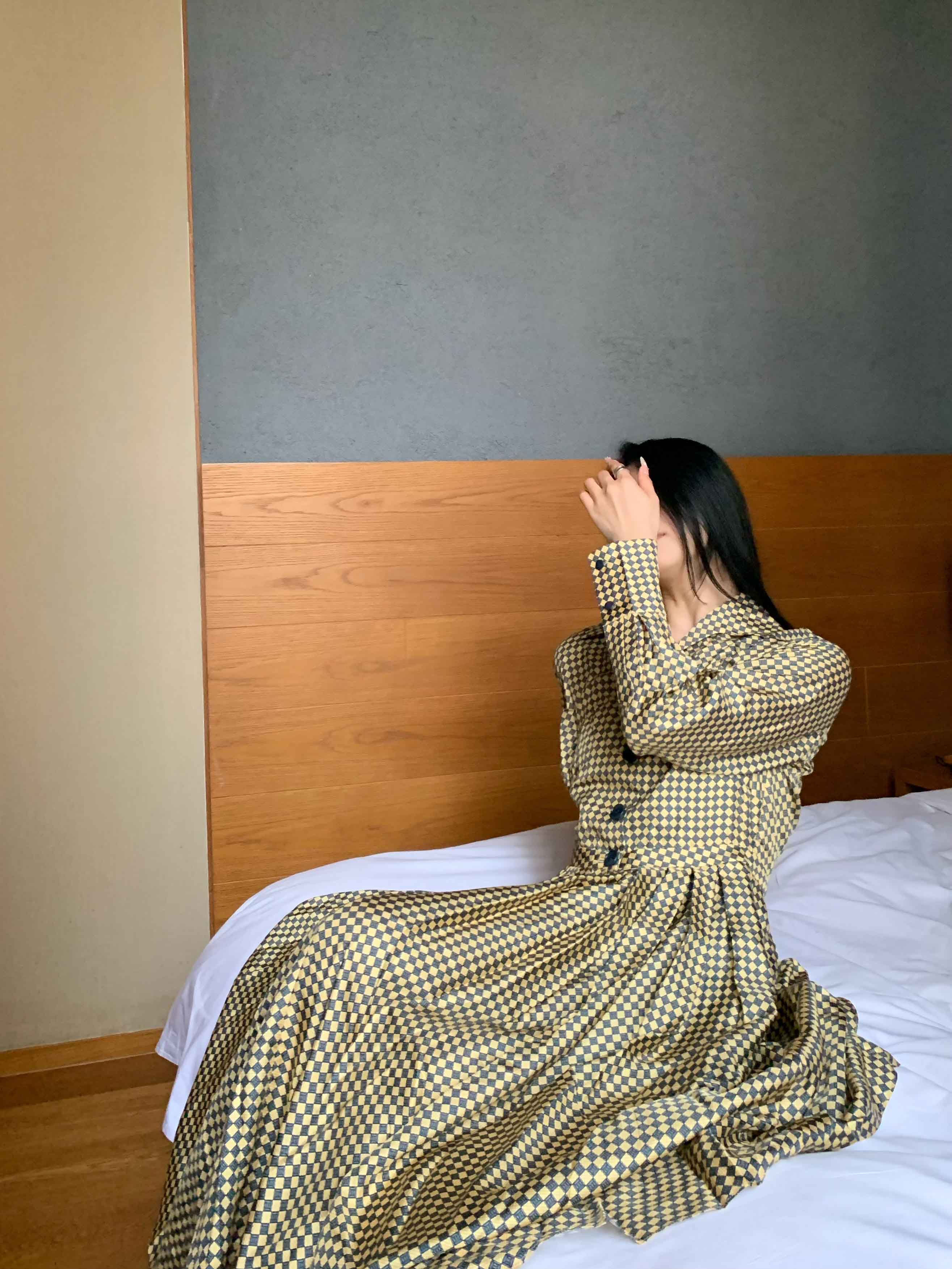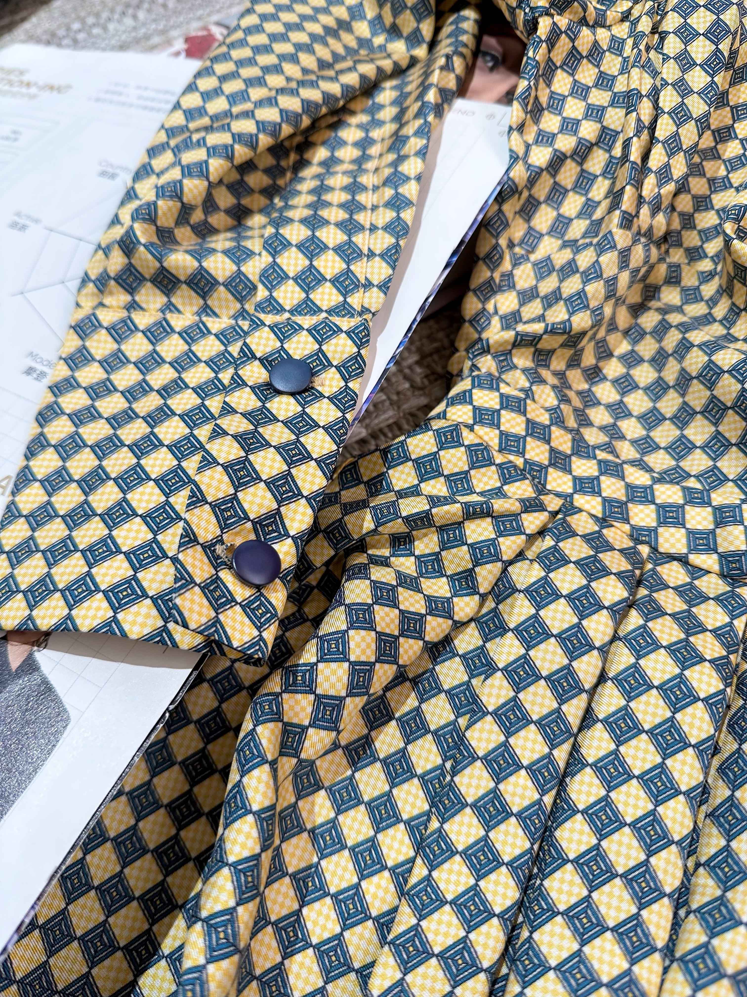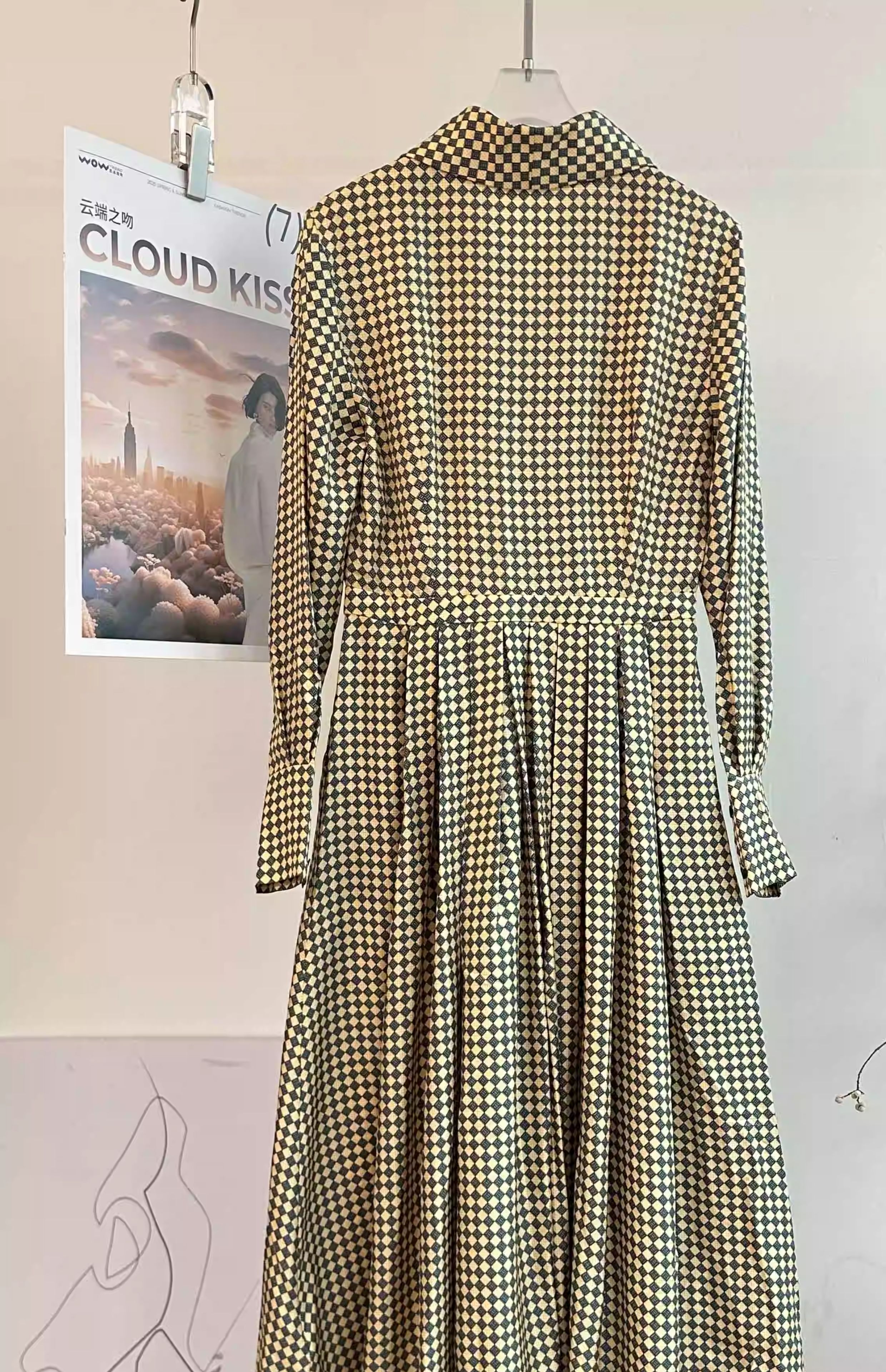 顺丰包邮洛诗琳12728春季新款真丝格纹印花收腰A字连衣裙1065