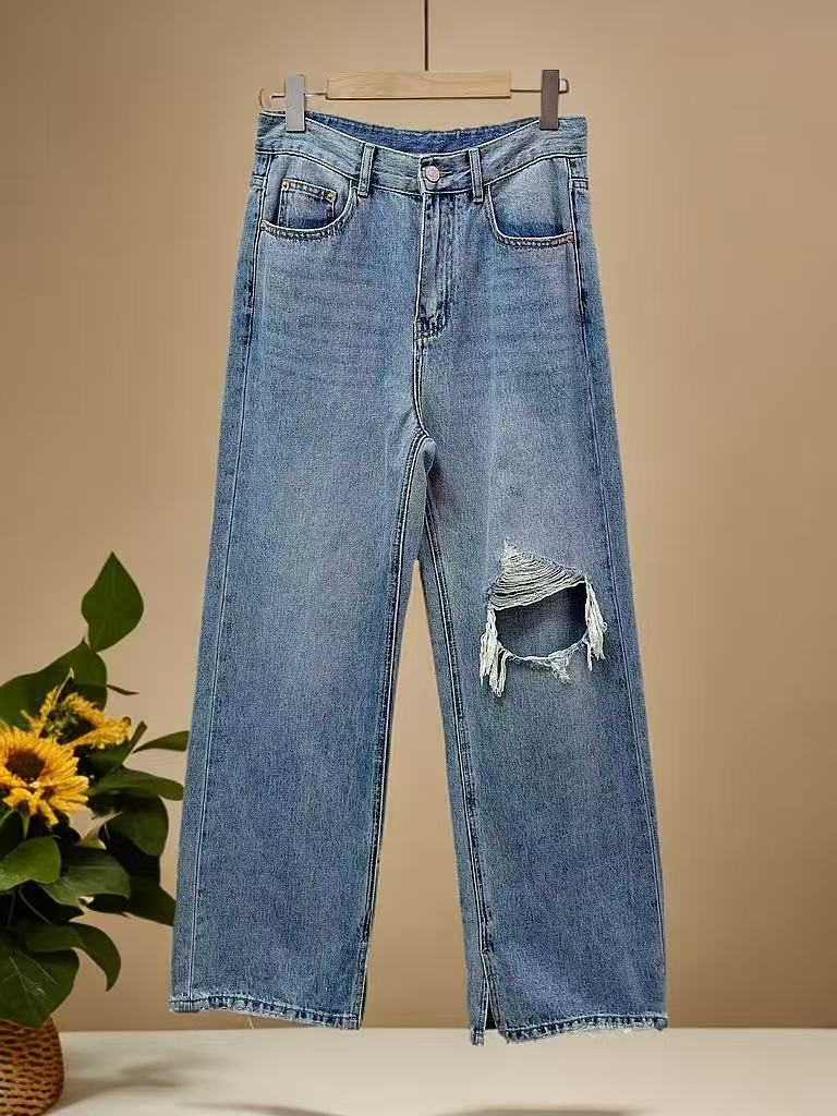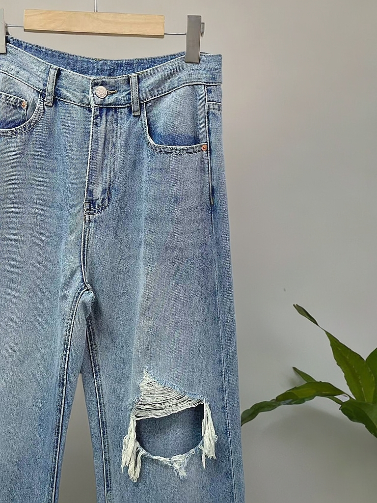 年中清仓-→-98%棉破洞品质牛仔直筒拖地裤-喜出
