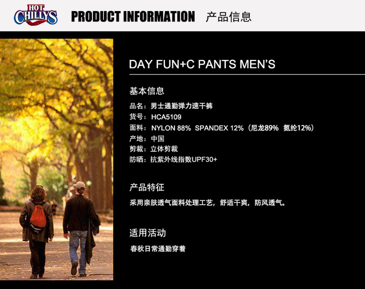 HOTCHILLYS红辣椒2.5折特惠 男士城市户外通勤速干裤防风裤外裤 HCA5109