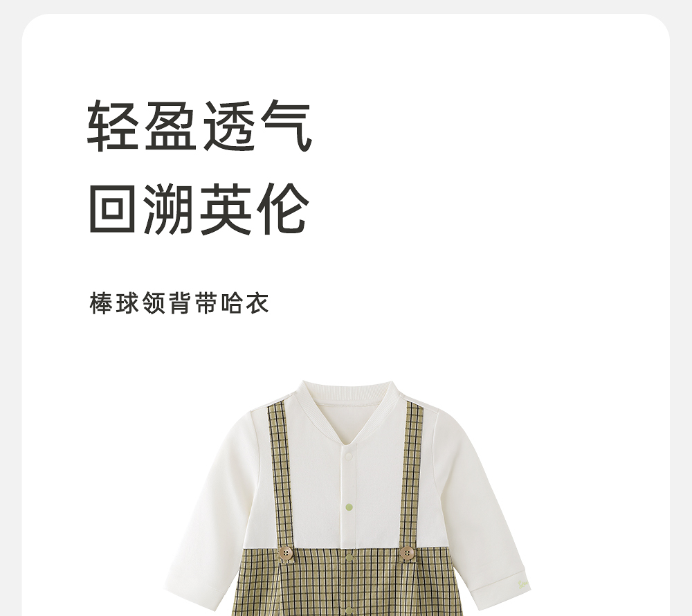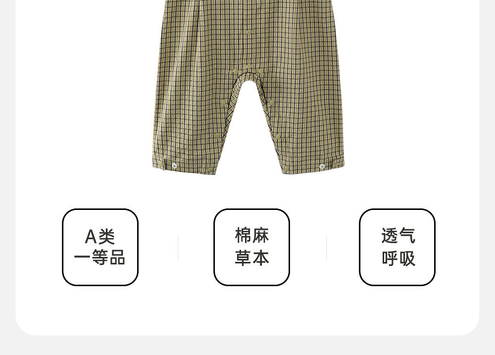 【商场同款】英氏婴儿衣服春夏短袖棉麻透气男宝连体衣宝宝爬服