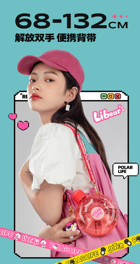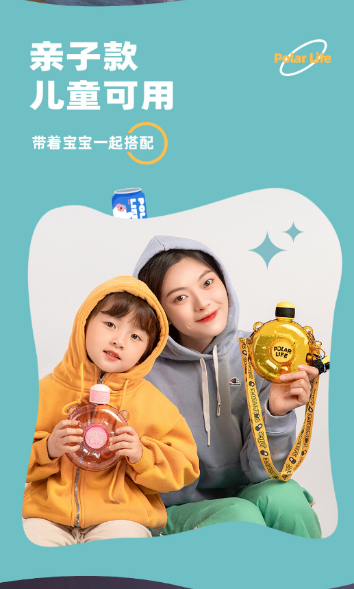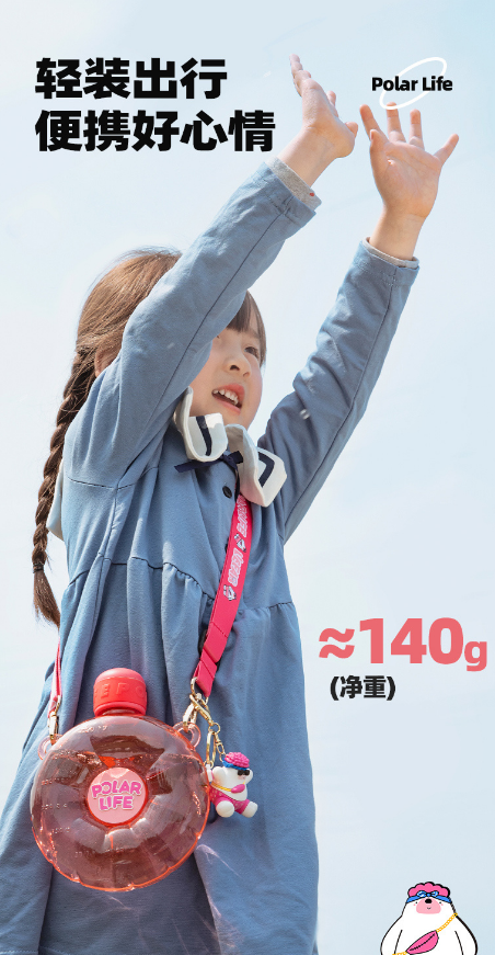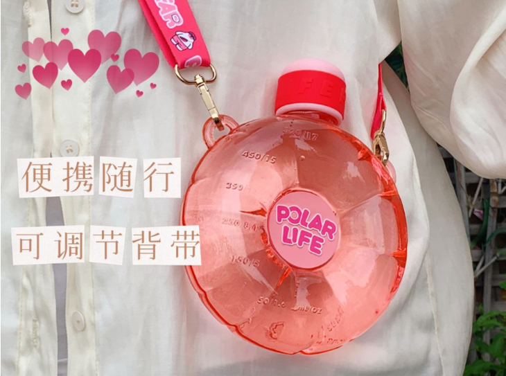 除了每日做好防晒、防蚊工作之外,多喝水也是非常有必要的,水杯不好看,怎么能好好喝水呢?575ml ,满足你的喝水需求,也就是每天只需要打一次水,就可以保你一天喝够8杯水的量,甚至更多,出去游玩一家人都够喝。平时户外运动、旅游、健身、办公等多场景使用,带便携背带,想背去哪就背去哪。1,575ml大容量,一杯能量加满,畅快直饮好味道;2,进口母婴Tritan,健康安全无异味,大人小孩放心用;杯身有精确的水量刻度,对于在减脂、健身的小伙伴来说可以更加科学饮水。这款圈圈水杯采用了食品级的tritan材质,tritan材质多用于制造水杯、水壶以及婴儿的奶瓶。tritan杯身坚固耐摔,无有害物质析出,背身可承受骤冷骤热。不仅如此,水杯还具有非常棒的抗摔性能,日常掉在地上、带去户外也不怕磕磕碰碰。同时杯子又耐高温又受低温,无异味也不变形、破裂。并且因为tritan材质的原因,杯身的透明度非常高,杯子INS风满满。平时夏天泡点奶茶、柠檬水、水果茶、花茶都可以,美观大方又好看。 在细节方面,水杯严密的防漏设计,食品级硅胶密封圈,平时放在背包里也不用担心漏水。可爱造型,让你爱上喝水。拒绝一成不变,跟传统造型再见。