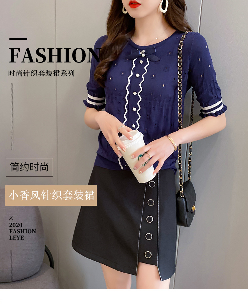 XC-9928网红新款 韩版小个子时尚休闲冰丝针织连衣裙子套装