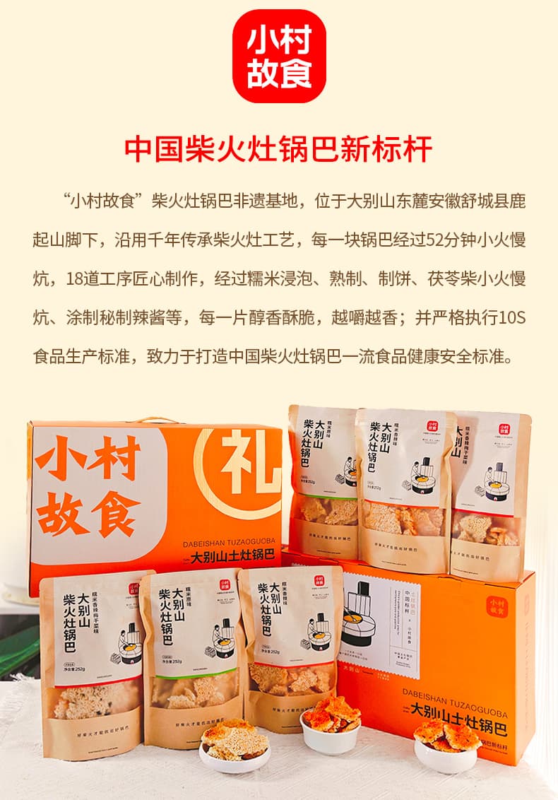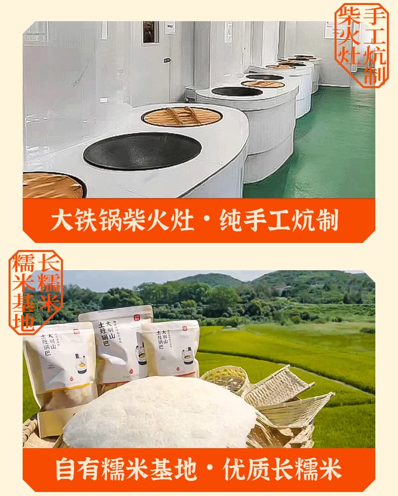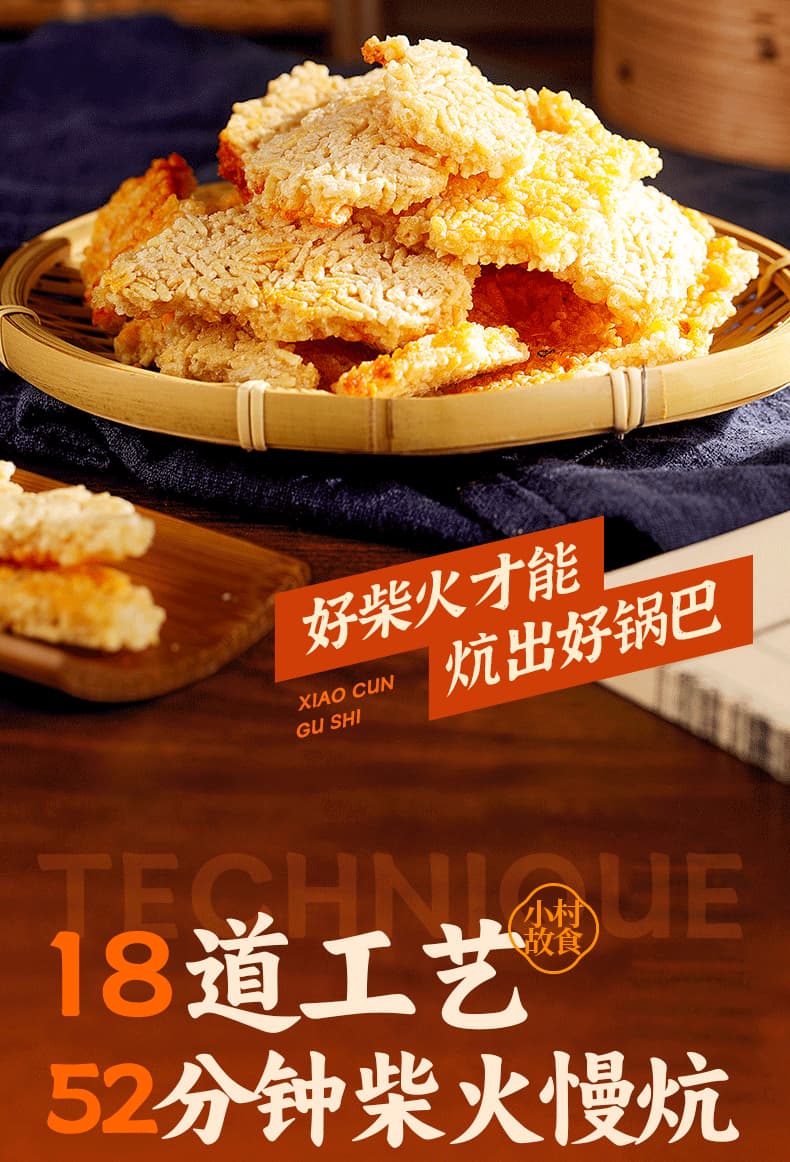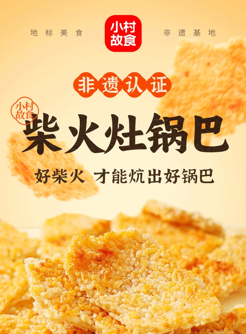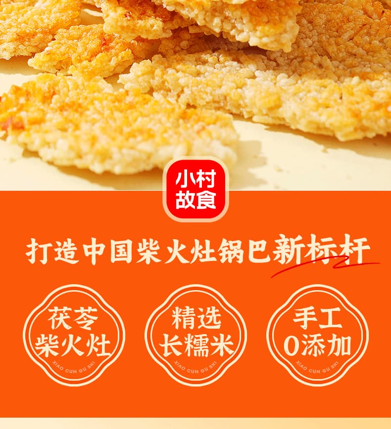 小村故食 柴火灶锅巴 精选优质长糯米 手工0添加 配料干净 香味浓郁 茯苓柴火灶 文火慢炕