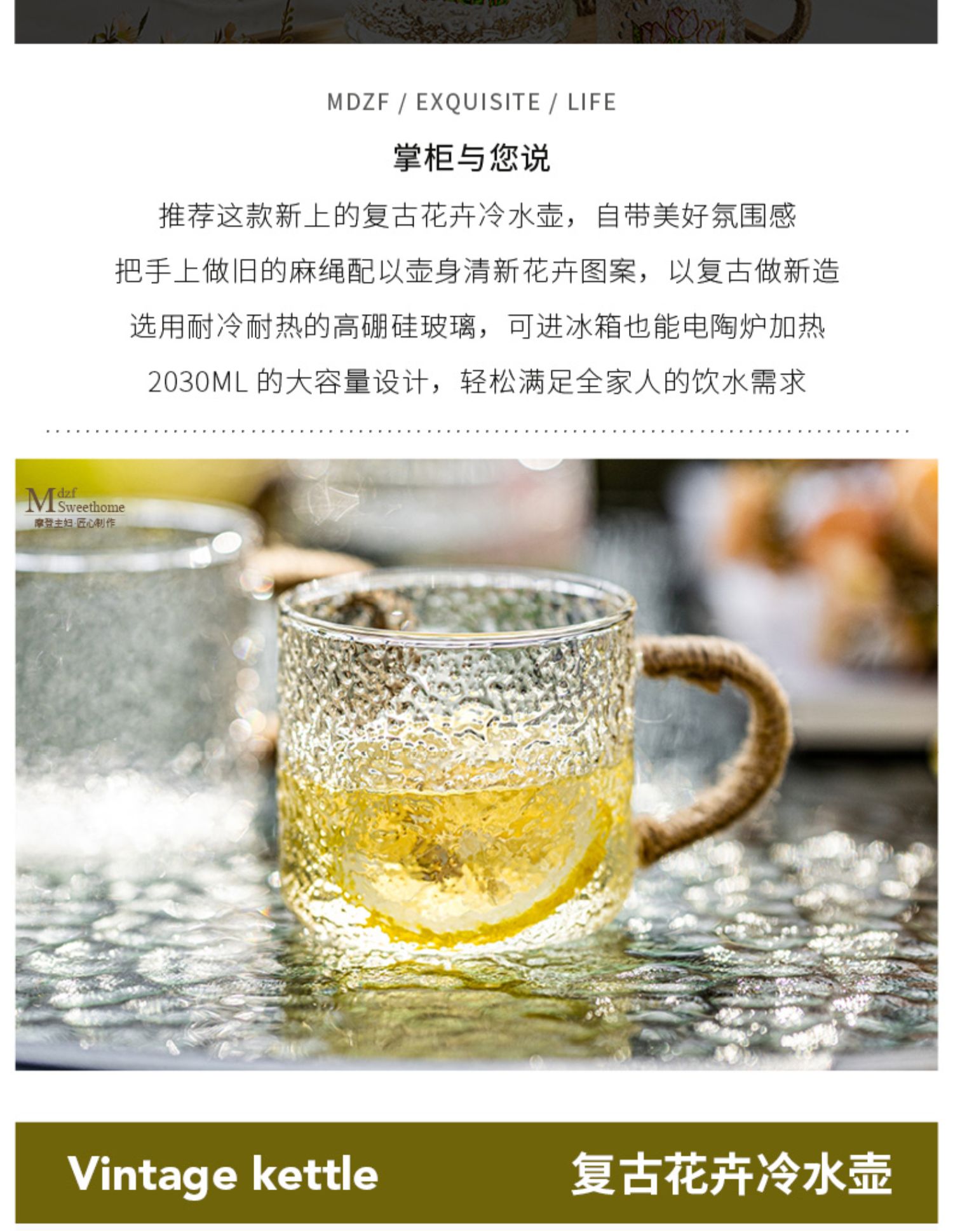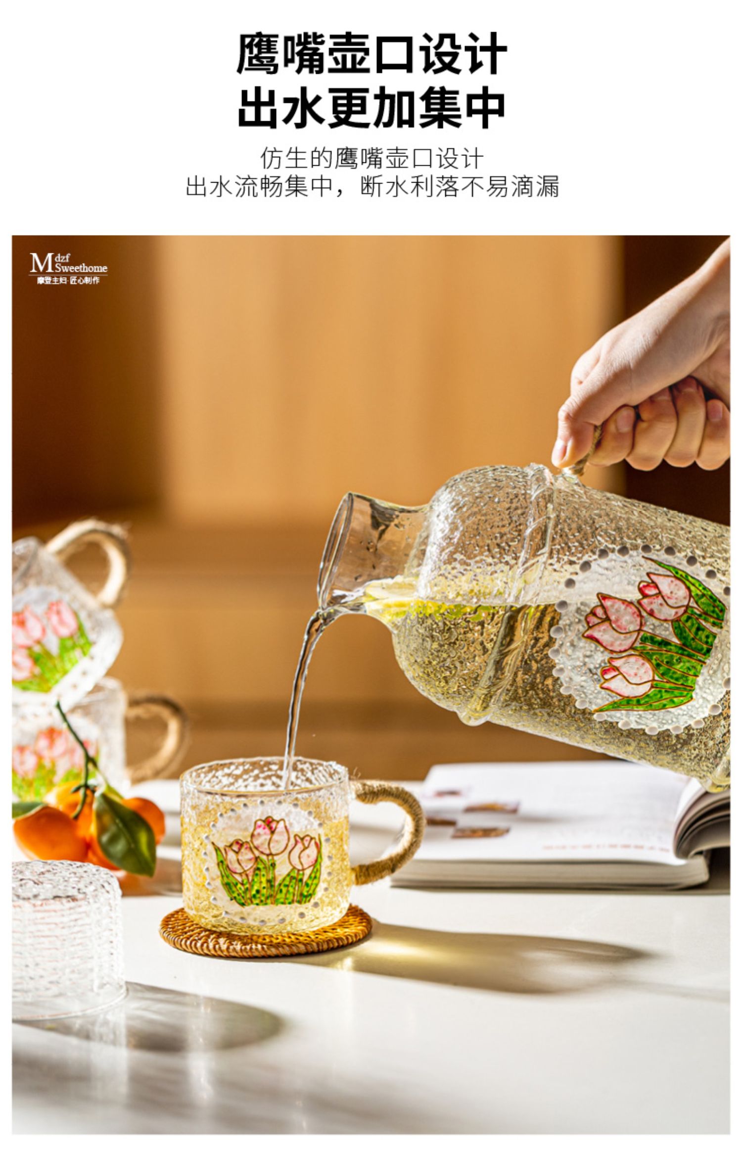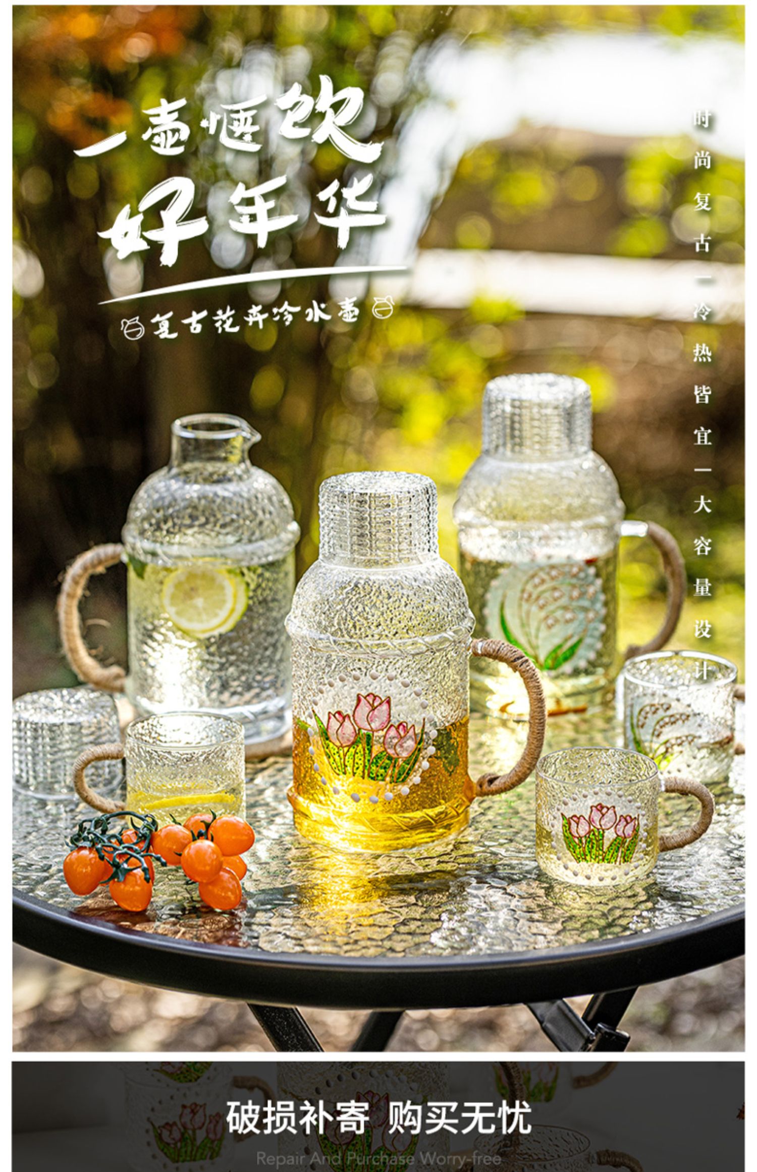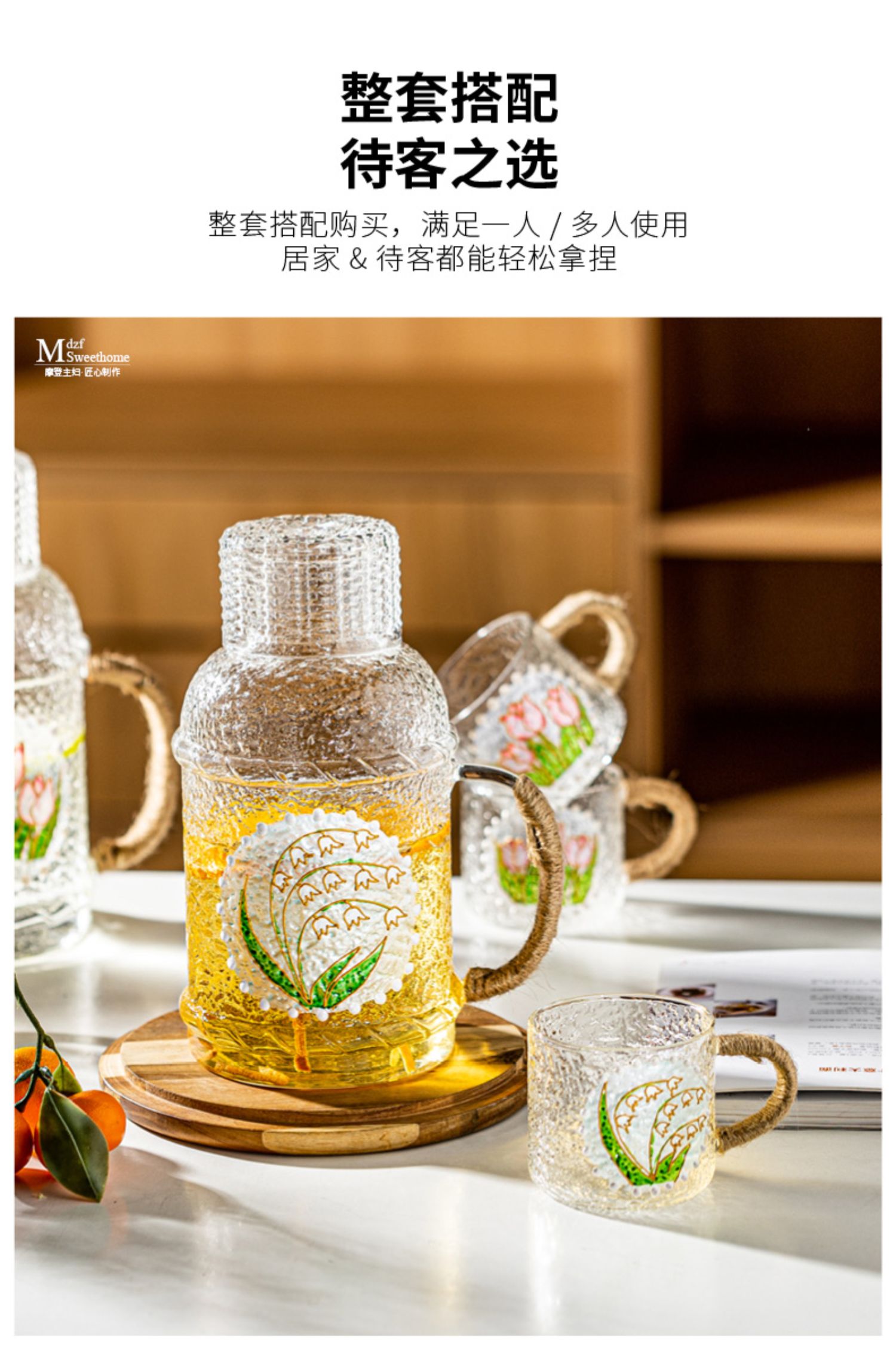 摩登主妇复古玻璃冷水壶耐高温家用凉水壶凉水杯套装高颜值装水壶