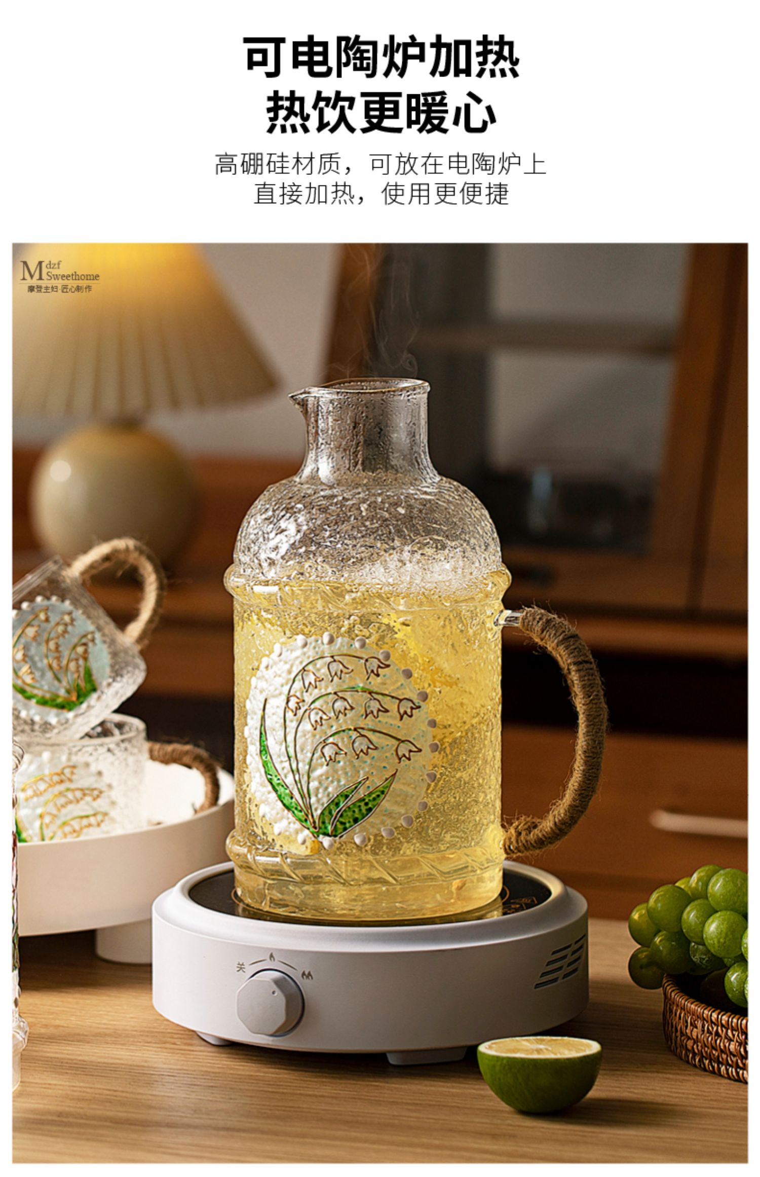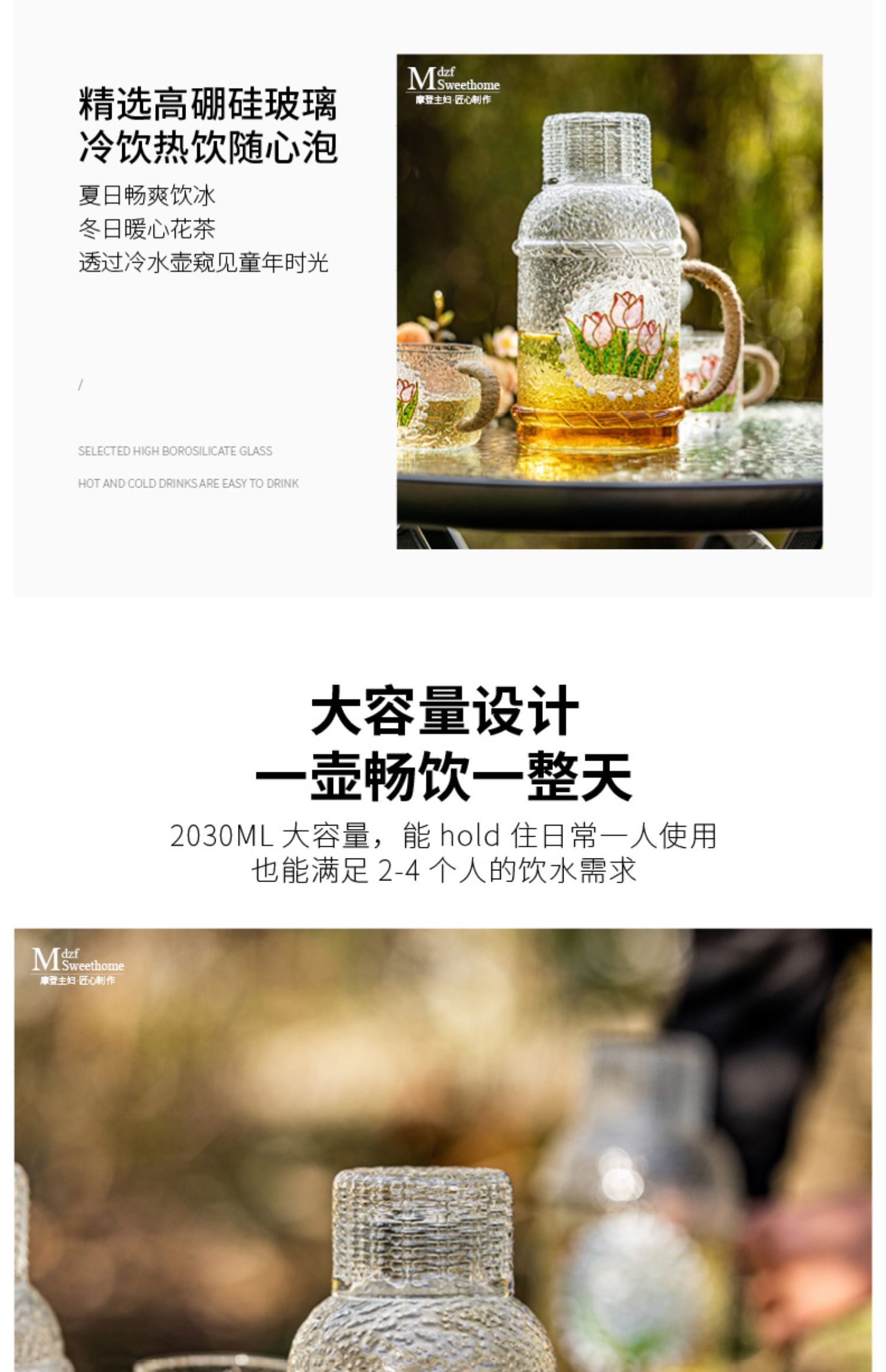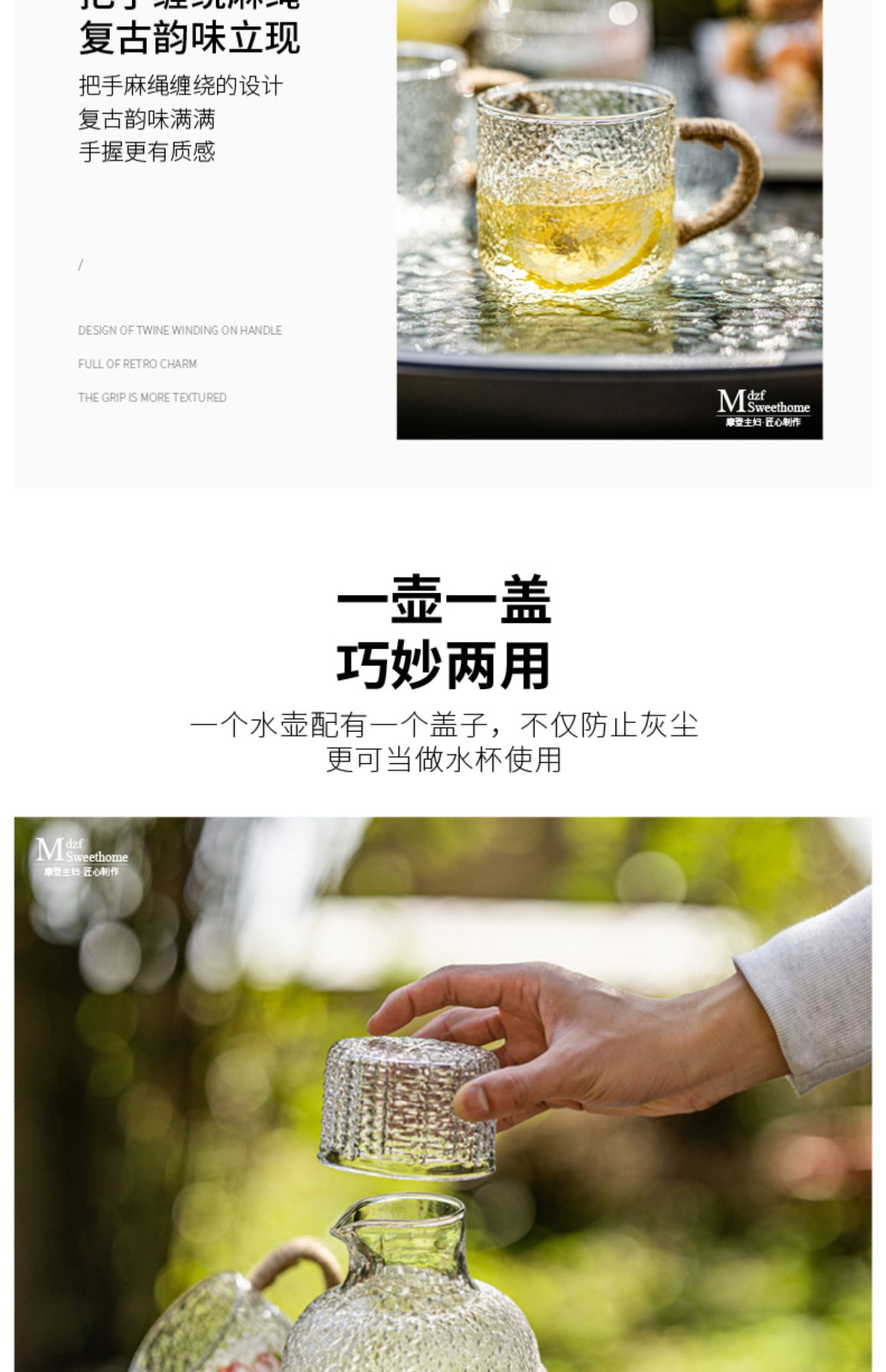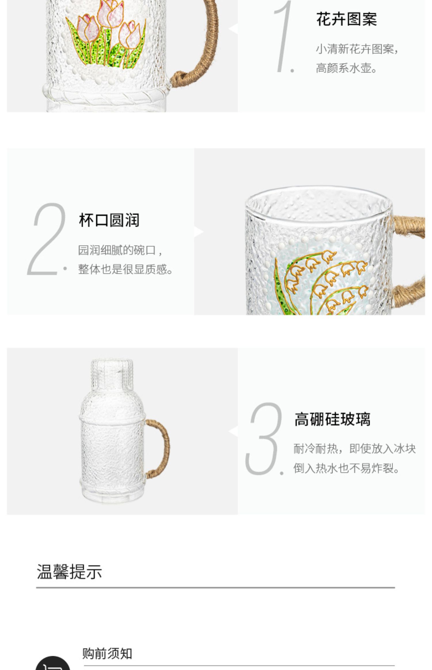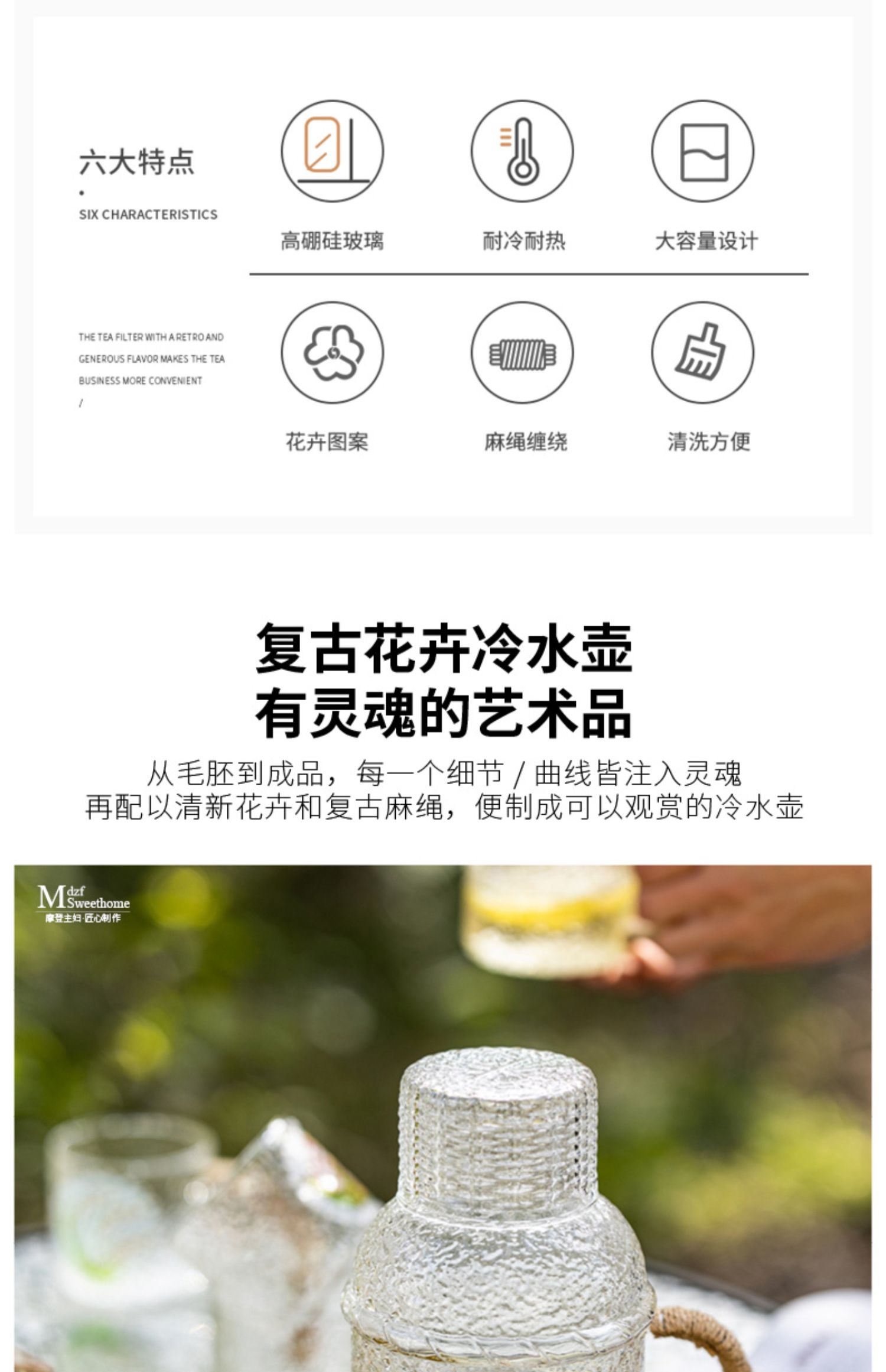摩登主妇复古玻璃冷水壶耐高温家用凉水壶凉水杯套装高颜值装水壶