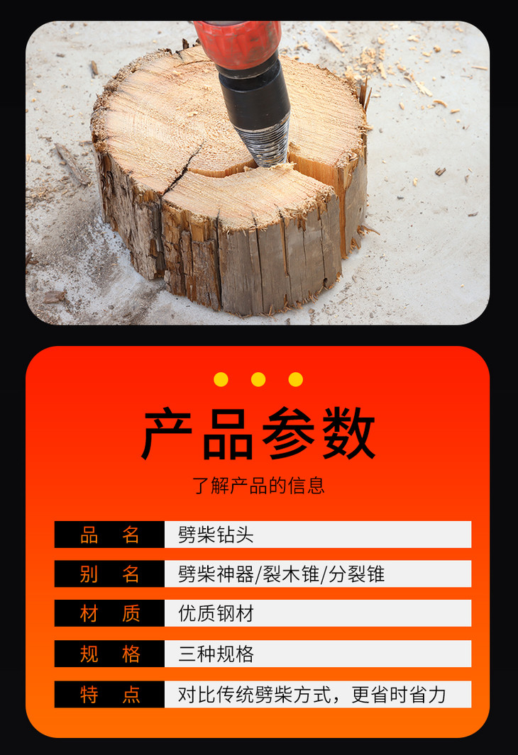 【劈柴伸器】劈柴钻头劈柴神器木工破柴分裂锥家用电锤手电钻冲击钻劈材水钻头