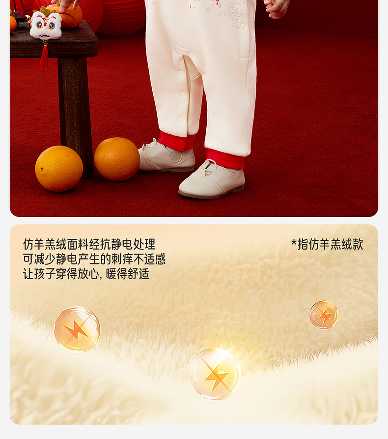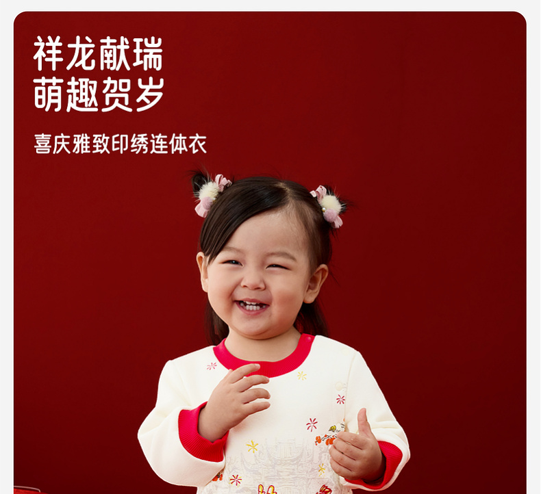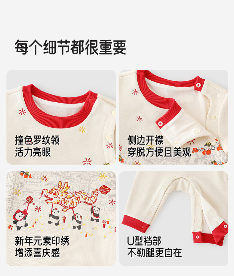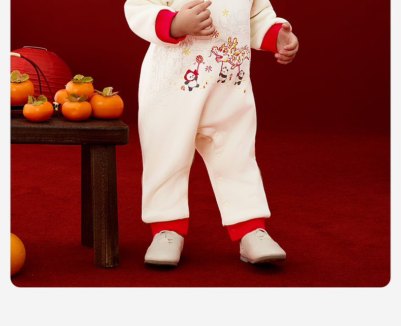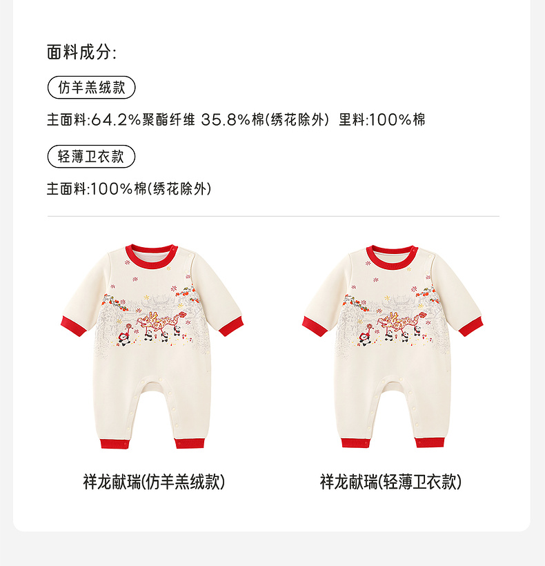 【商场同款】英氏婴儿哈衣针织连身衣爬服女宝秋冬保暖喜庆新款