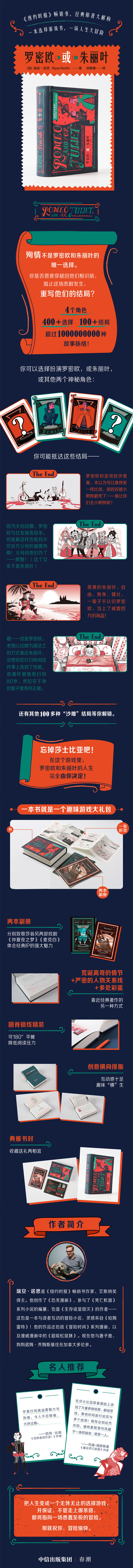 脑洞大开的选择游戏书,解压神器;充满“沙雕”气质,解构经典。4个角色,400多次选择,100多种结局,超过一亿条故事脉络!《纽约时报》畅销书。忘掉莎士比亚吧!在你的故事里,罗密欧和朱丽叶可能从未相遇过。