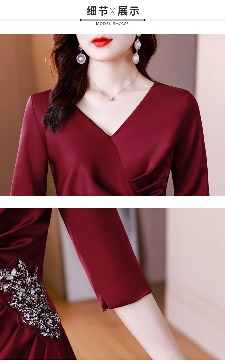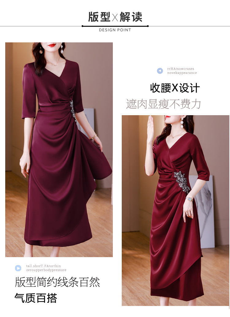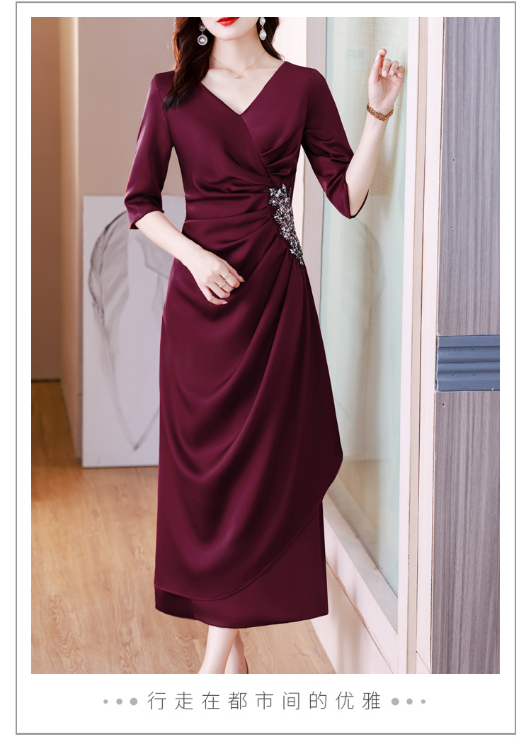 AHM blx9560妈妈装重工镶钻修身显瘦连衣裙 商品图3