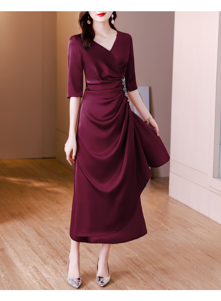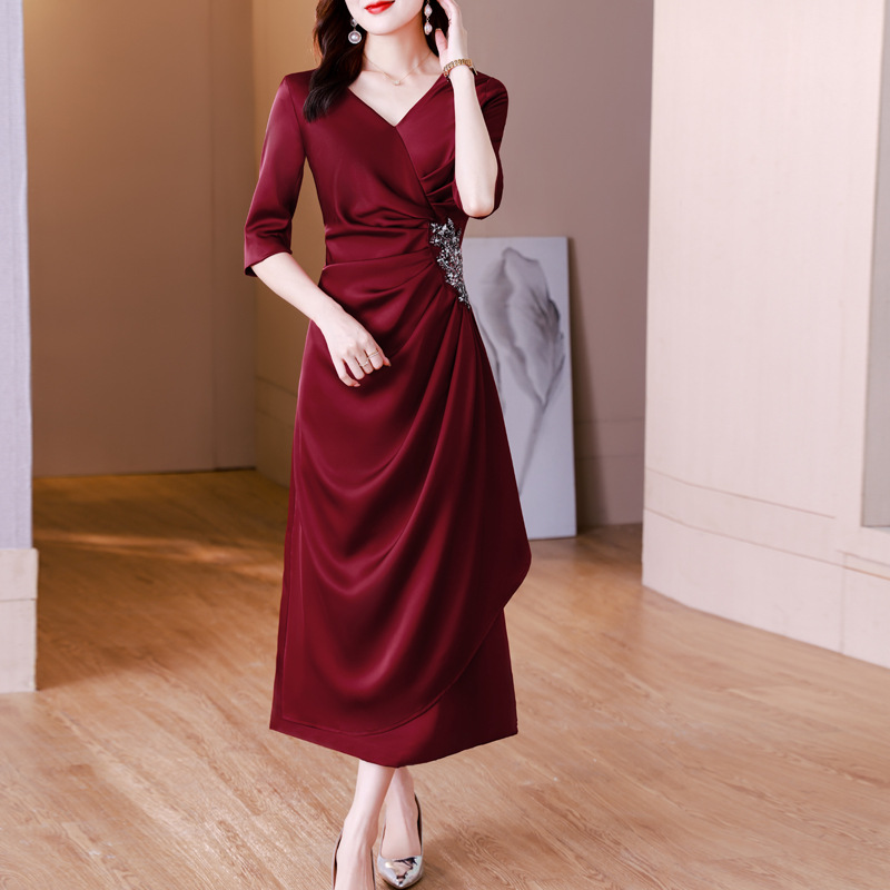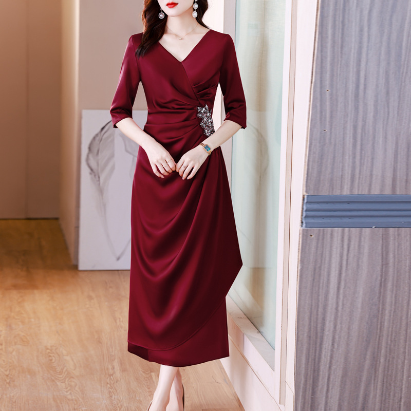 AHM blx9560妈妈装重工镶钻修身显瘦连衣裙 商品图1