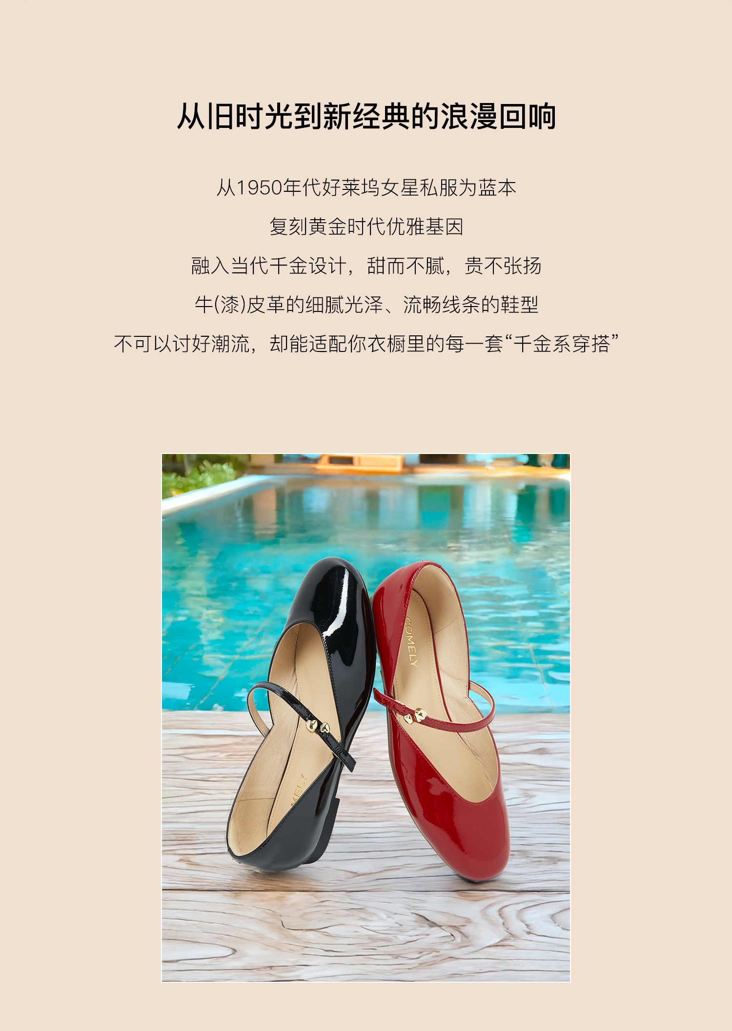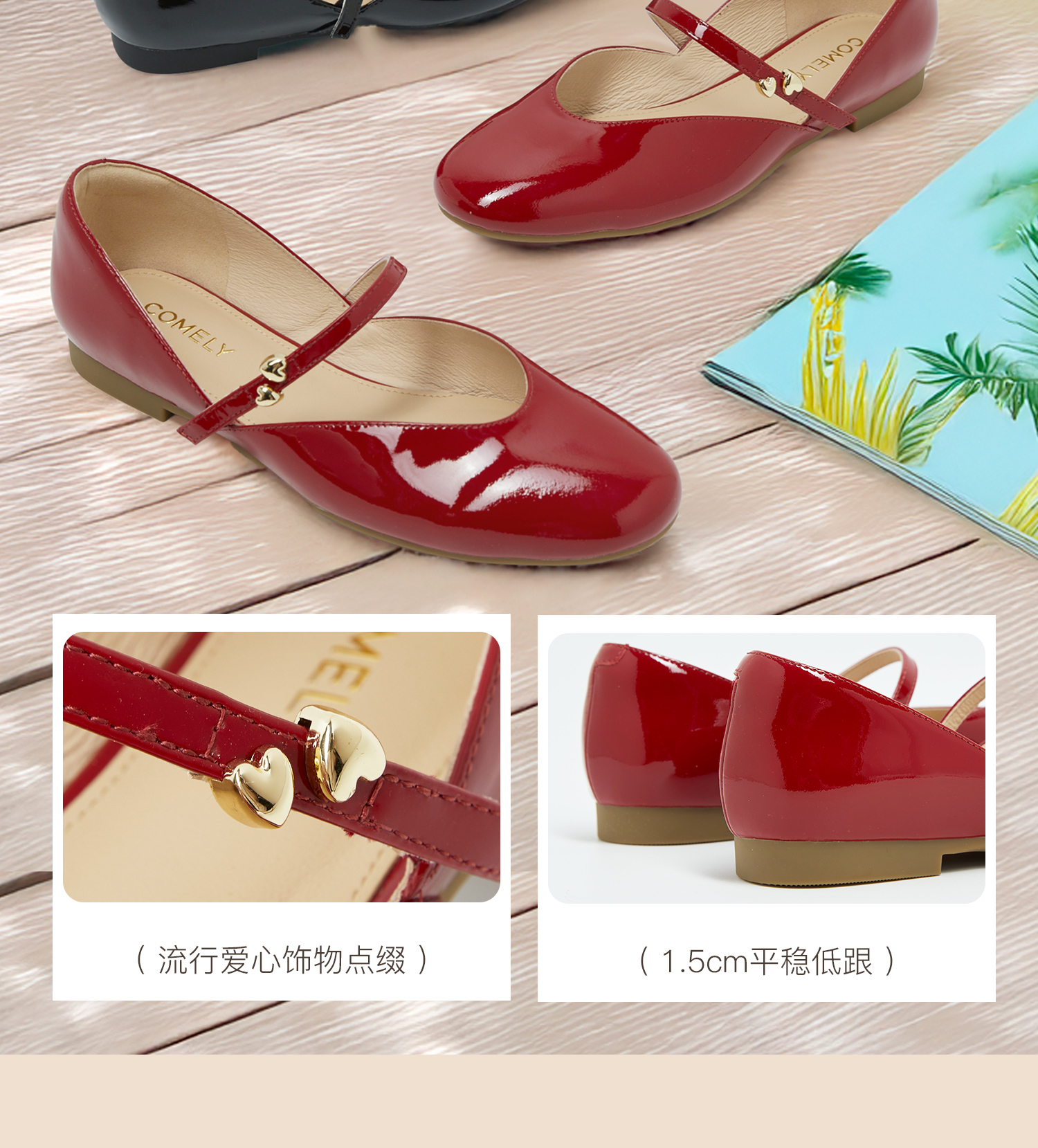 康莉KYQ5A539牛漆皮低跟玛丽珍鞋秋新款时尚赫本风甜酷浅口单鞋