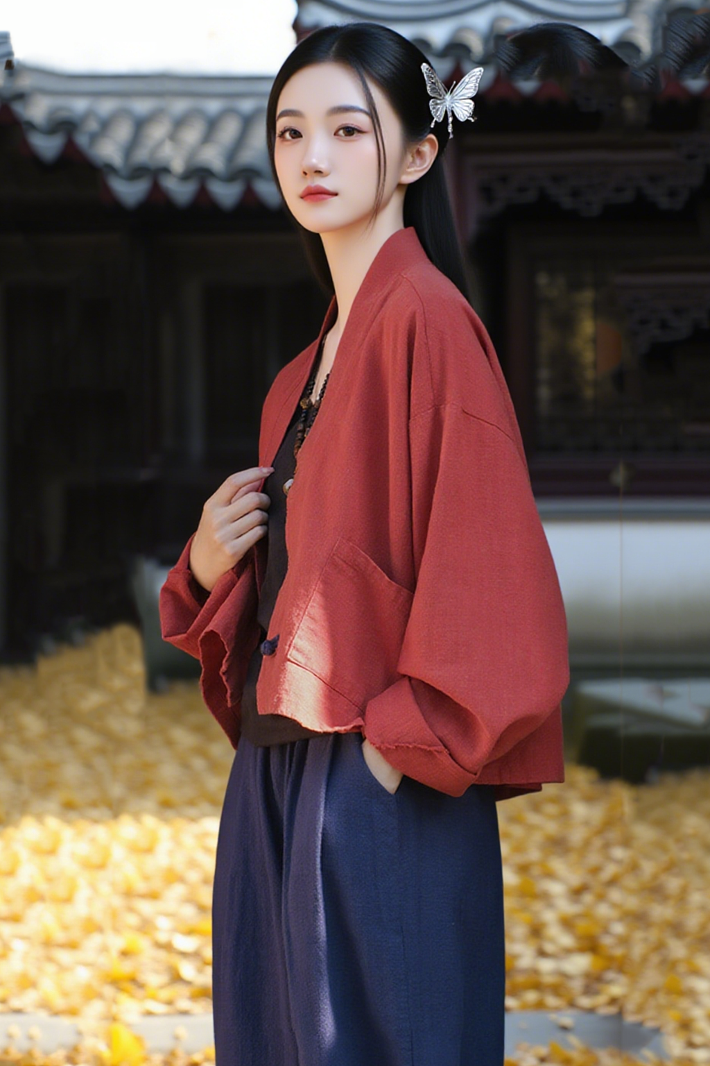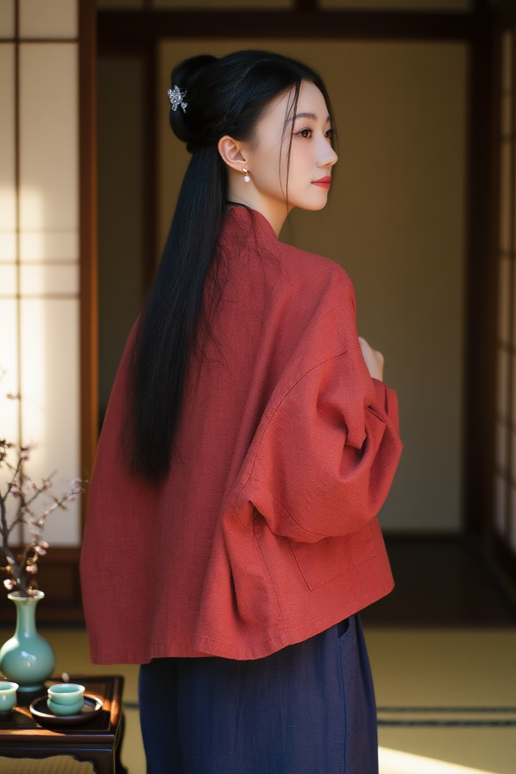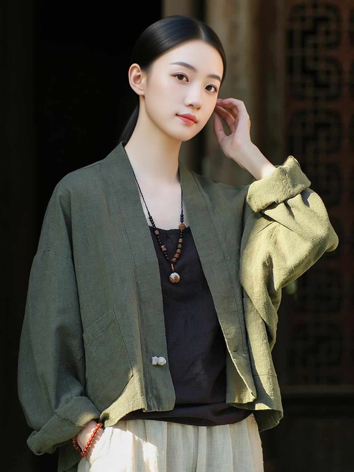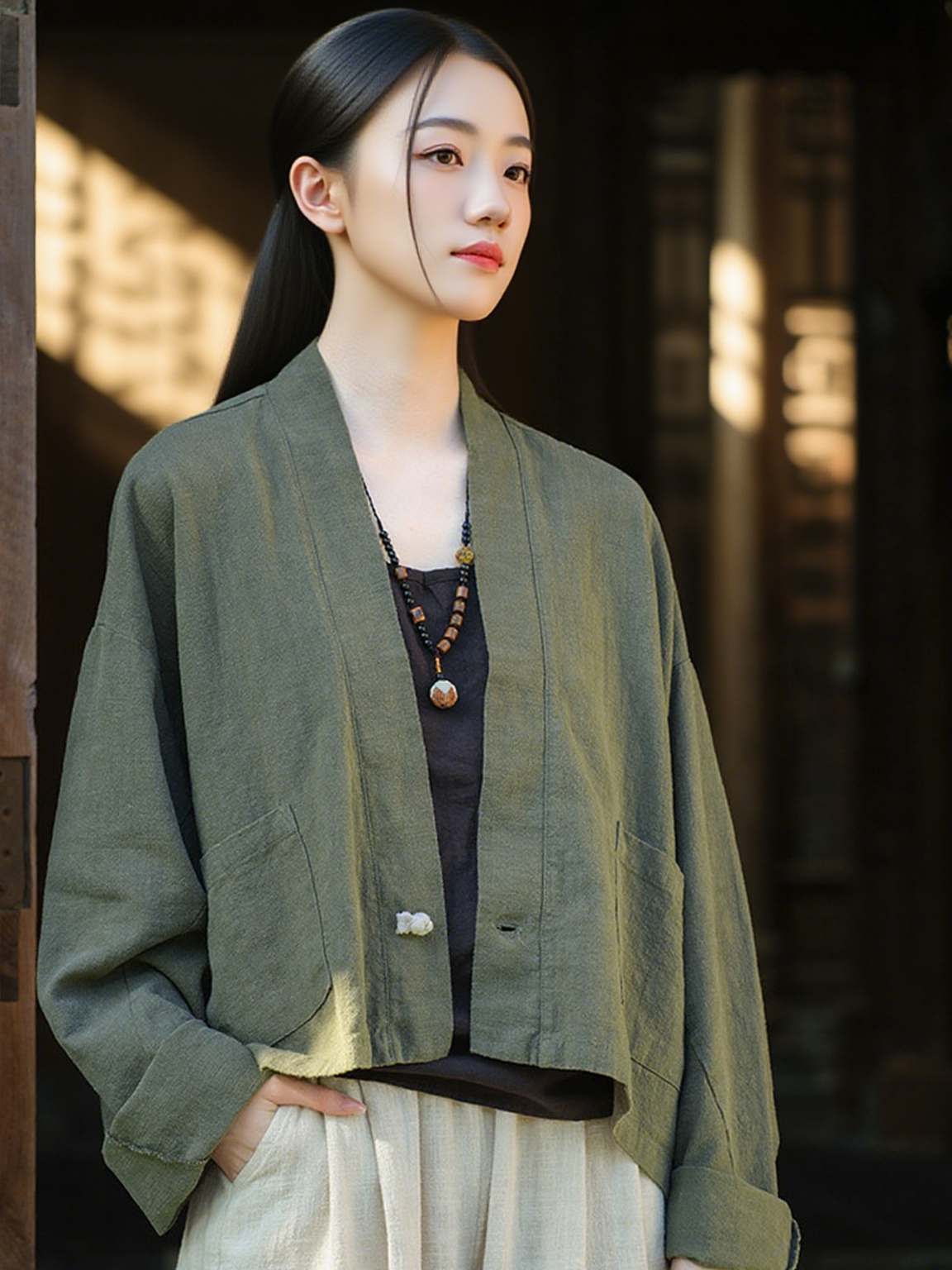 现货 臣禾 【棉麻披肩式短外套】苎麻砂洗做旧衬衫盘扣短开衫(71.5% 苎麻28.5% 棉) JZ253011375