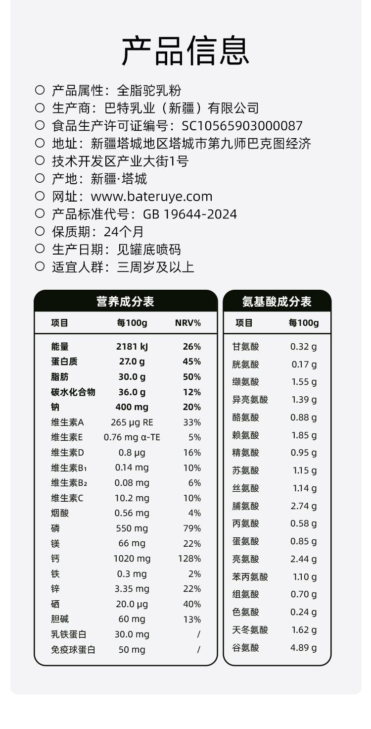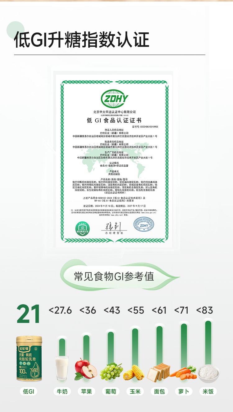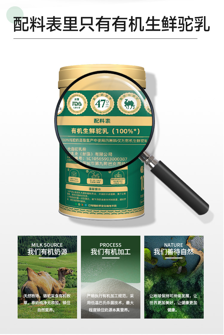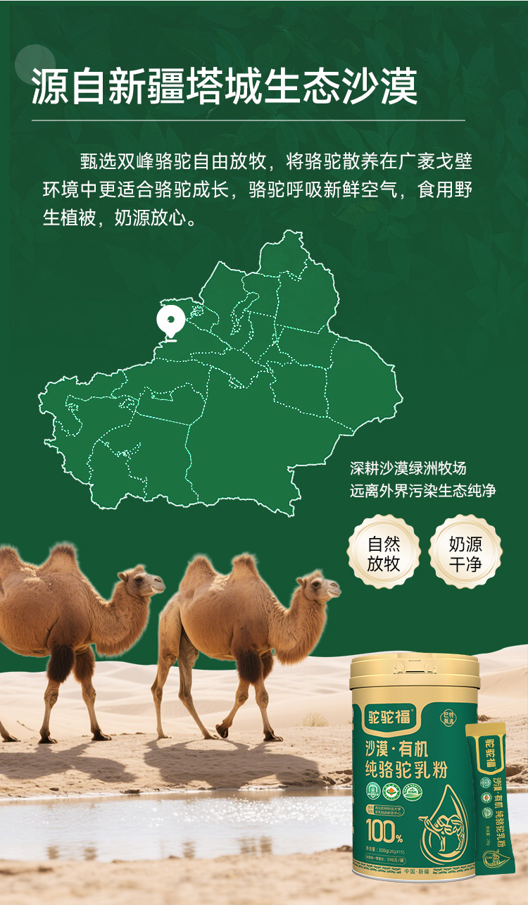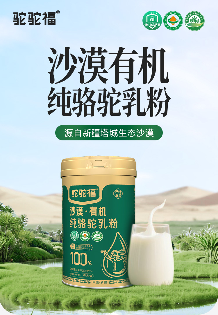 驼驼福·沙漠有机纯骆驼乳粉300g(20g*15) 有机生鲜驼乳