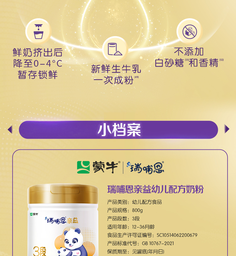 蒙牛瑞哺恩亲益3段幼儿配方奶粉800g(A2奶源版)
