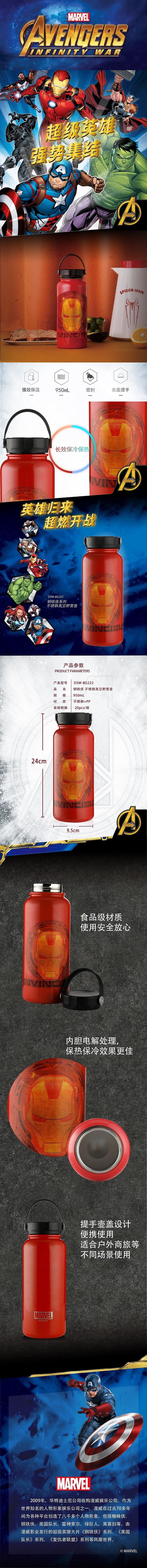 迪士尼 钢铁侠不锈钢真空野营壶