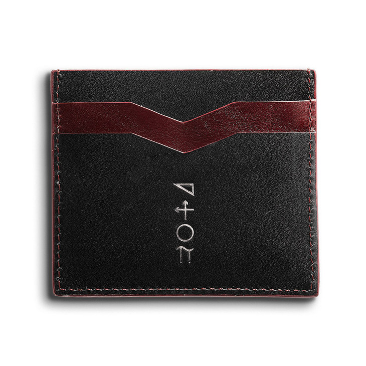 这款酒红和黑色植物鞣制皮质卡包的设计灵感来自Mike Fun,外部的树脂涂层让你轻松的放置和抽取卡片。