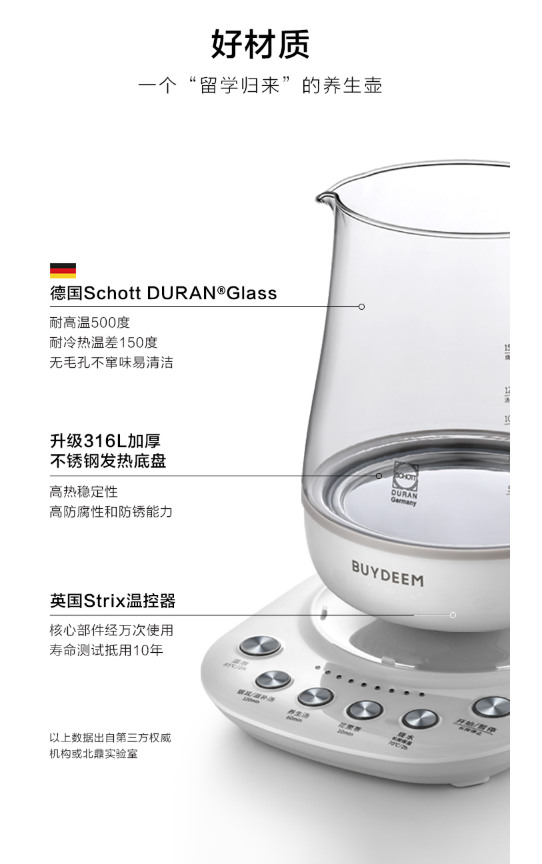 北鼎K118 全自动养生壶 多功能静音炖煮 玻璃烧水壶