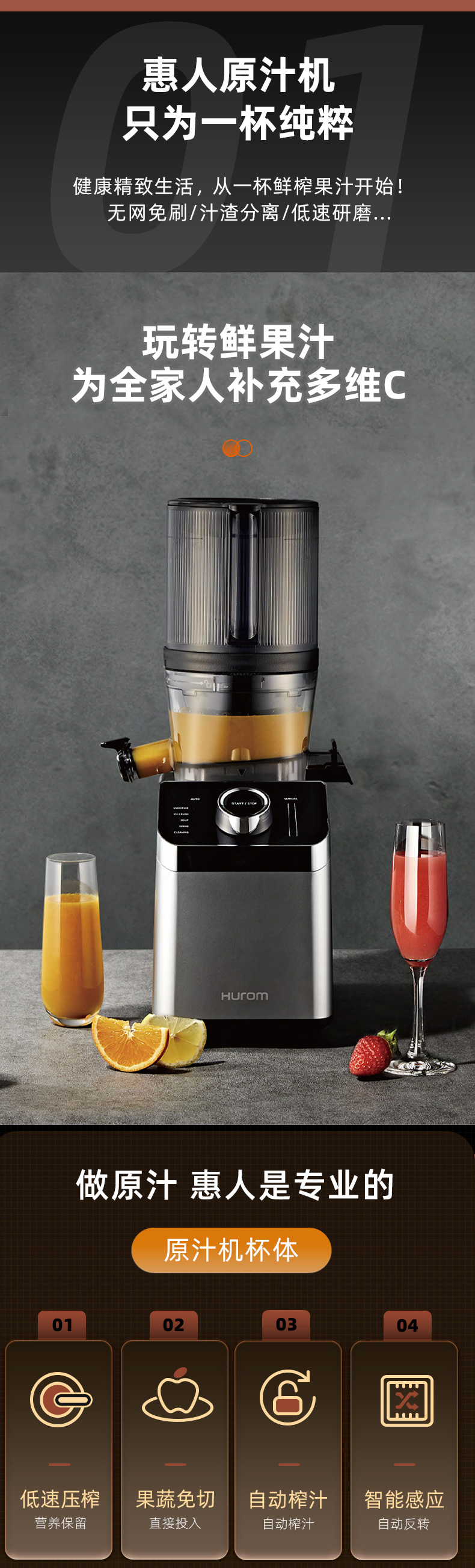 hurom惠人破壁原汁机榨渣分离多功能豆浆料理机【M100-SBIA05】