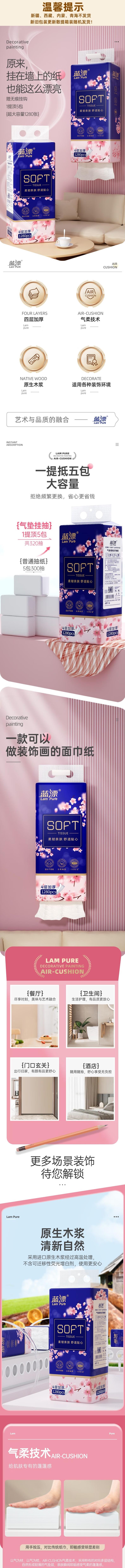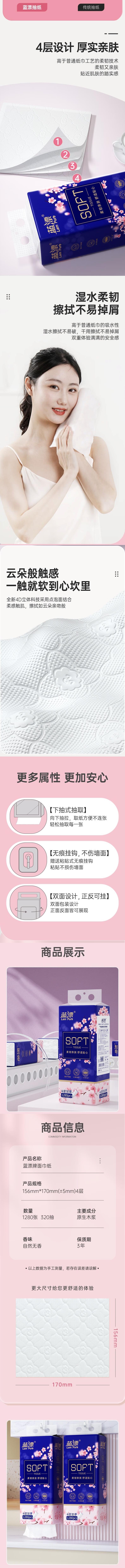 蓝漂 白色气垫挂式抽纸4层1280张*4提 LP0BS004T