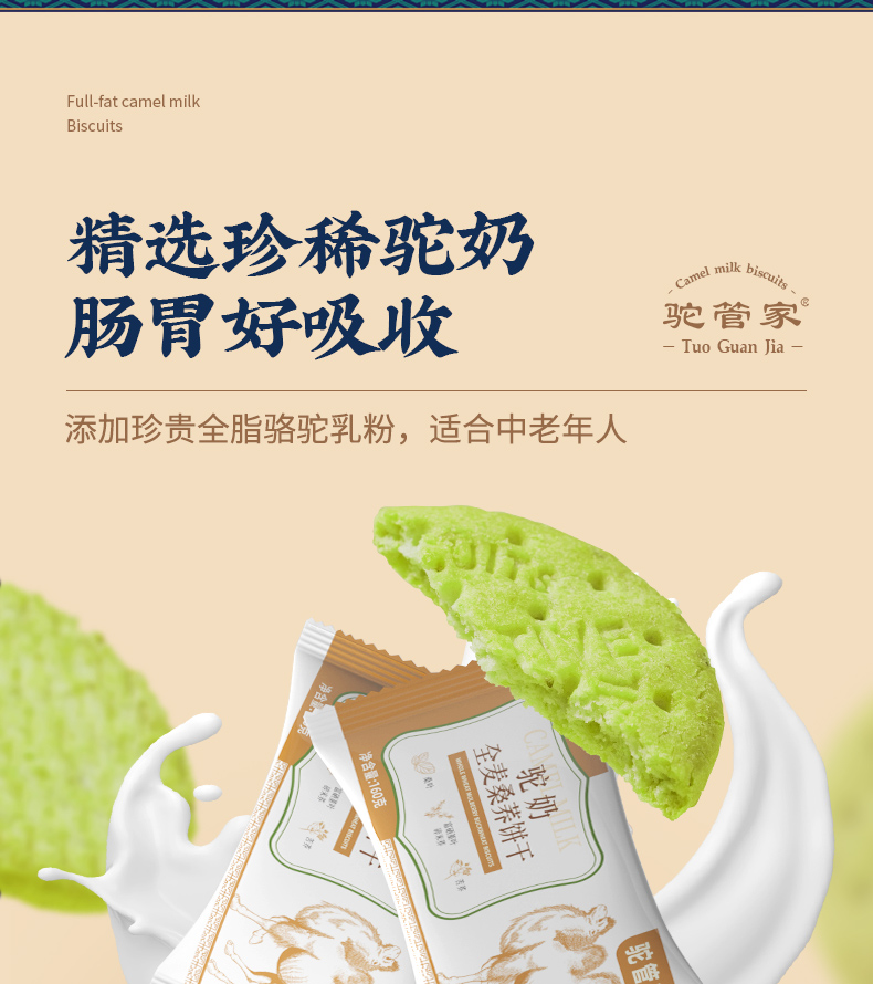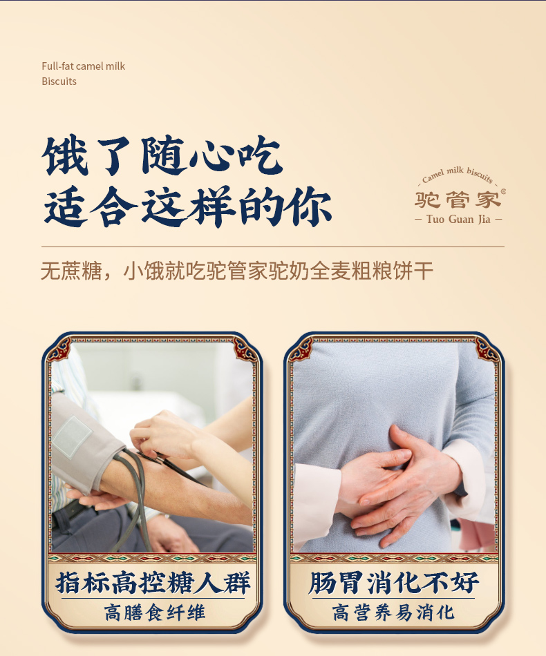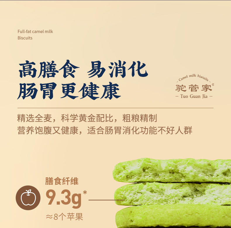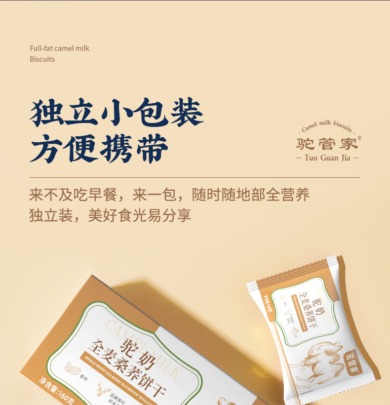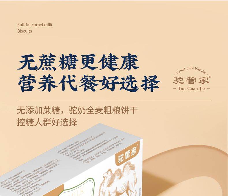 驼管家 驼奶全麦粗粮饼 无蔗糖 精选珍稀驼奶 高膳食 易消化 独立包装