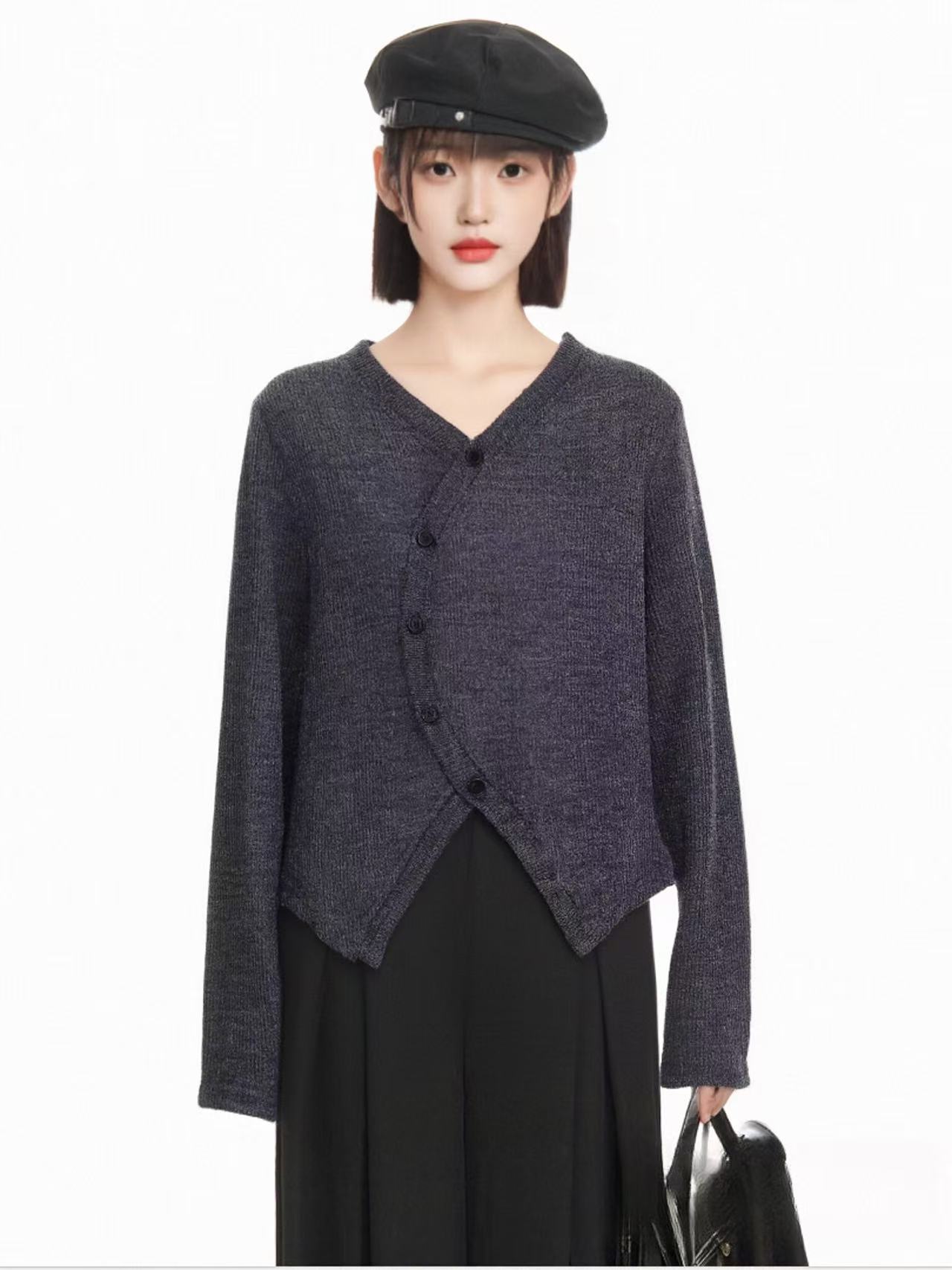 【清仓价】不参与退换 -A35不规则针织长袖小衫-喜出