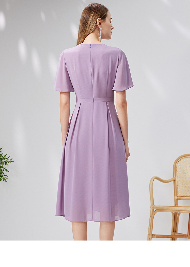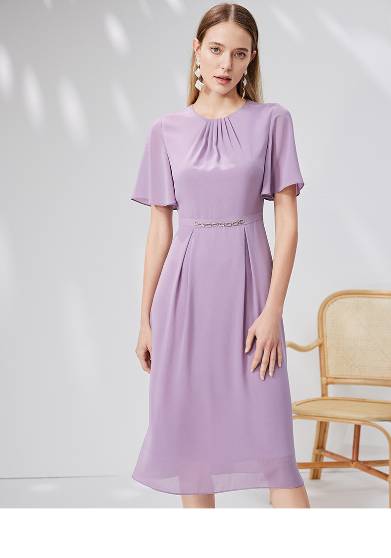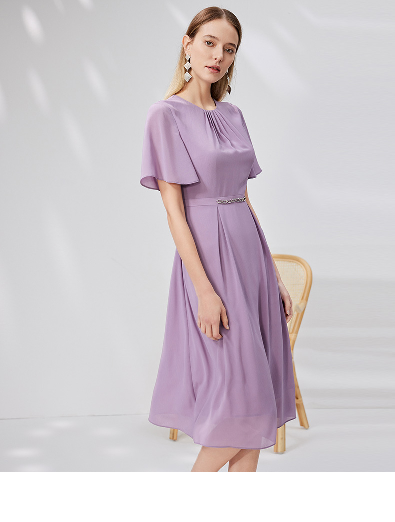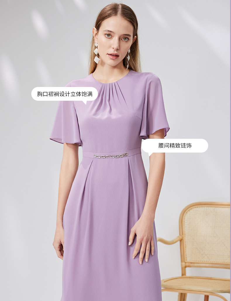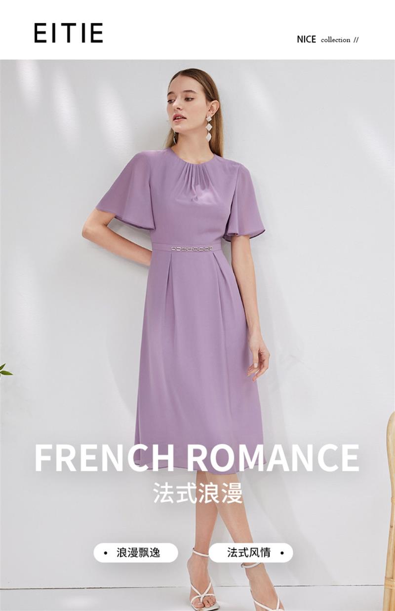EITIE爱特爱温柔优雅紫色收腰连衣裙气质显瘦法式通勤夏季新款B07158
