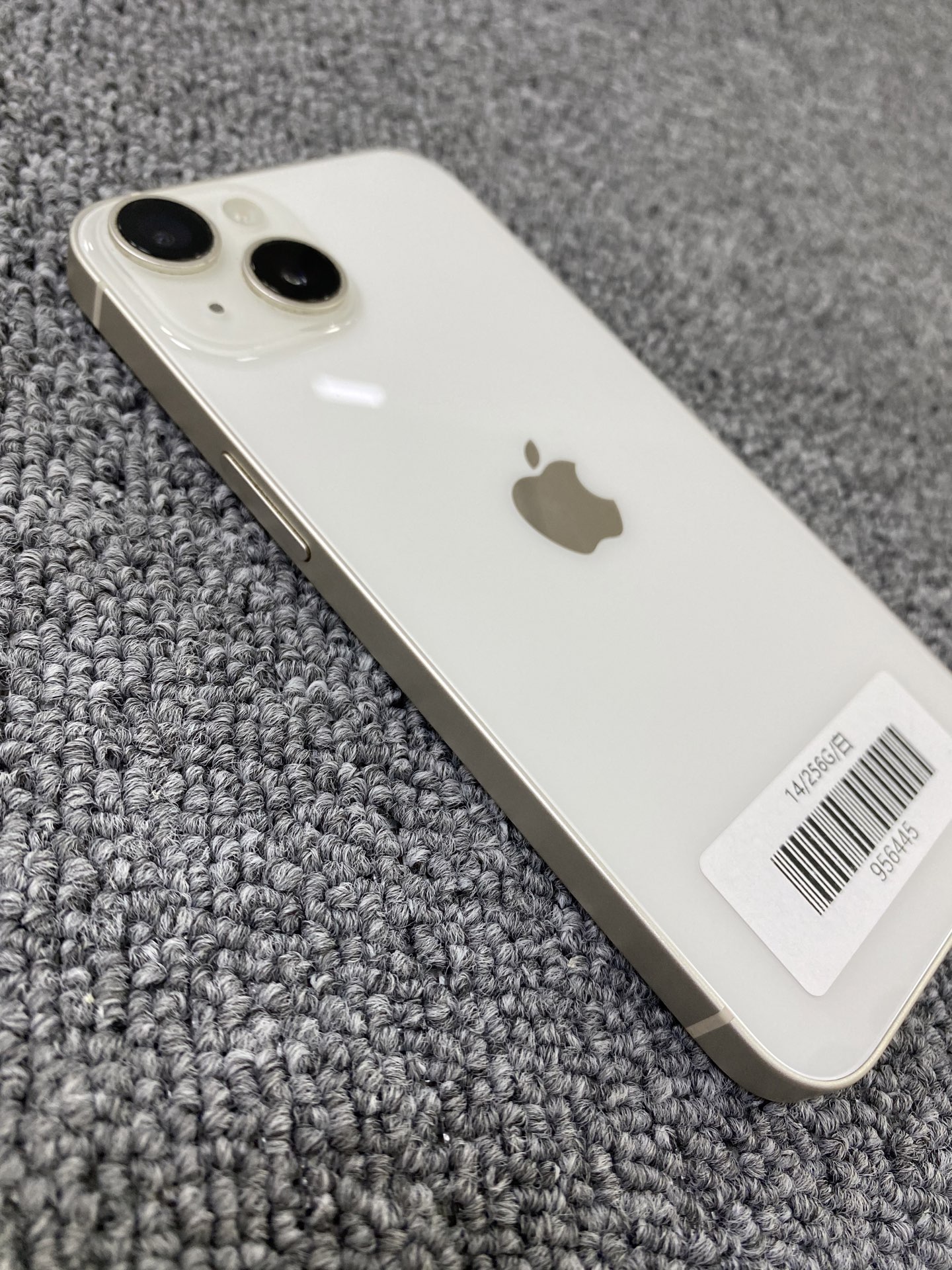 编号956445-苹果国行iPhone14/256G/白色,双卡5G手机,9.8新成色好,换新电池100%,特价3100元!质检工程师已深度检测通过,店保180天,请放心购买! 🔥爽快下单送手机大礼包(快充套装+壳膜套装+100元旧机回收加价券+30元充电宝优惠券+30元耳机优惠券+30元风扇优惠券+30元剃须刀优惠券)