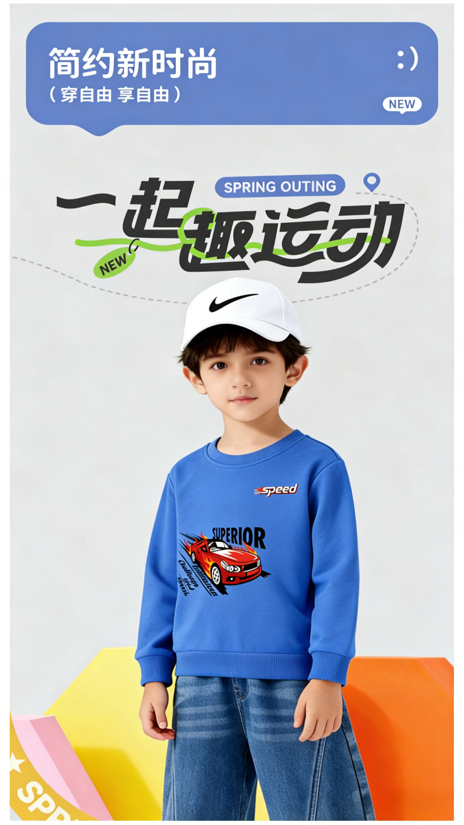 【秒杀】【单价49元,2件79元】儿童春秋款纯棉印花卫衣M1039