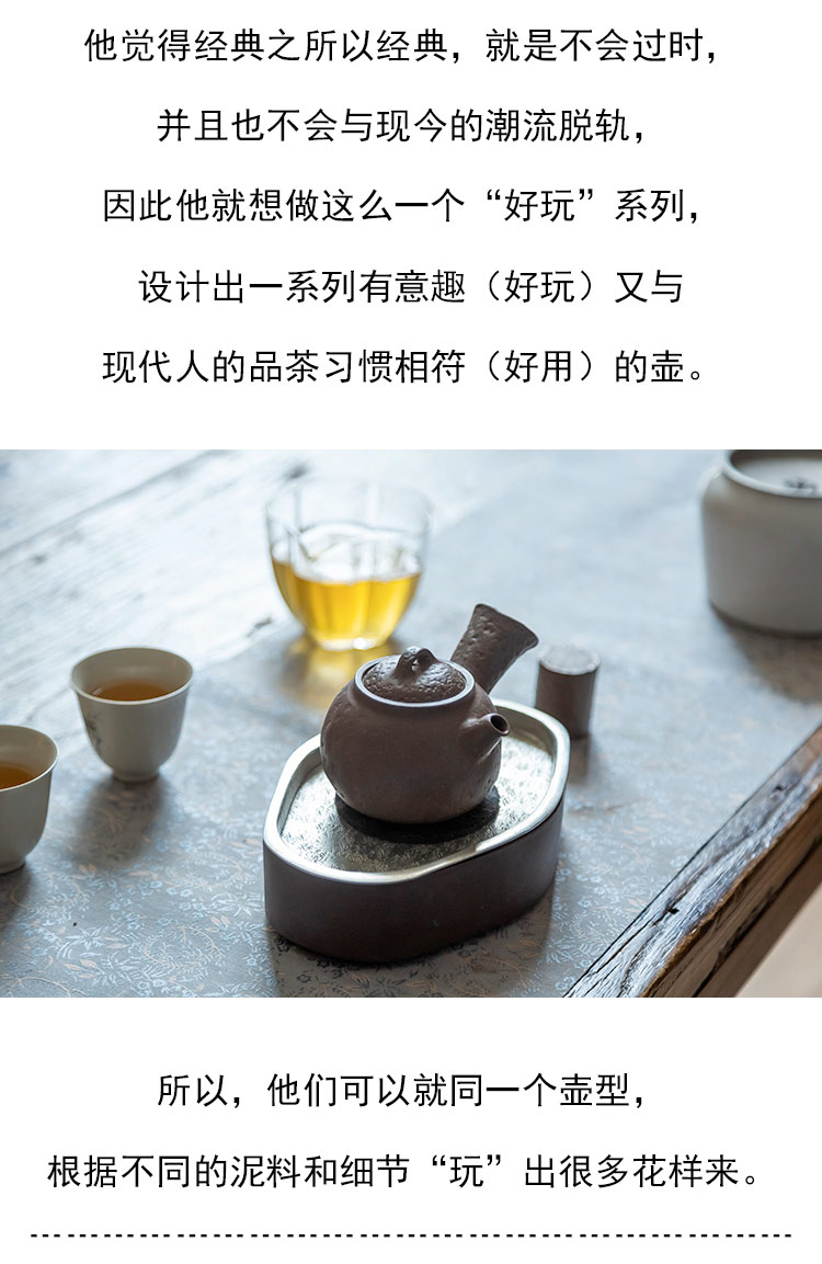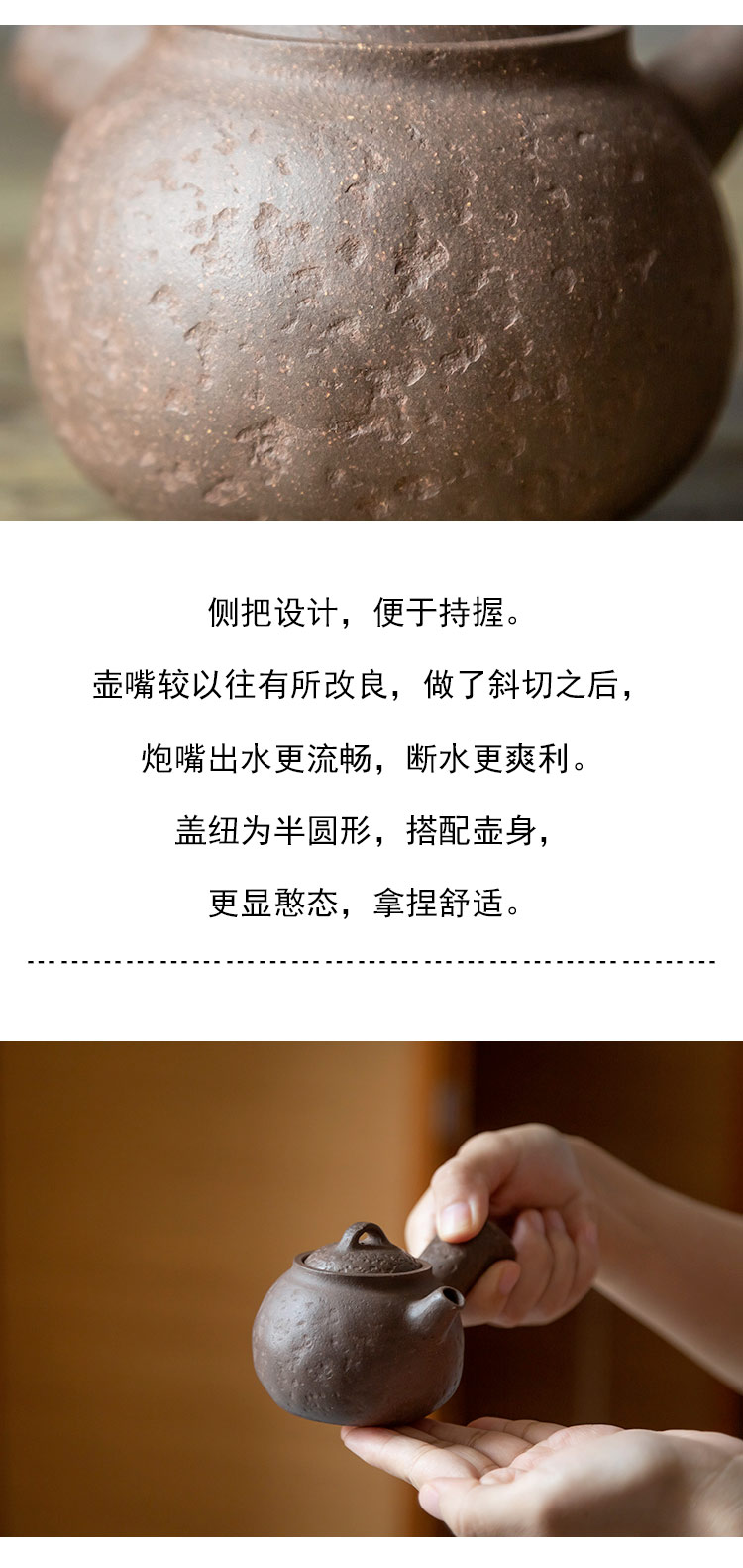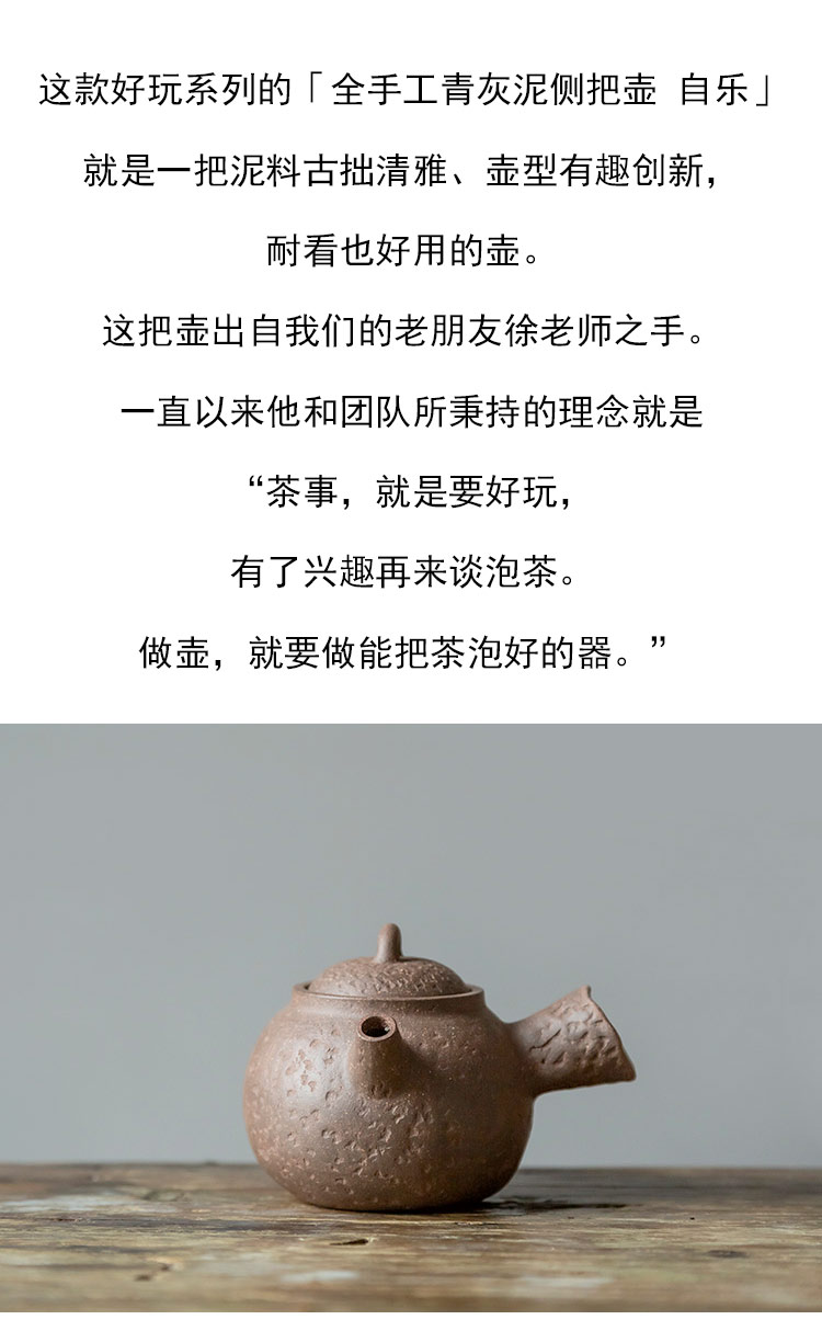 茶香记 全手工青灰泥侧把壶 好玩系列 自乐 古拙清雅 有趣实用