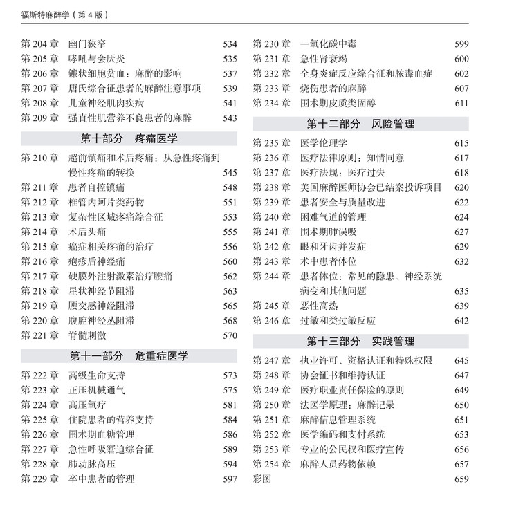 一部专业教材能够不断再版,一定是历久弥新。与以往的教科书不同,本部专著共包括13部分254章,涵盖了临床麻醉医生需要掌握的方方面面,包括疾病和手术特点、麻醉相关仪器、操作技能、药理、生理、麻醉管理、手术室效率管理等,最大的体会是这部麻醉学专著结构清晰、内容简明扼要,每章篇幅基本不超过2页,可读性强。临床麻醉方面,以亚专业进行分层阐述,在每个章节聚焦各亚专业临床麻醉中的主要专题进行了论述,既有基础理论及发病机制的内容介绍,也有明确清晰的临床处理流程及要点,读者很容易“按需索骥”找到相关内容和答案,全面了解某个专题的全貌。特别是针对每个临床专题,详尽阐述了历史沿革、临床现状和相关的研究进展,涉及面广、系统性好、临床实用性强,参考价值很大。可供从事临床麻醉专业的各级各类人员参考。本著作的翻译凝聚了北京大学麻醉学系众多医生的心血,愿我们的工作能给大家更多的帮助。祝所有麻醉同仁工作顺利。