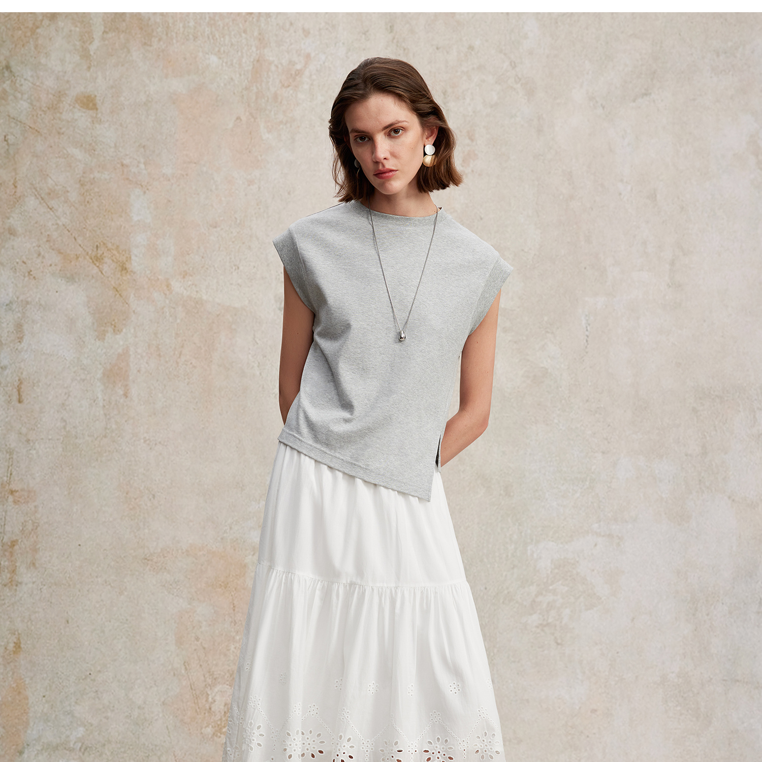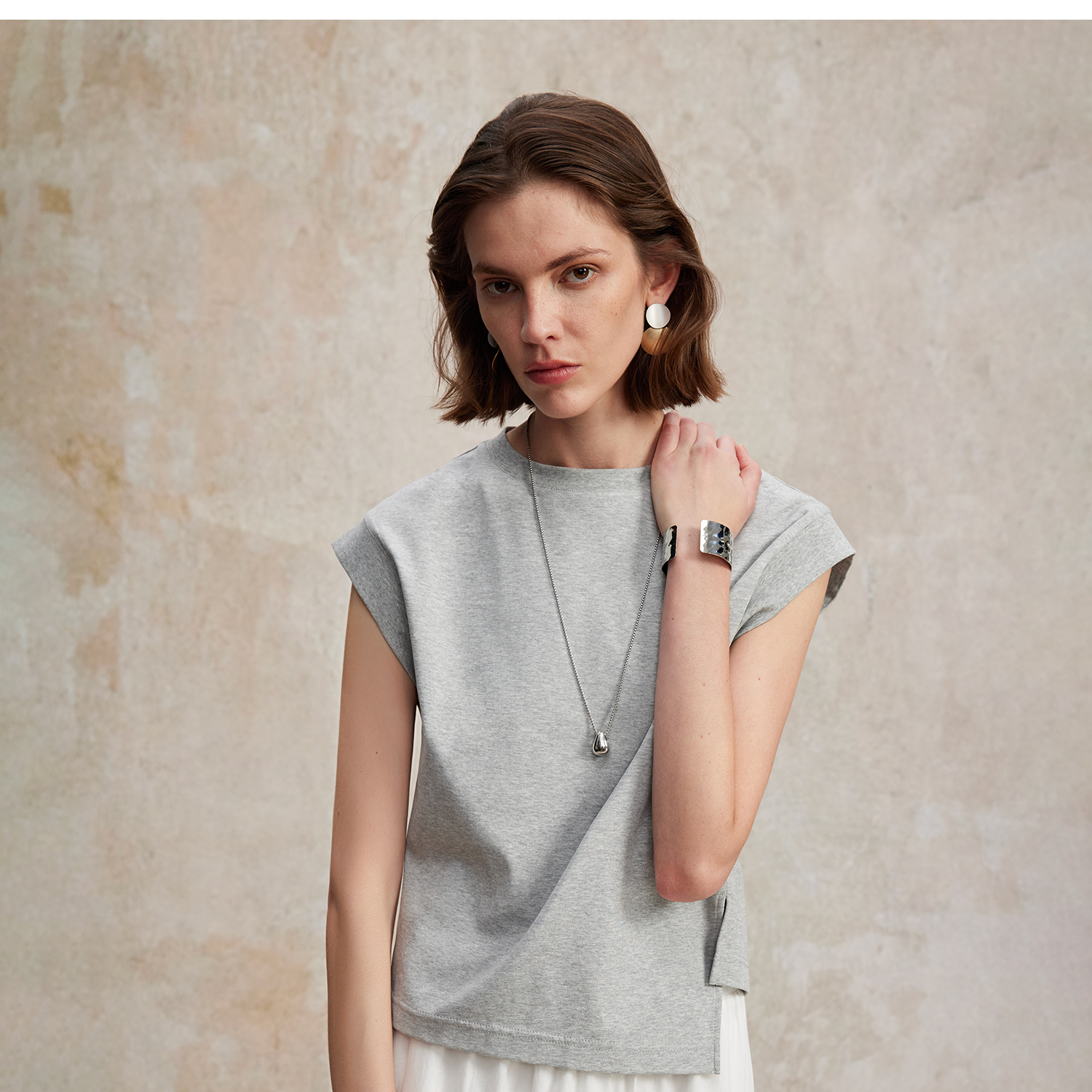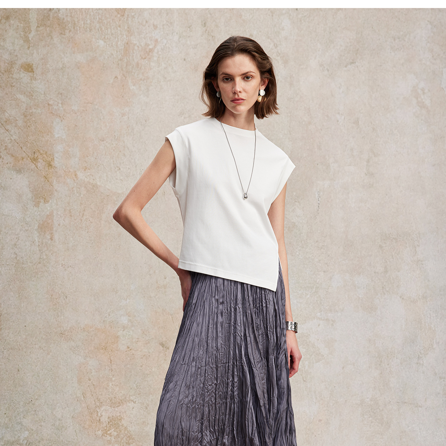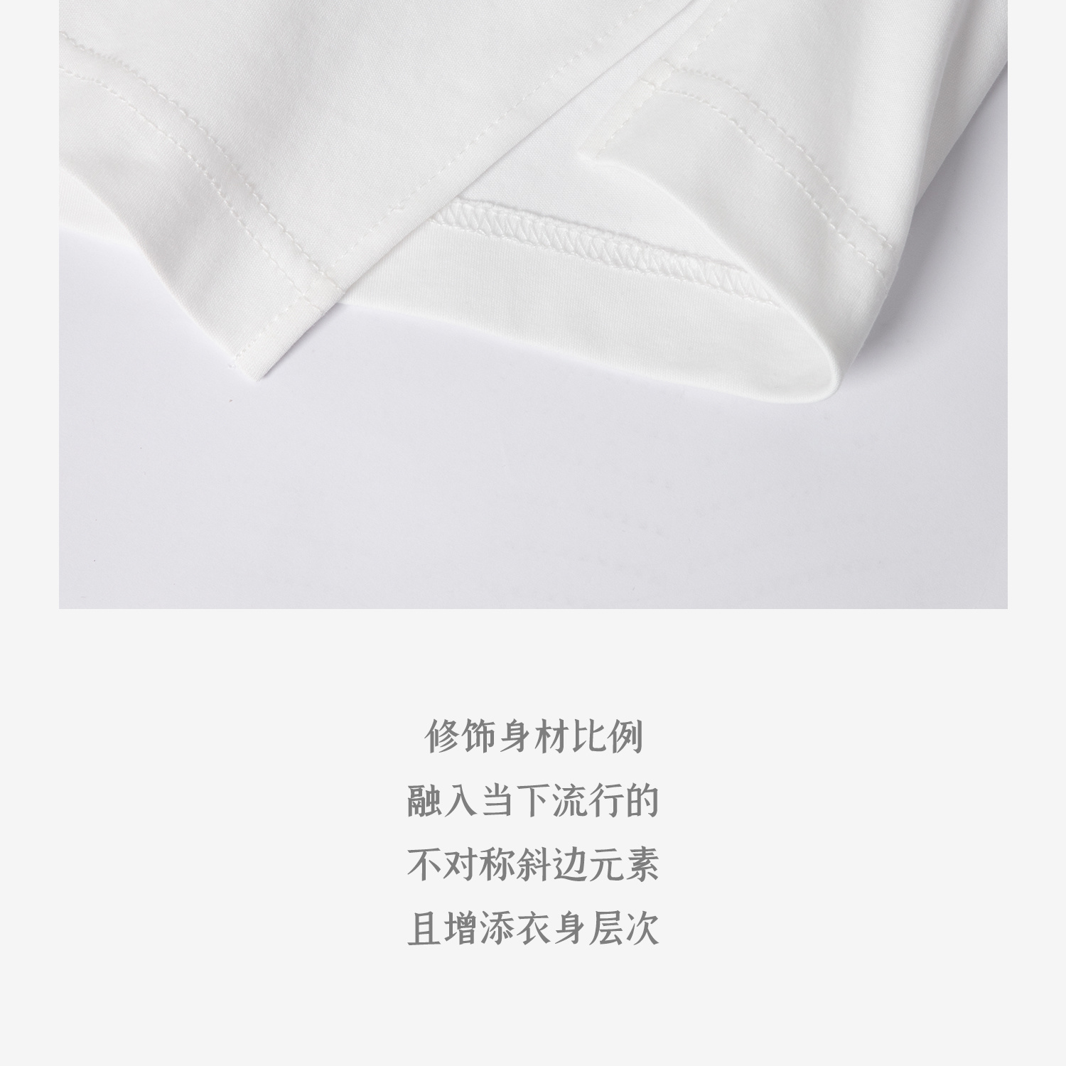 澳棉简约不规则开衩设计感T恤2025夏新T2502005