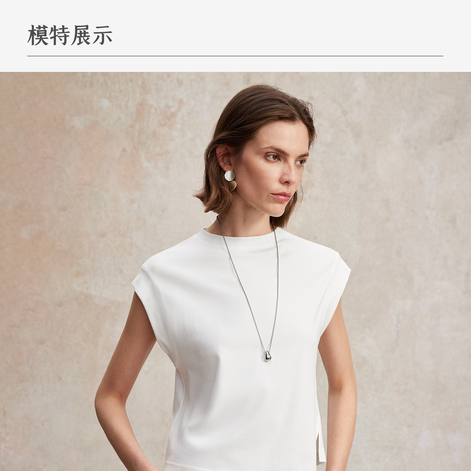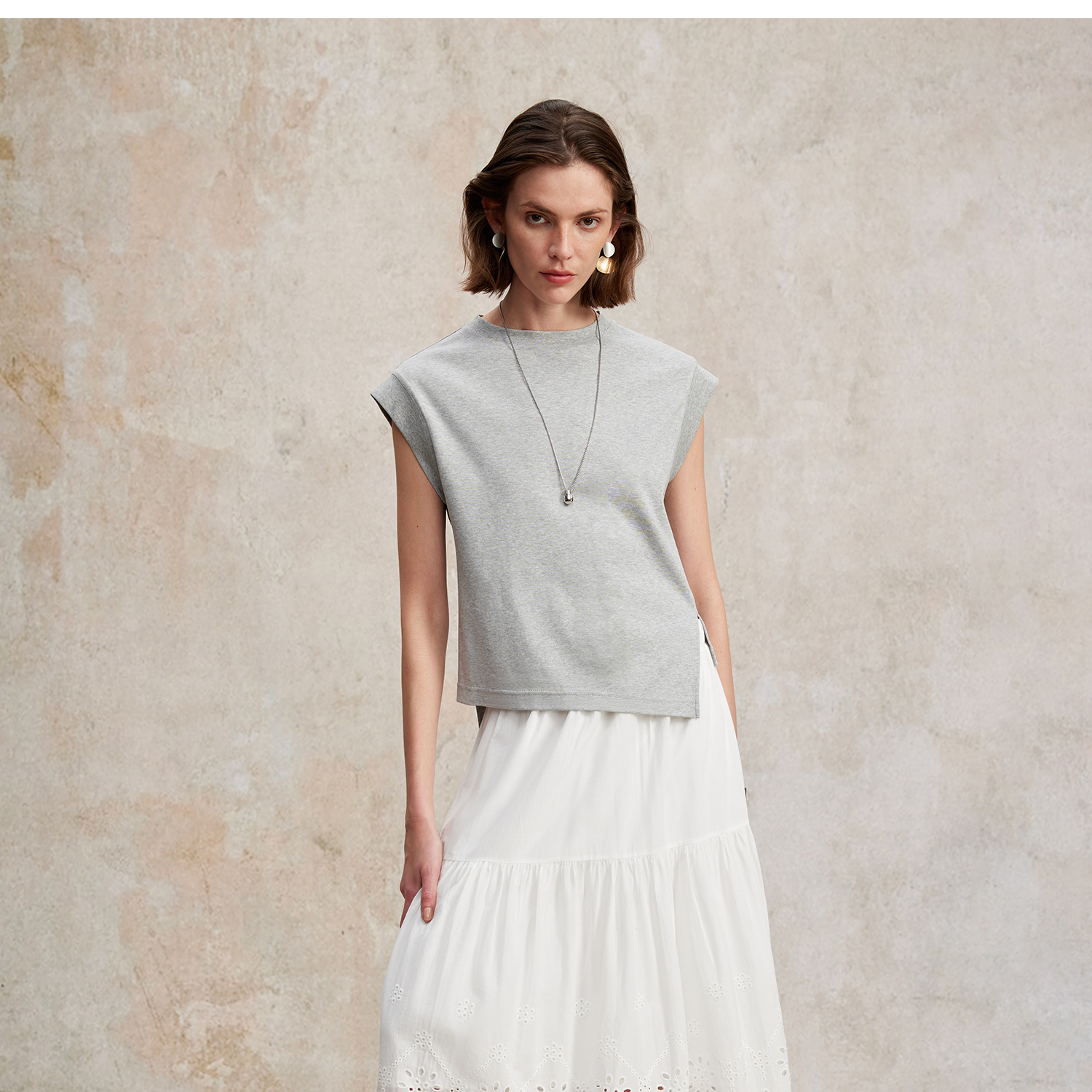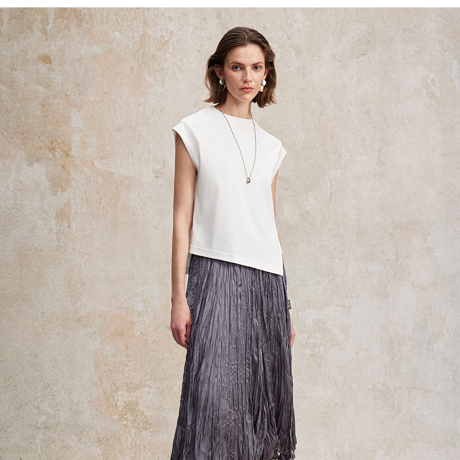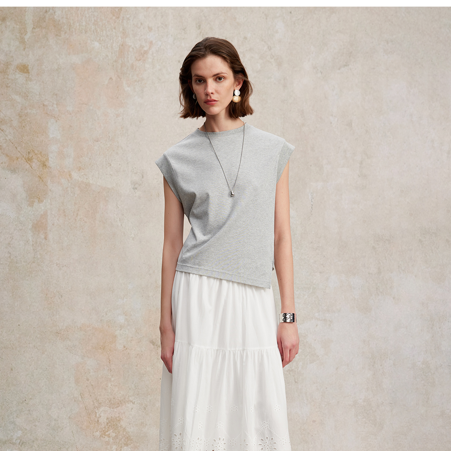 澳棉简约不规则开衩设计感T恤2025夏新T2502005