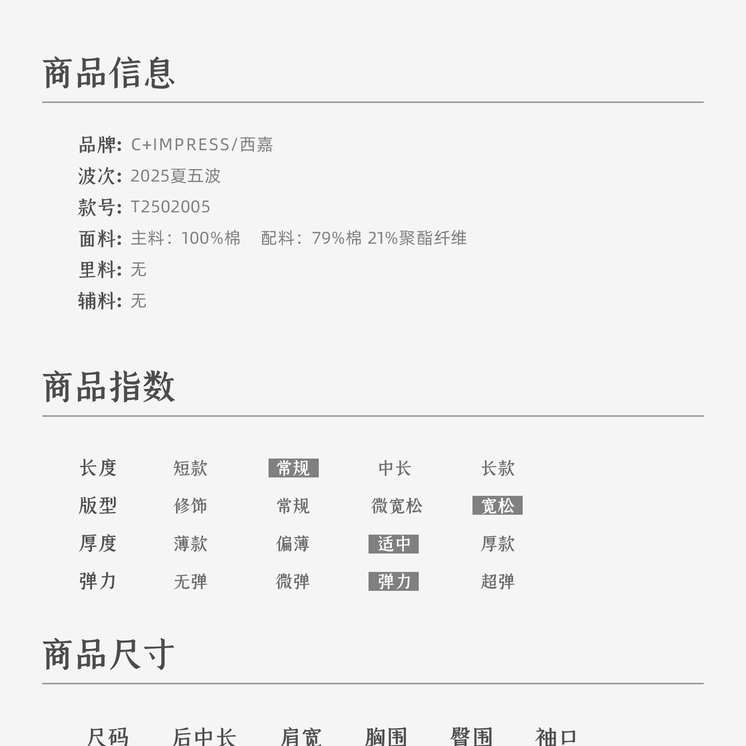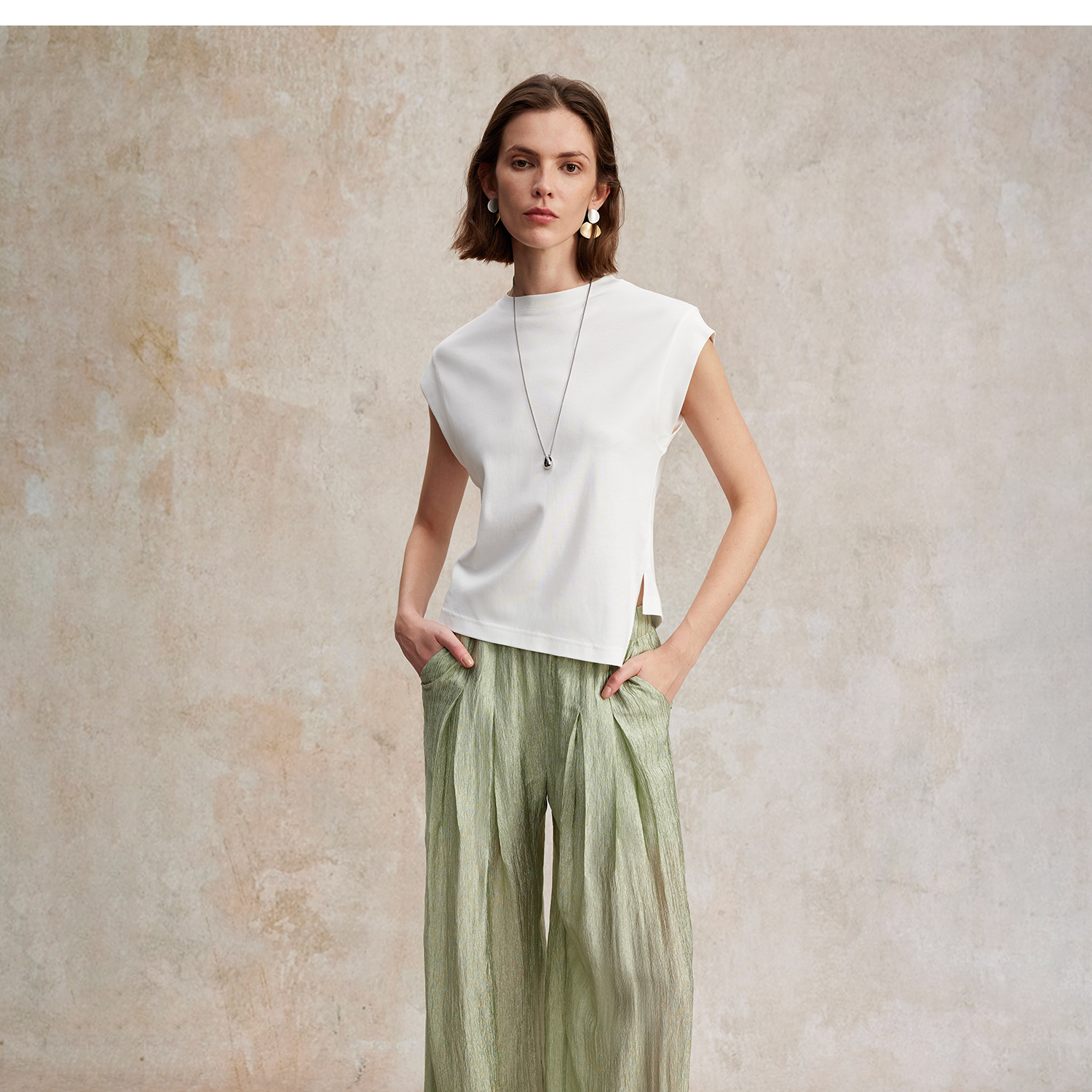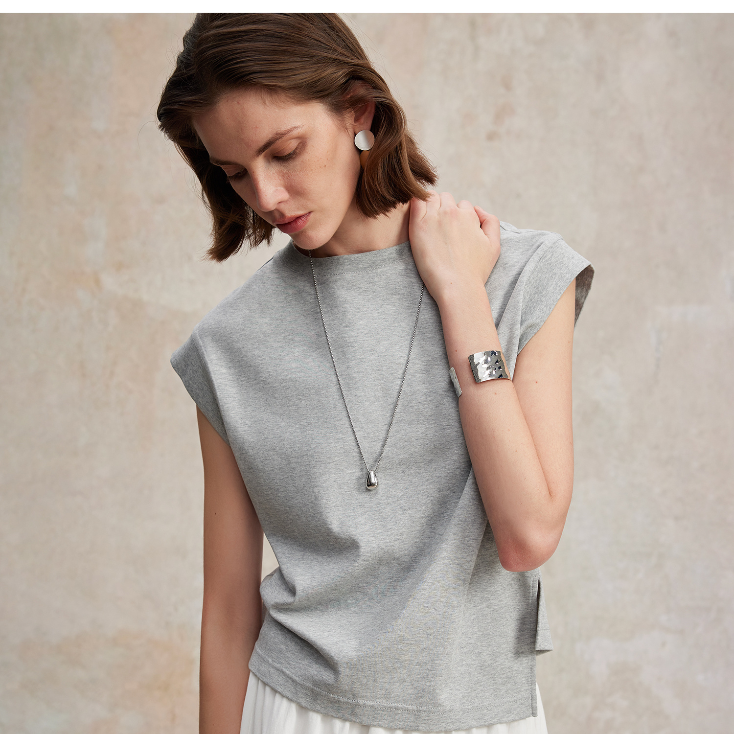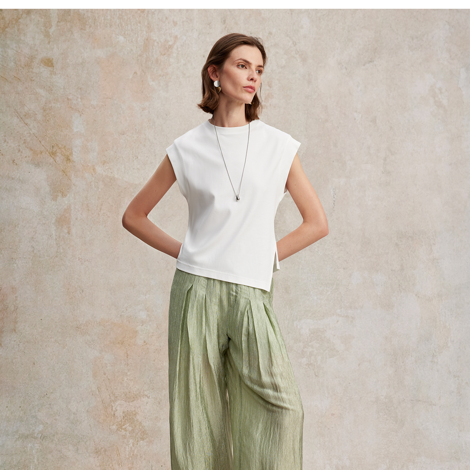 澳棉简约不规则开衩设计感T恤2025夏新T2502005