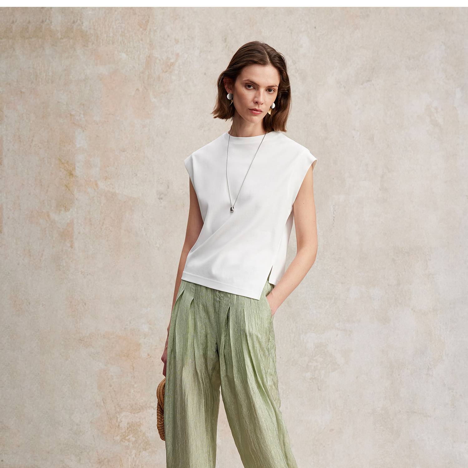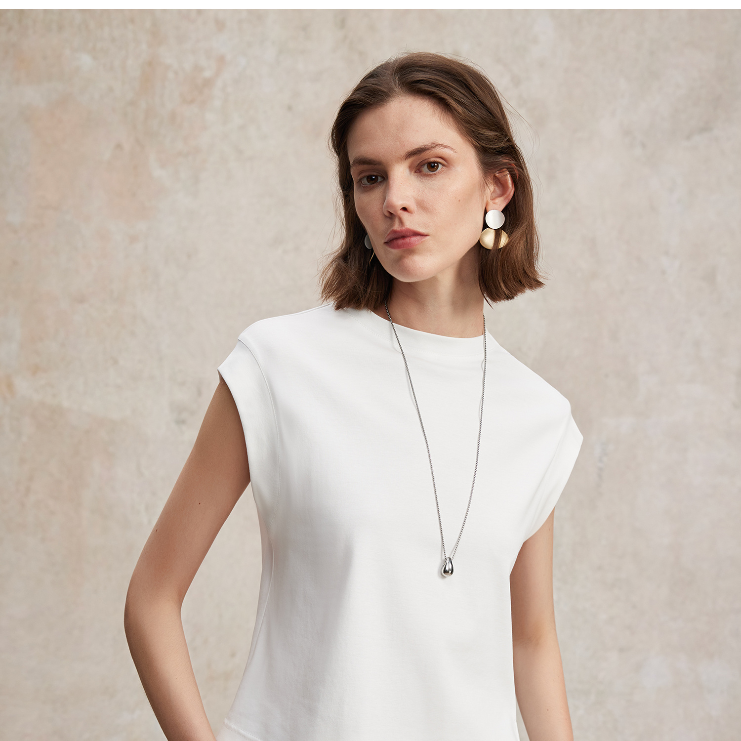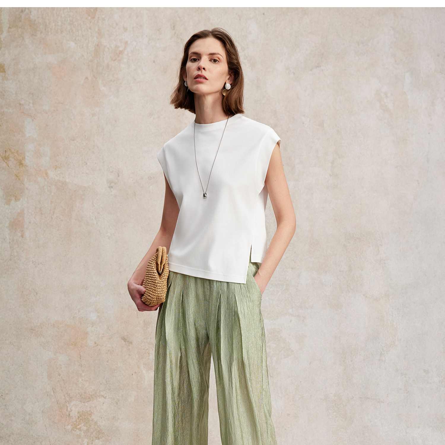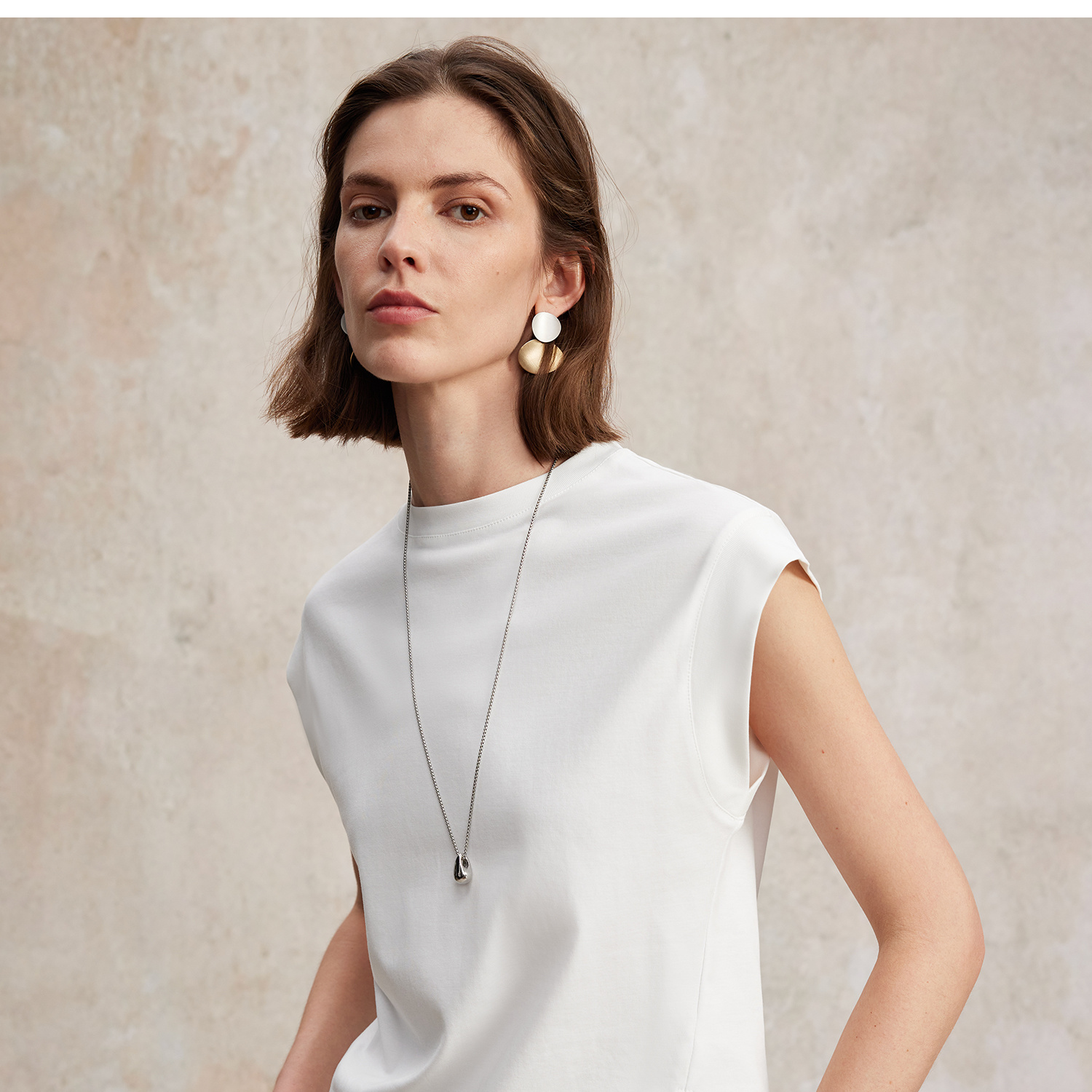 澳棉简约不规则开衩设计感T恤2025夏新T2502005