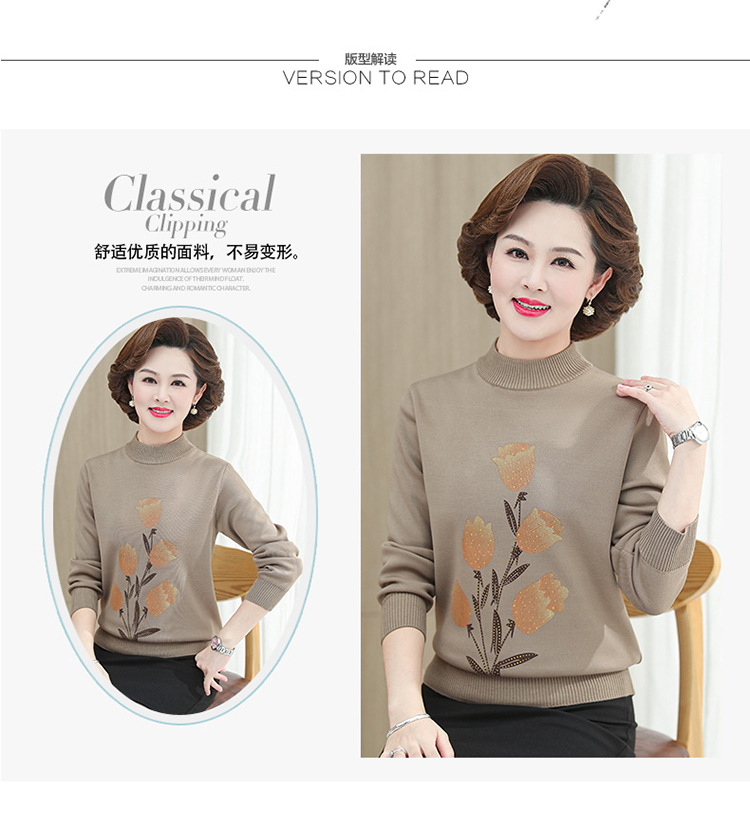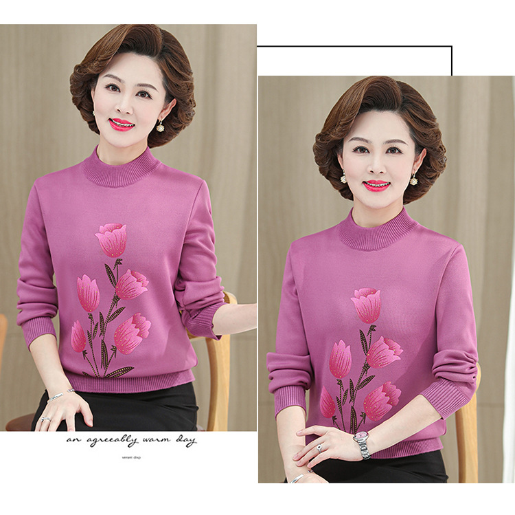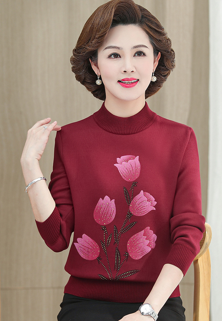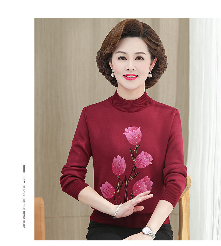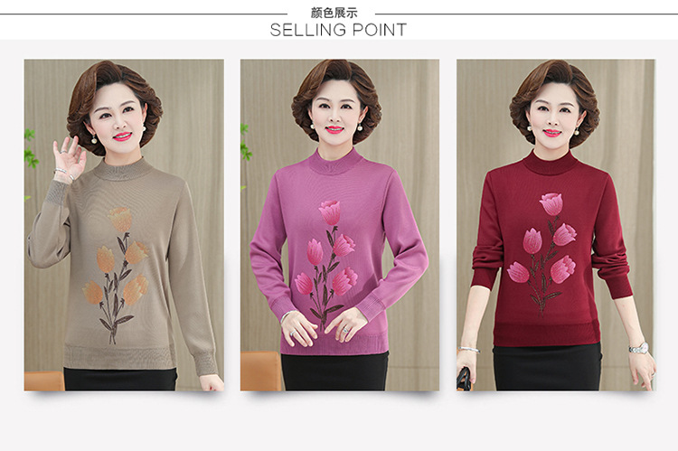 BC-58825 中老年妈妈装郁金香毛衣针织衫加绒冬季新款女母亲婆婆衫