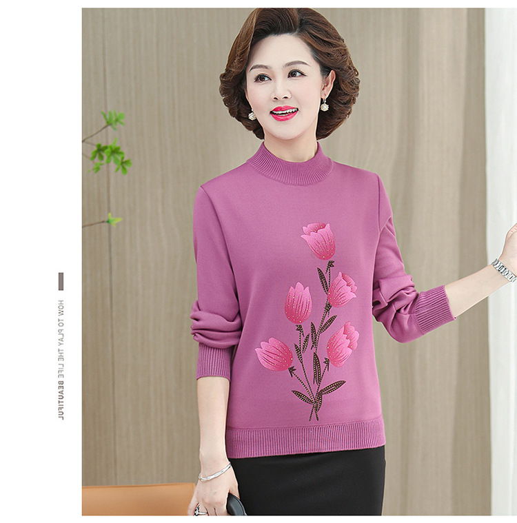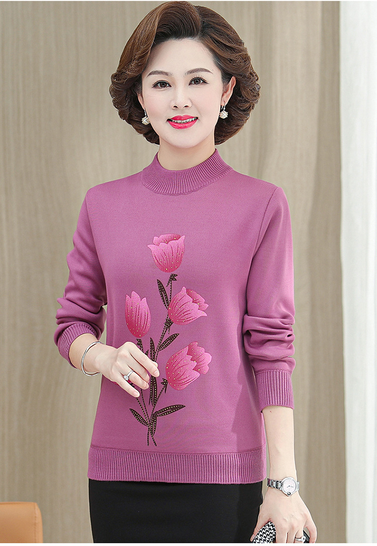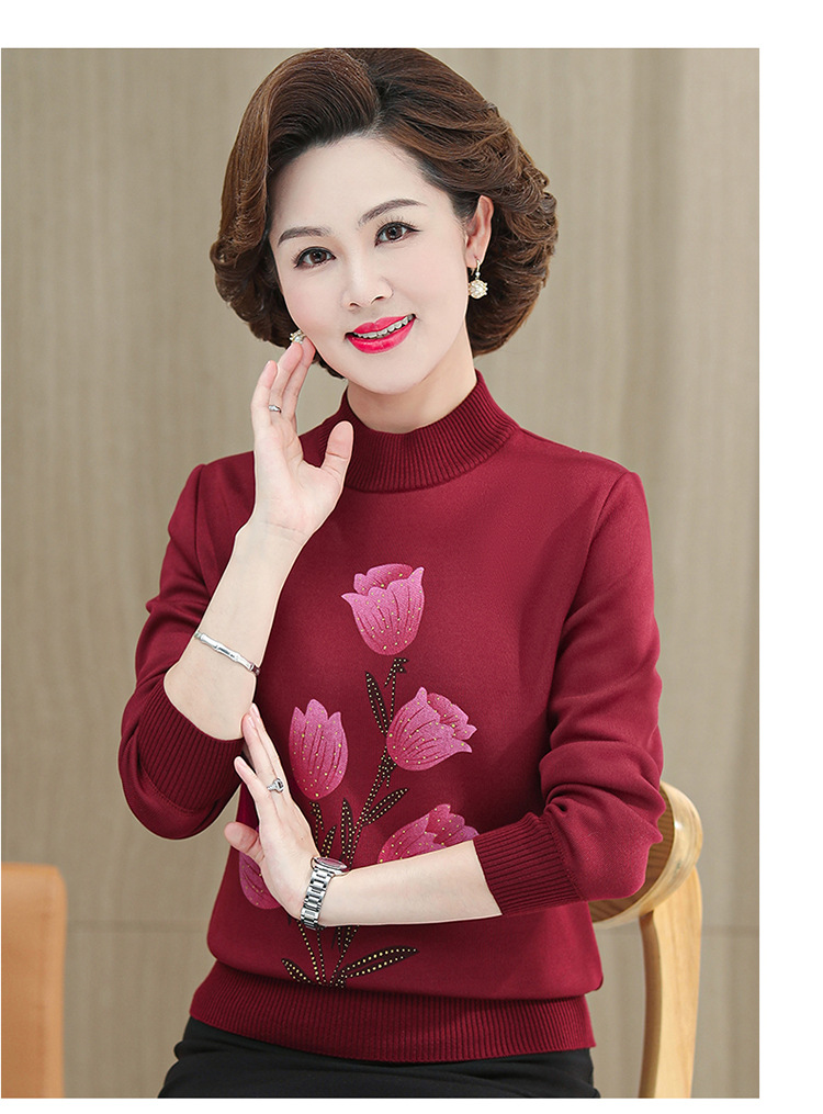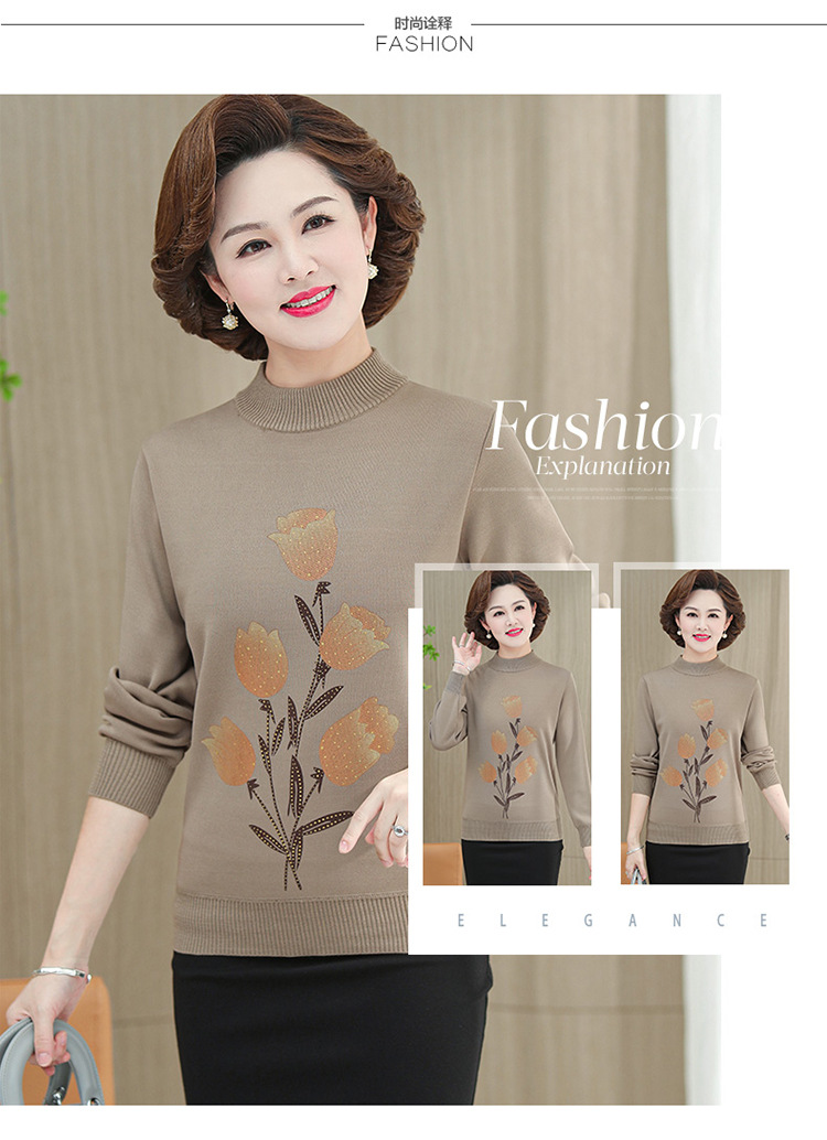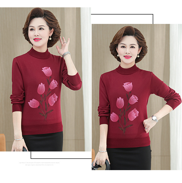 BC-58825 中老年妈妈装郁金香毛衣针织衫加绒冬季新款女母亲婆婆衫