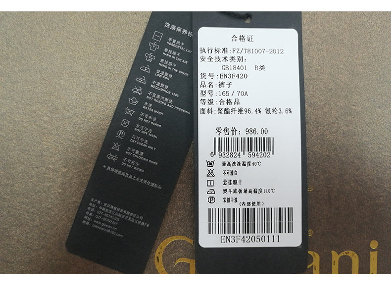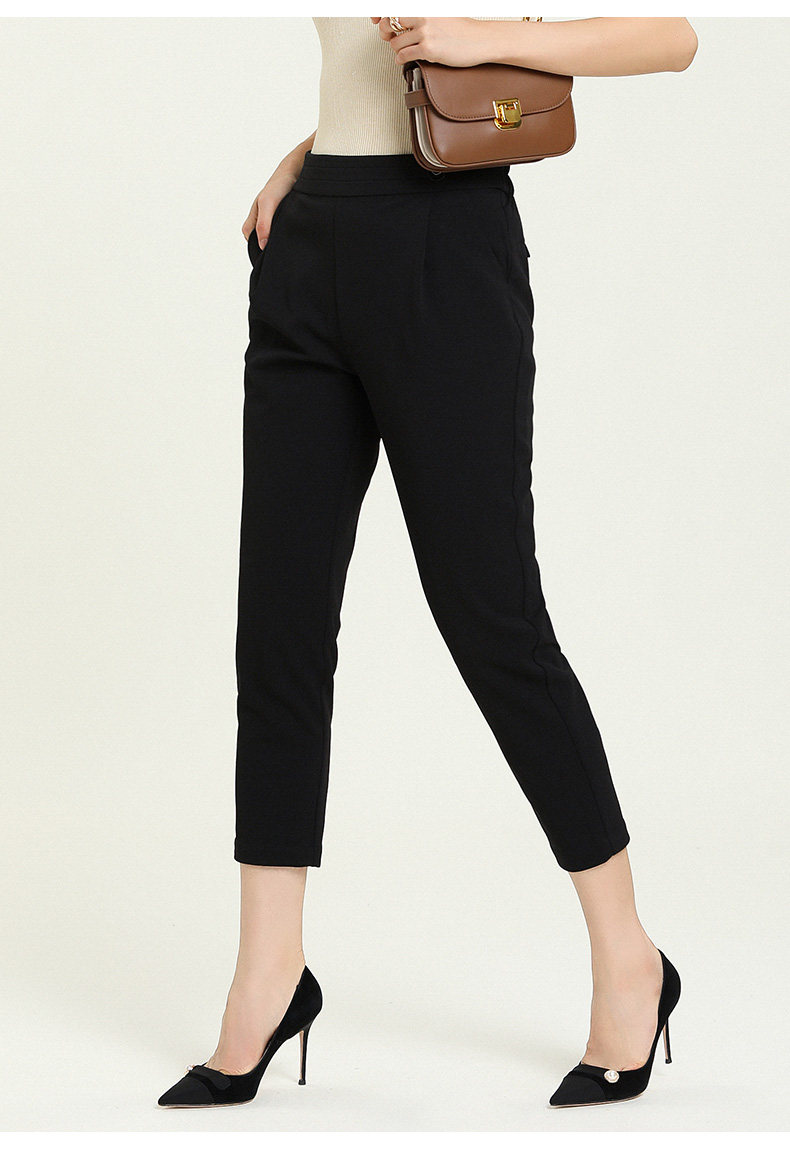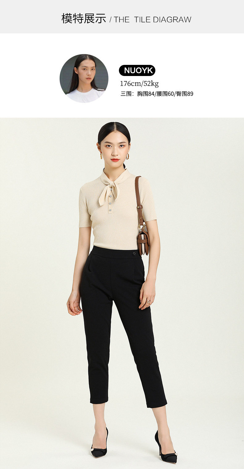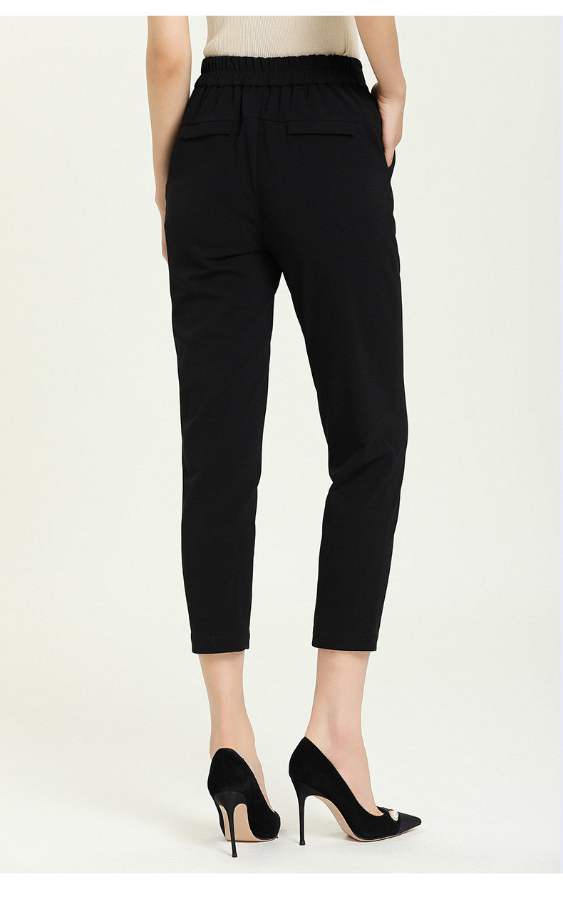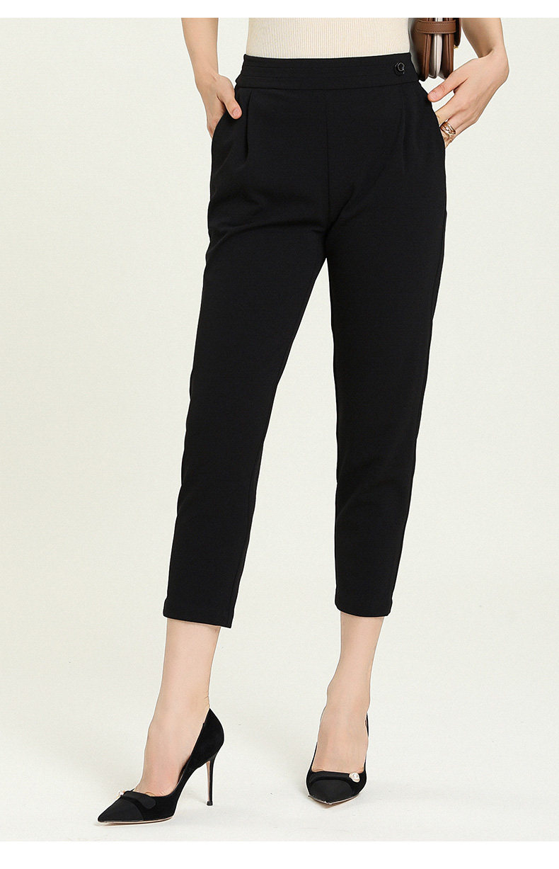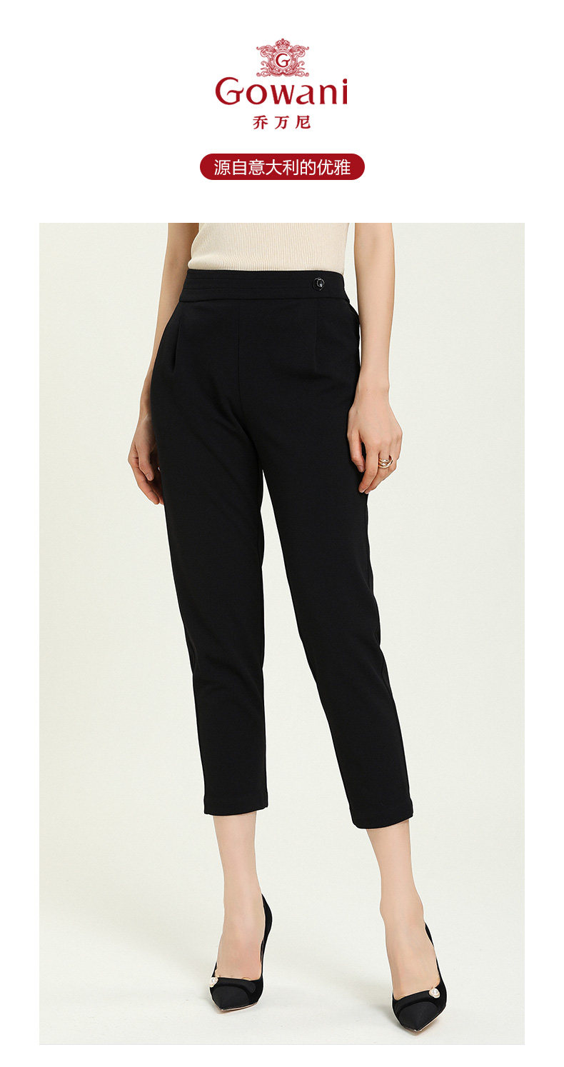 乔万尼新品秋季休闲裤黑色显瘦直筒九分裤EN3F420
