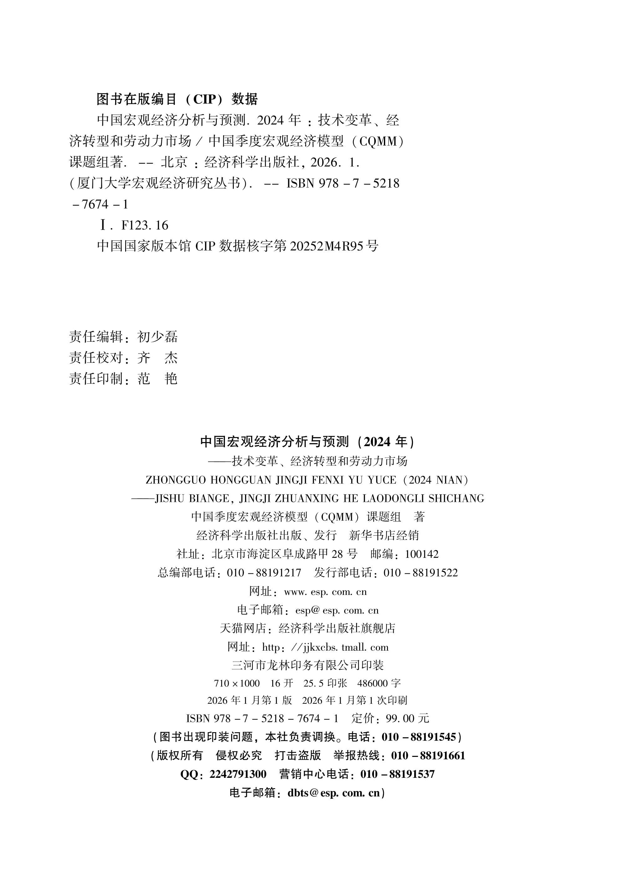 中国宏观经济分析与预测(2024年)