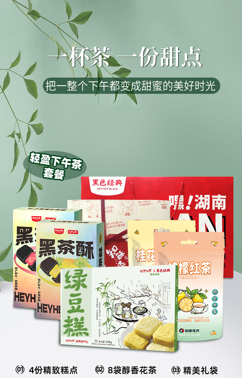 【周一套餐日会员折上折】黑茶酥糕点花茶套餐 轻盈下午茶 配精美礼袋