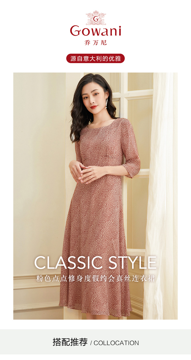 乔万尼印花真丝连衣裙高档中长款重工乔其纱轻款EF2E309