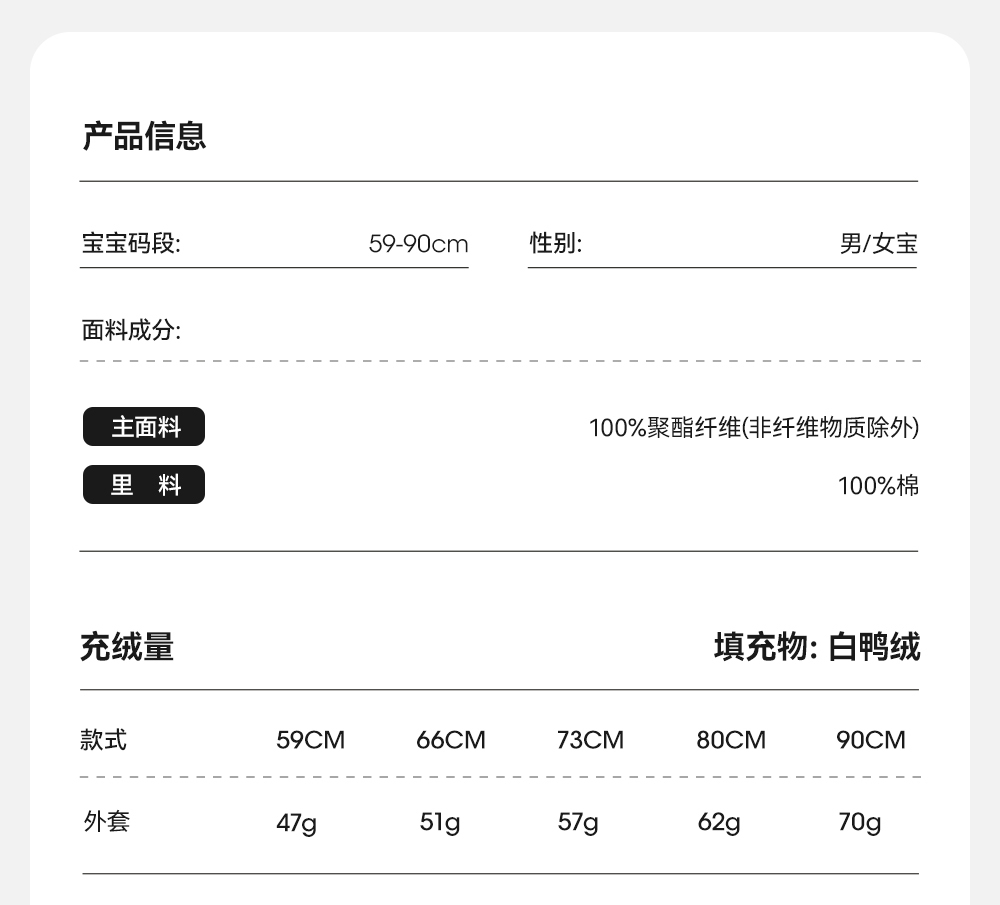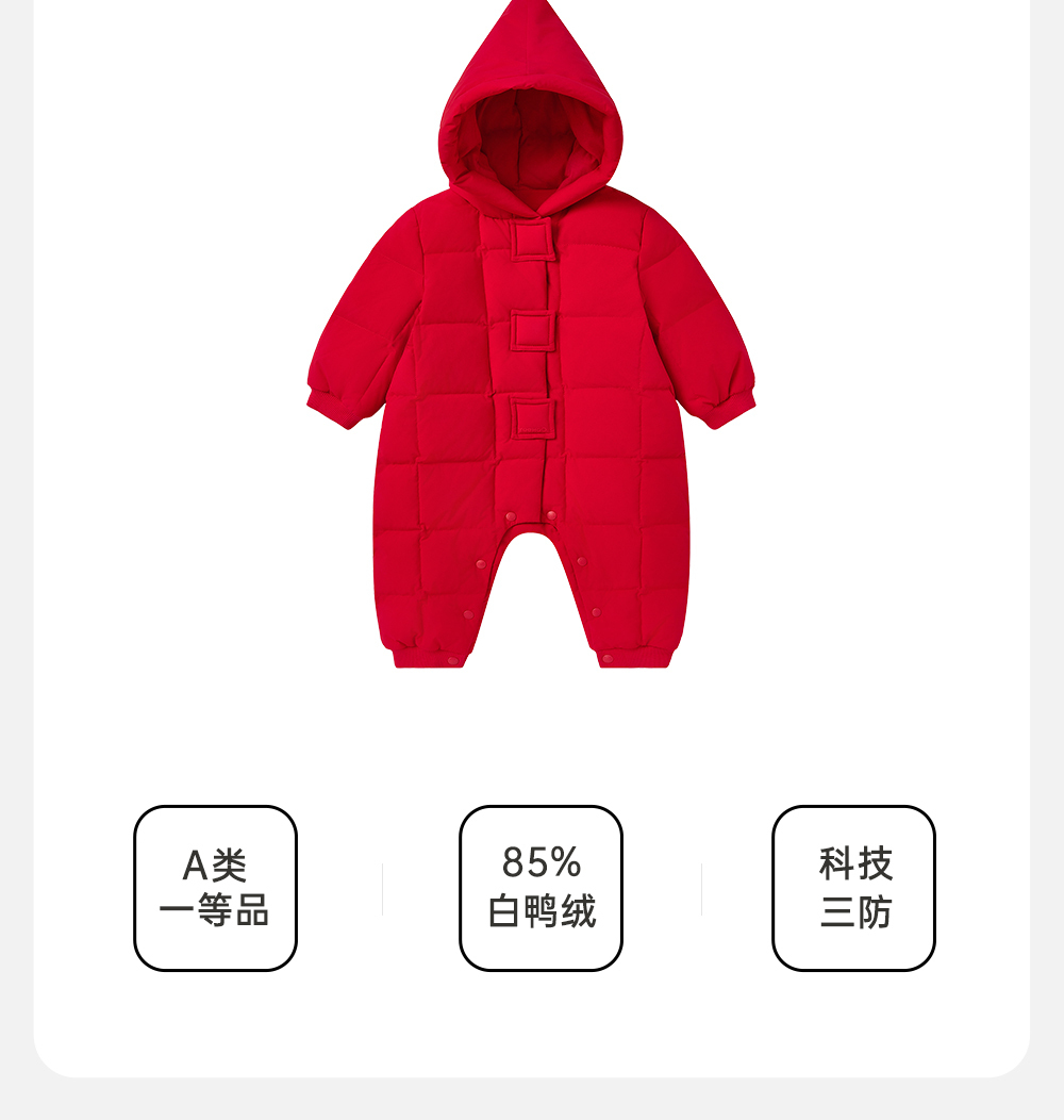 【商场同款】英氏儿童三防羽绒服连体衣冬季保暖连帽宝宝羽绒服