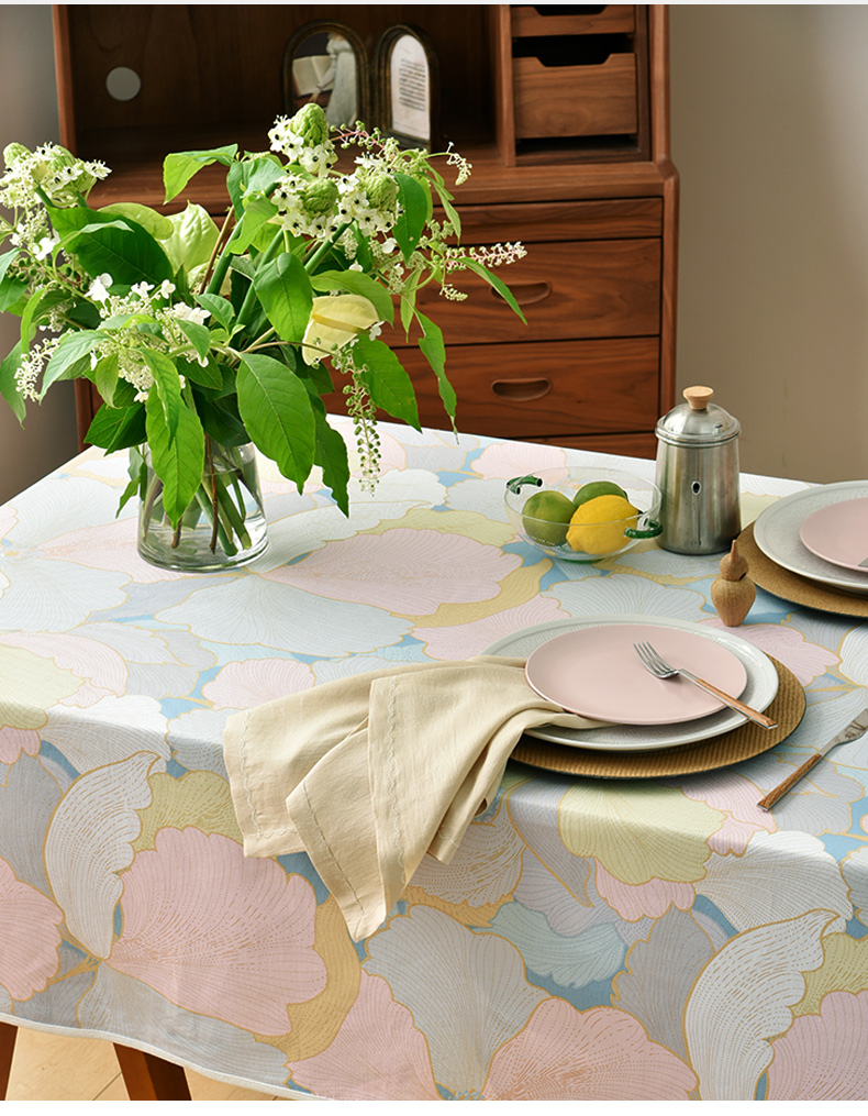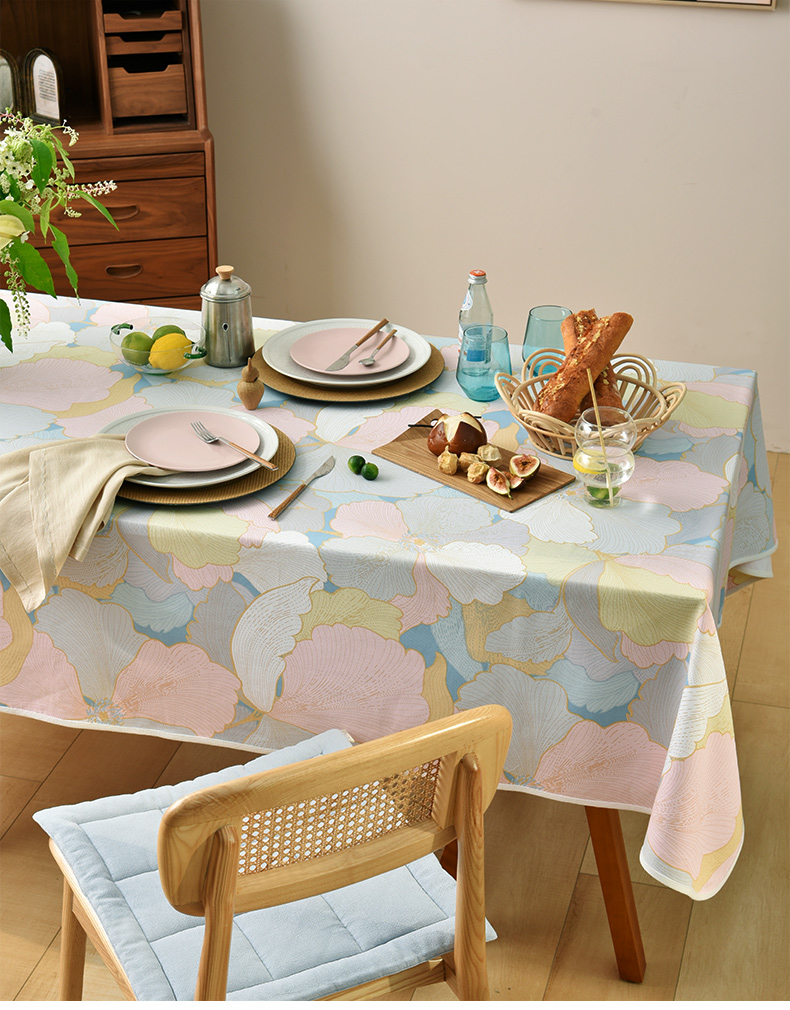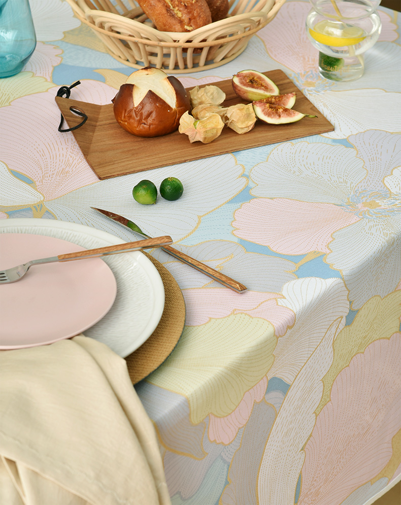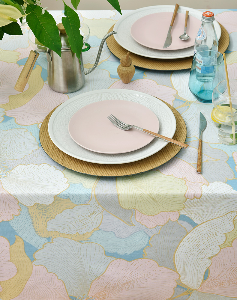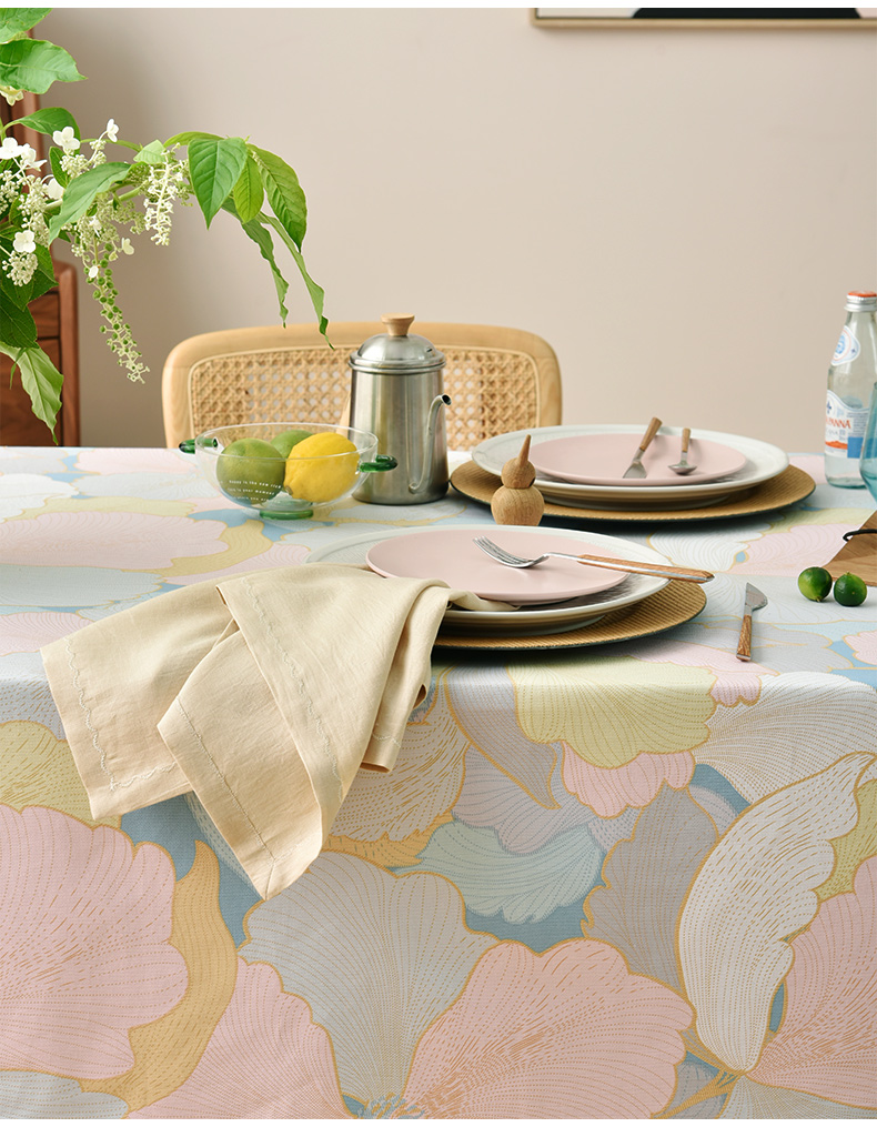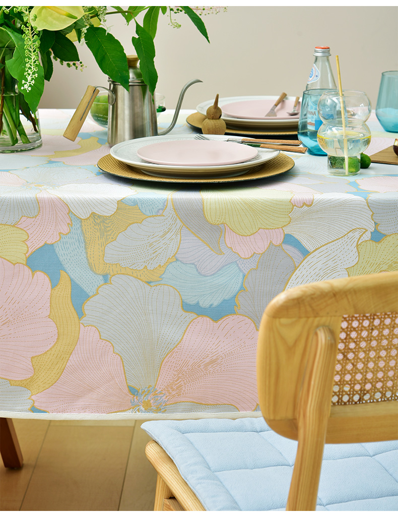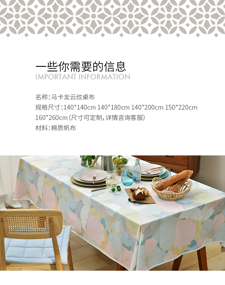 马卡龙云纹桌布清新色系棉质帆布