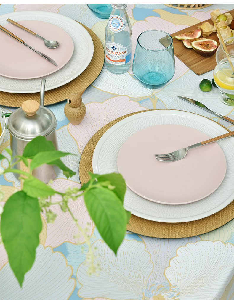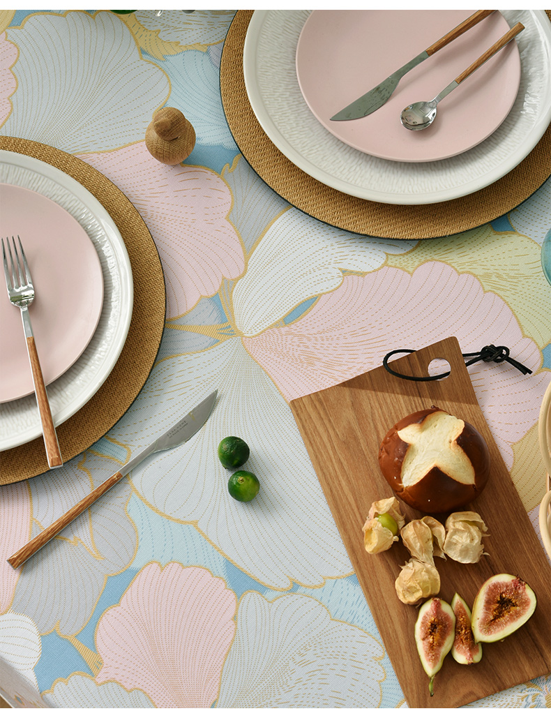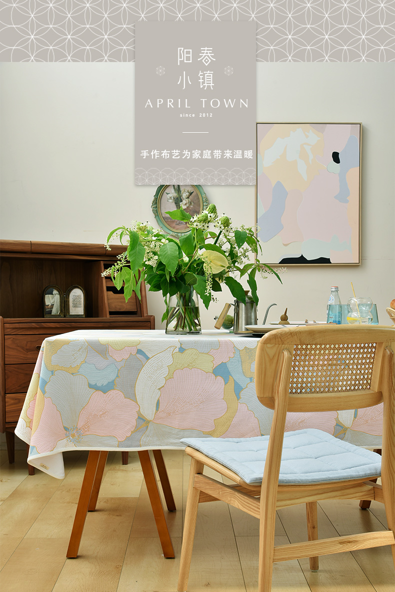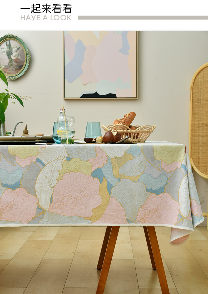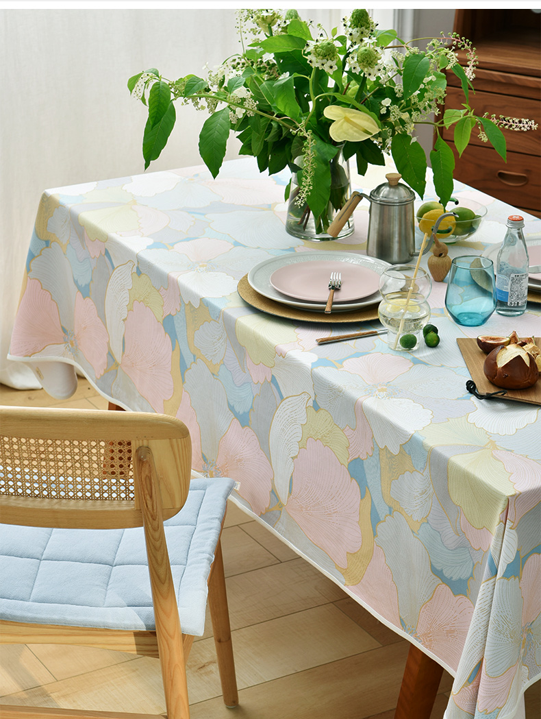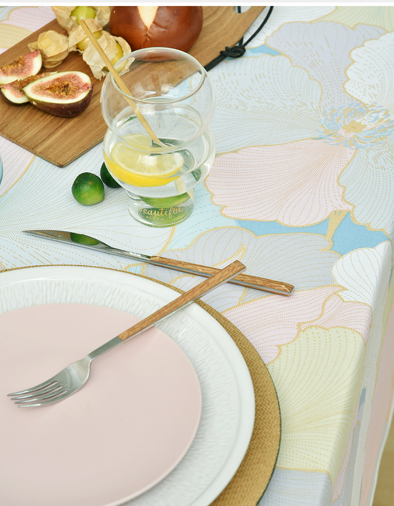 马卡龙云纹桌布清新色系棉质帆布