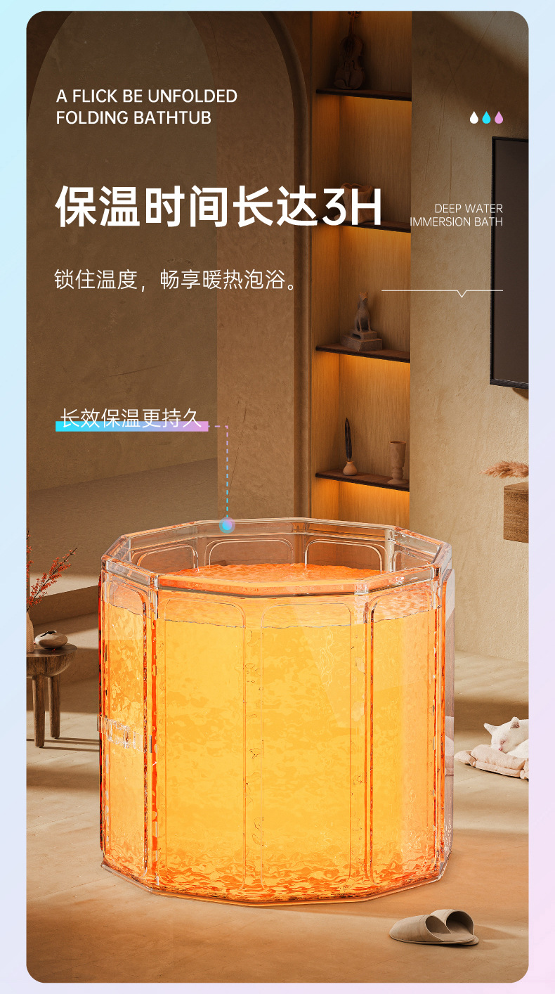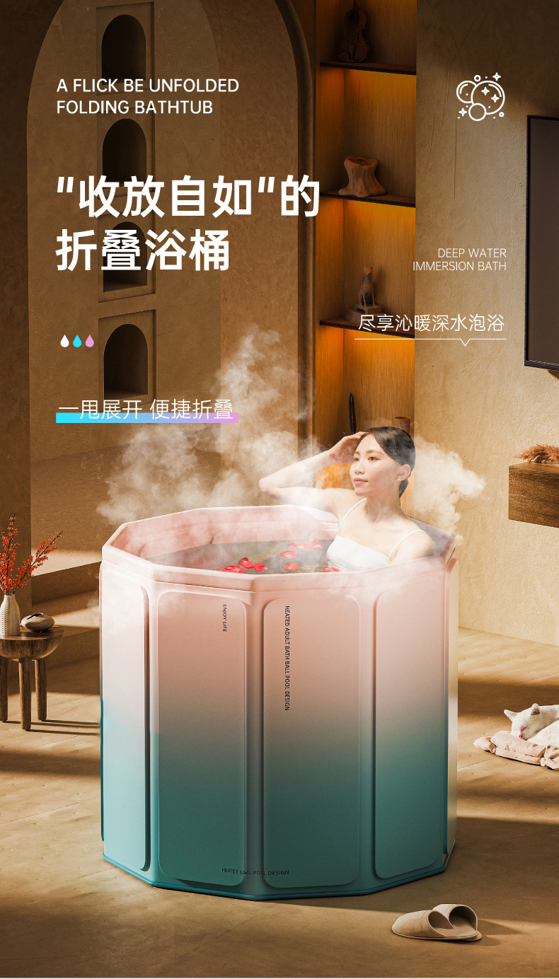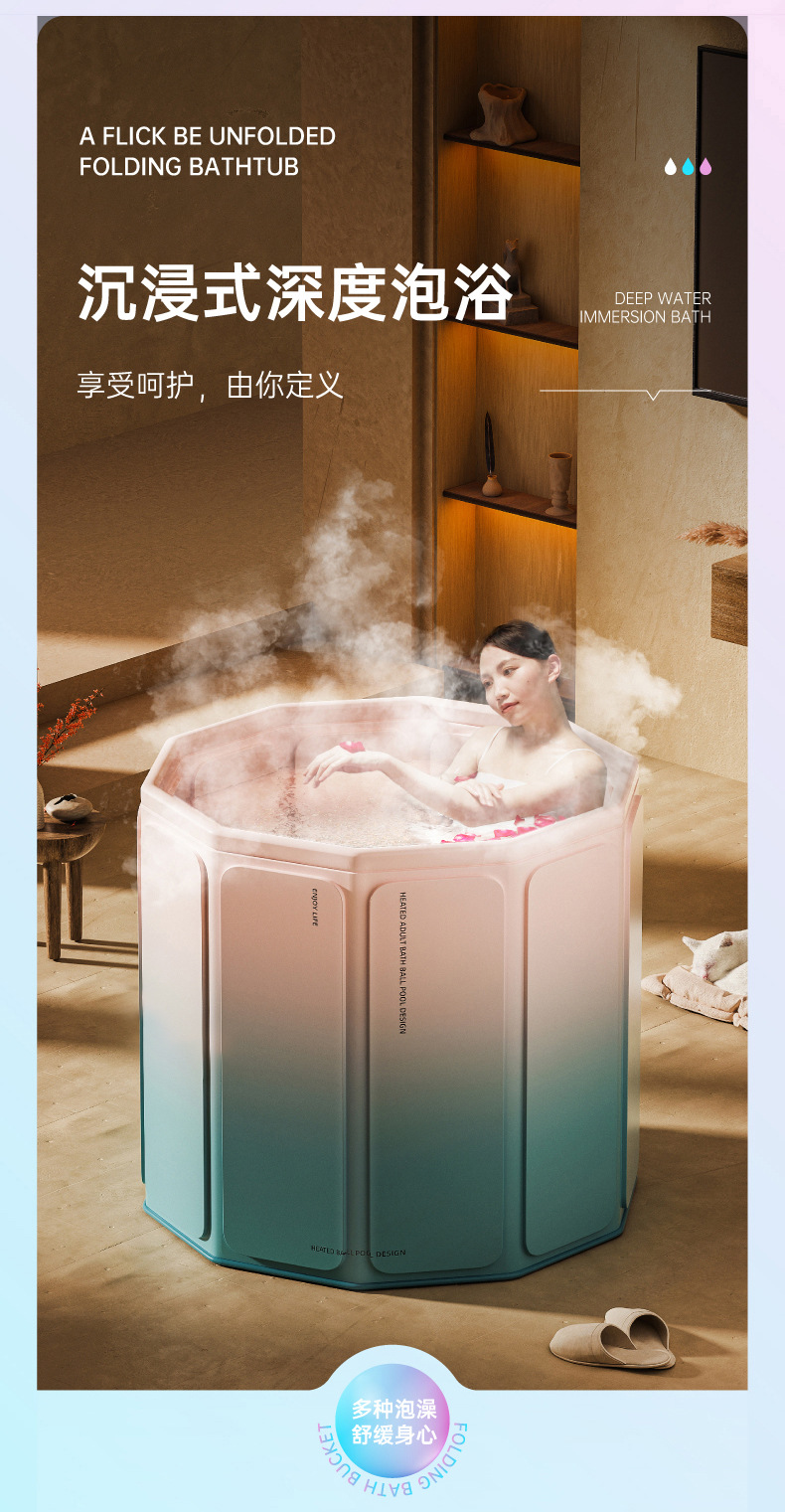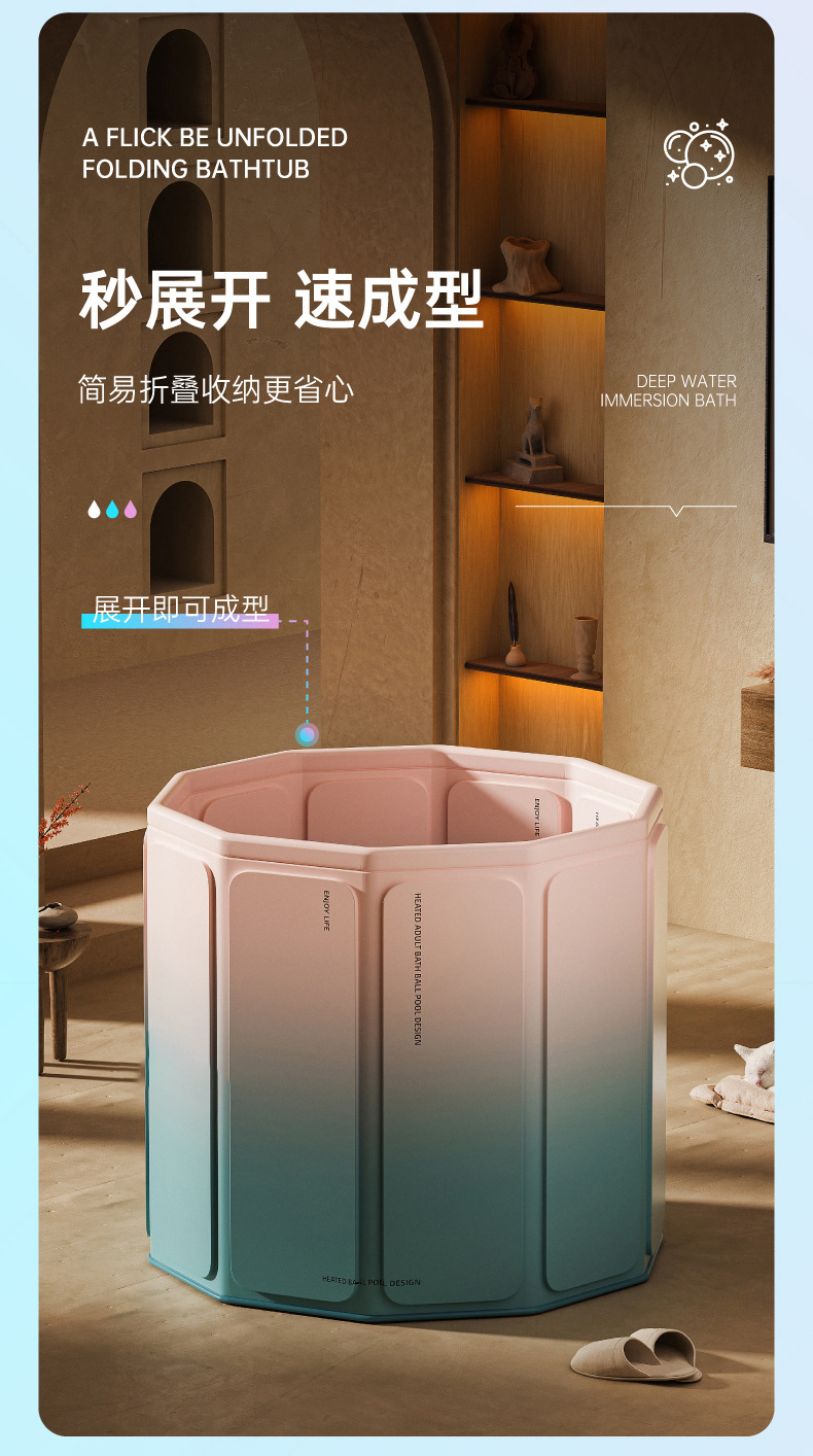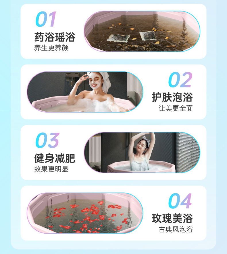 【折叠浴桶】泡澡桶大人儿童沐浴免安装折叠便携式家用PVC婴儿游泳加高洗澡桶,简易折叠收纳更省心。ry