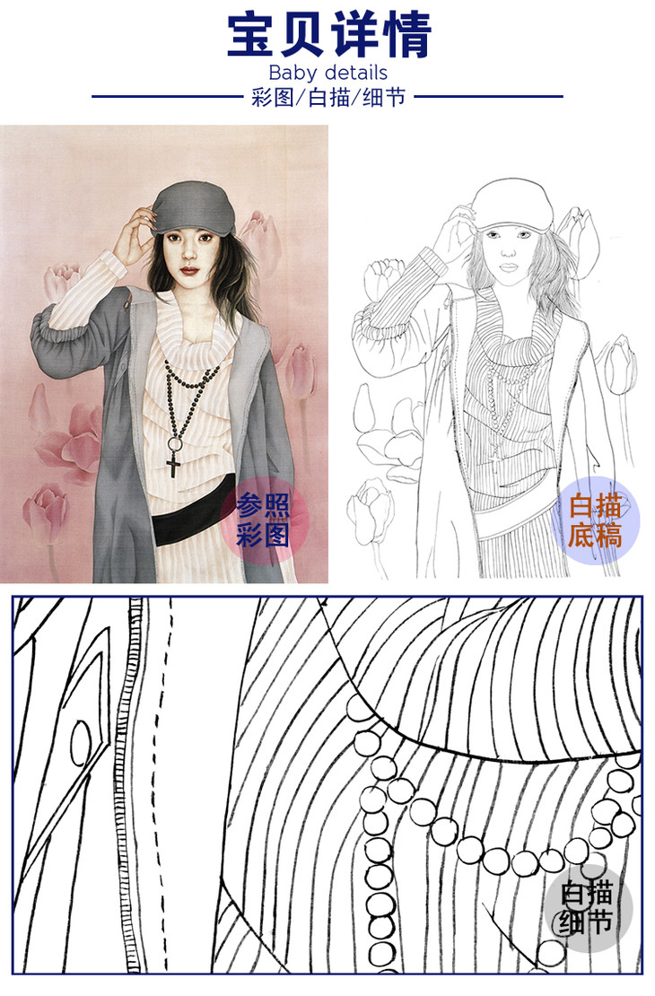 崔景哲竖幅工笔现代仕女人物白描底稿-B117