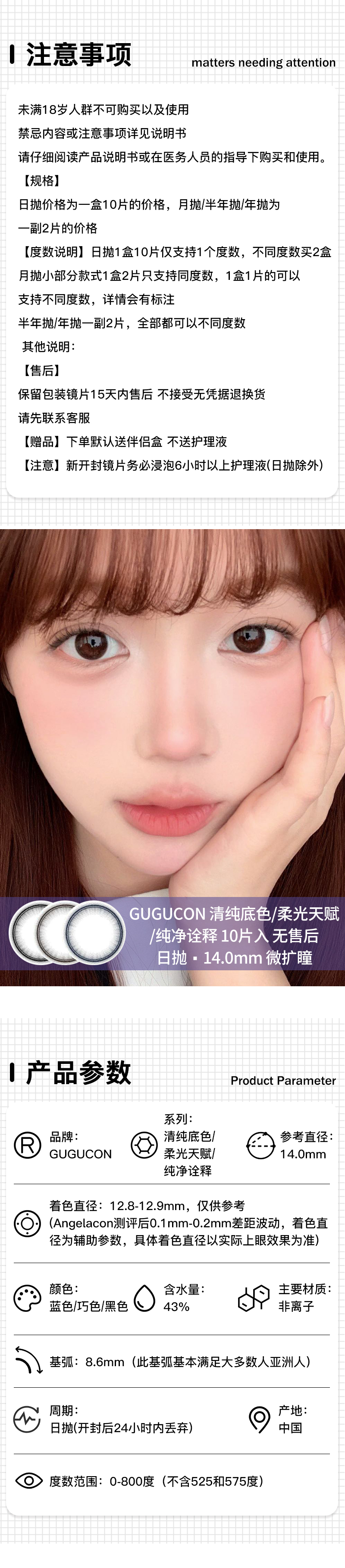 GUGUCON / 清纯底色/柔光天赋/纯净诠释 / 美瞳日抛 / 10片入 / 无售后 / 14.0mm / 微扩瞳