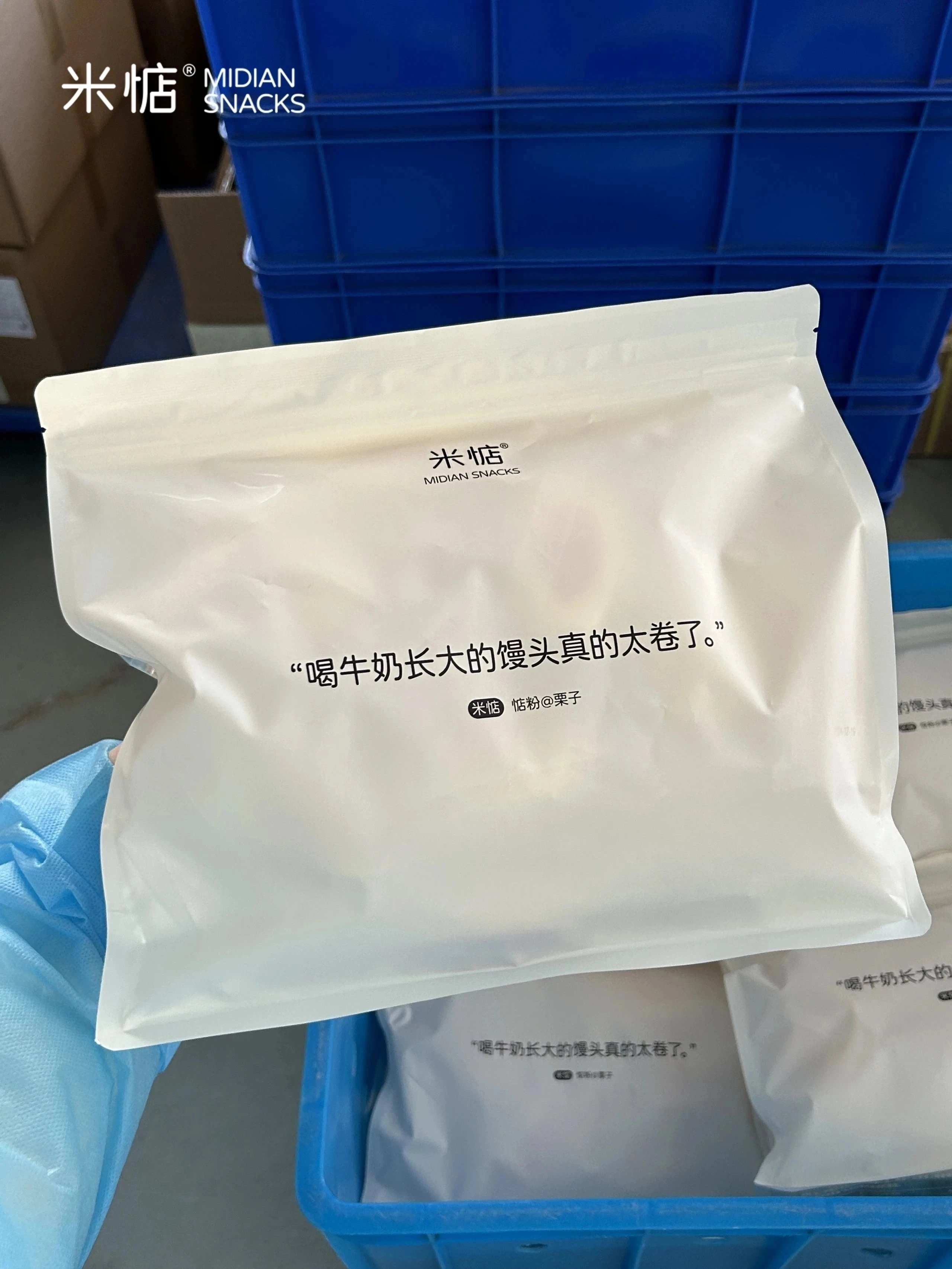 刚出炉的小馒头经过一段时间的静置冷却 确保其达到Z佳的口感与质地后⏭️ 才会进入下一道工序——独立包装阶段 接着会被细心装入简约实用的包装袋中🛍️ 到这里,这些小馒头就可以准备出库啦