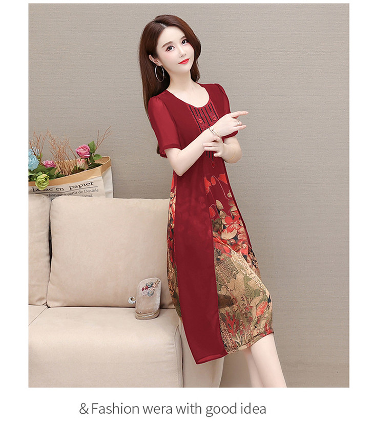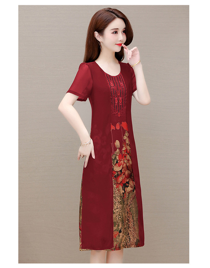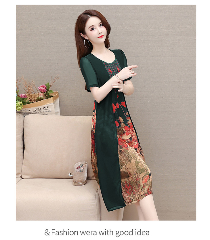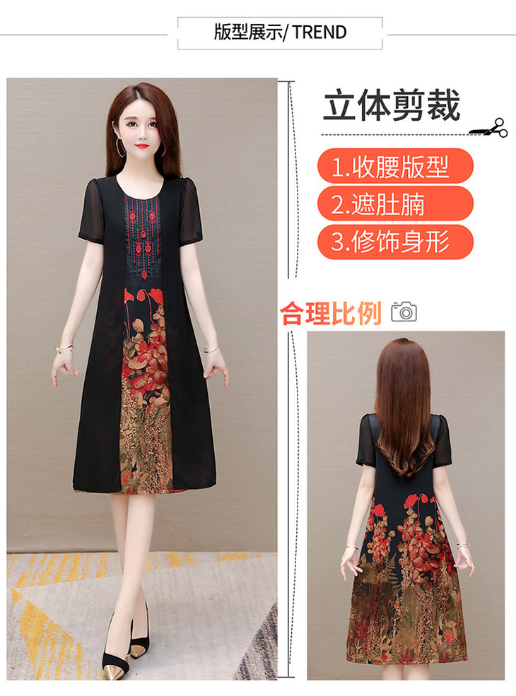 YWE-LTT2021A52夏装新款气质修身短袖印花连衣裙