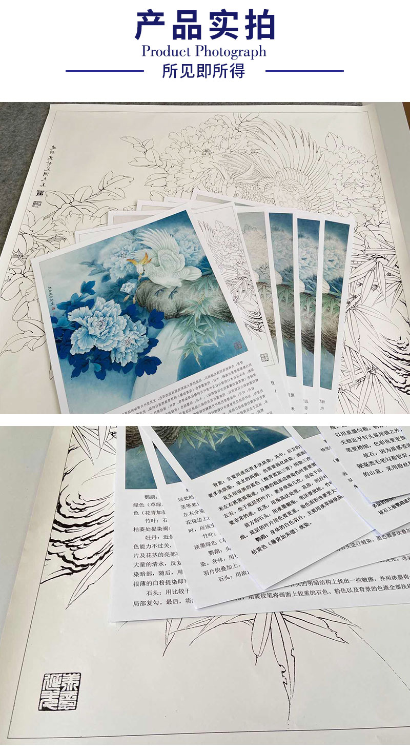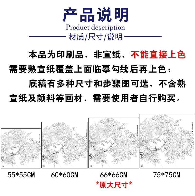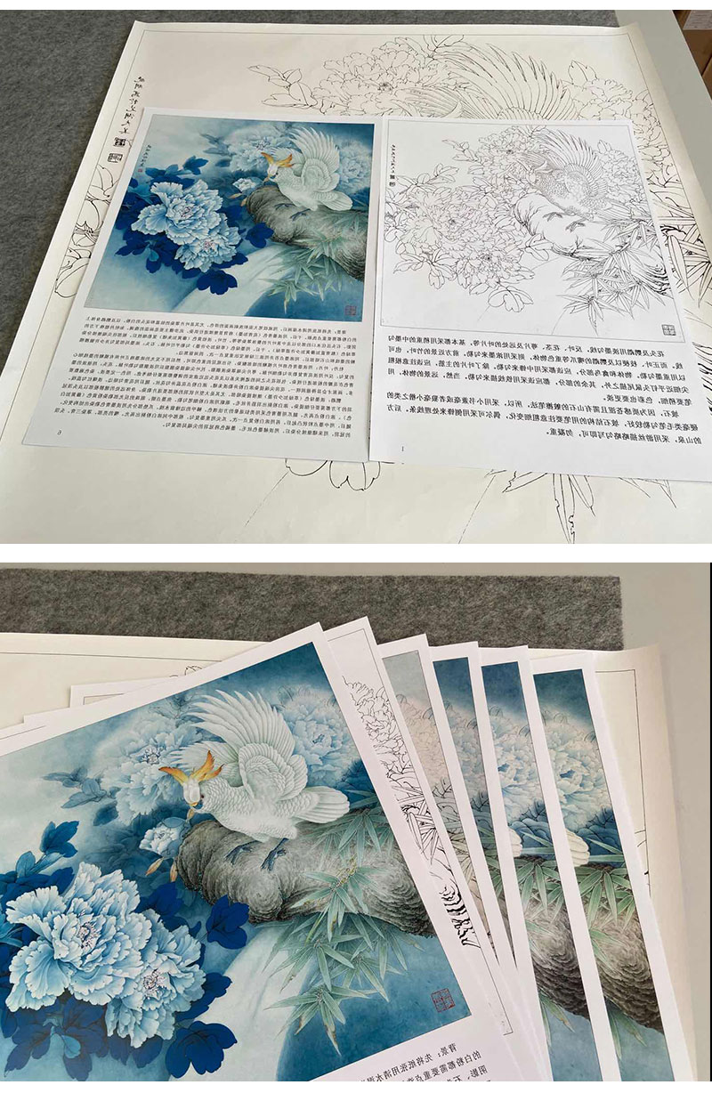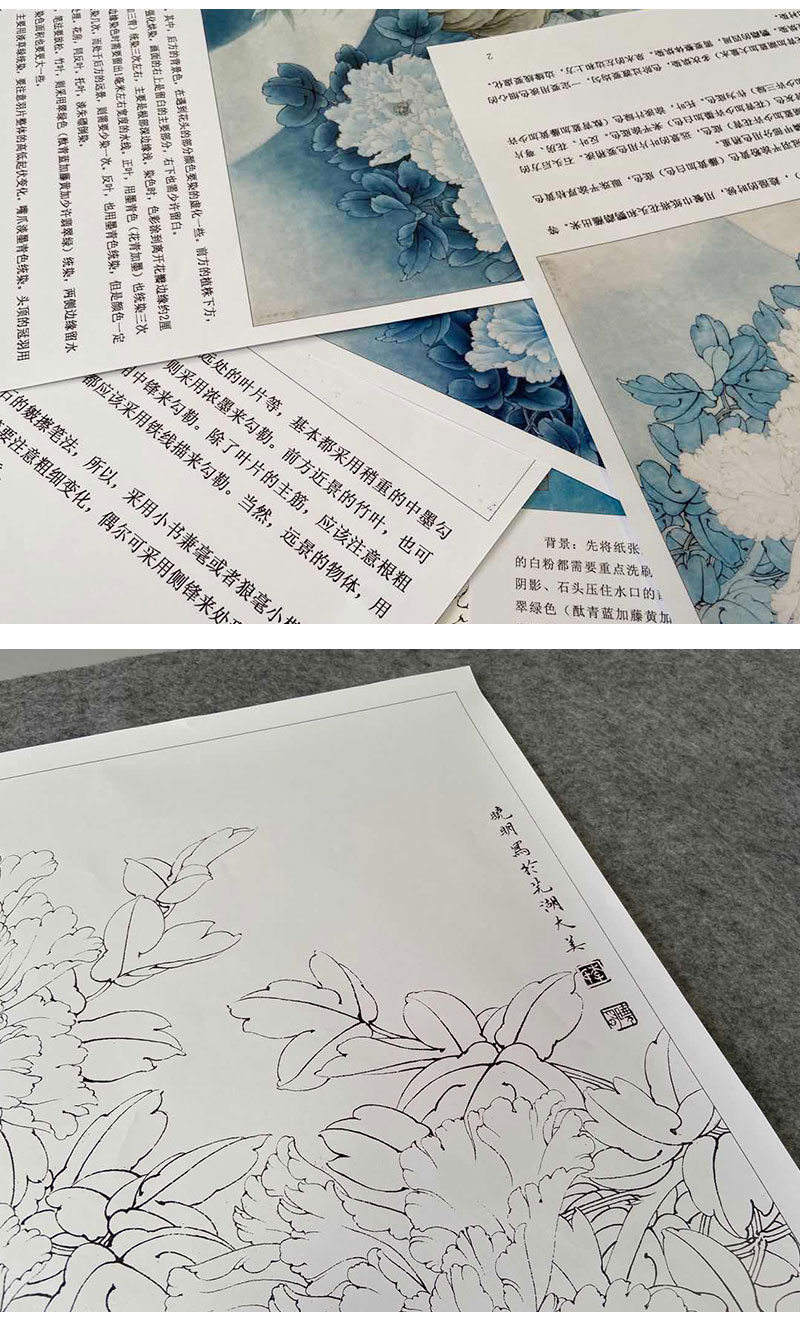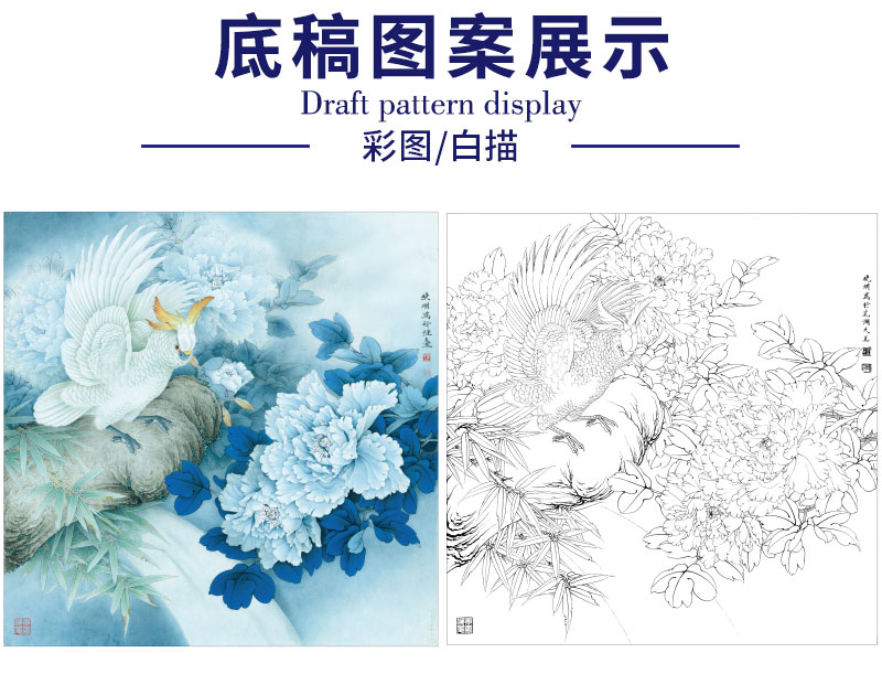 【有步骤、大彩图】李晓明工笔画白描底稿斗方小品《重绘独舞花间》牡丹鹦鹉初学者临摹花鸟线稿KD22