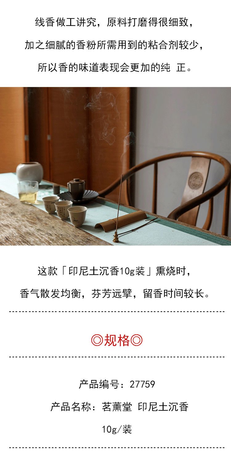 茶香记 印尼土沉香10g装 茗薰堂 线香 沉香味明显 馥郁厚重 做工精致